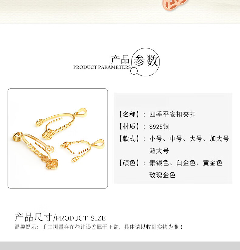 Fat Donglai's same style 18k rose gold-plated buckle silver safety buckle clip DIY accessories electroplated 18K yellow l gold rose small size - gold color (within radius 10mm * thickness 8mm