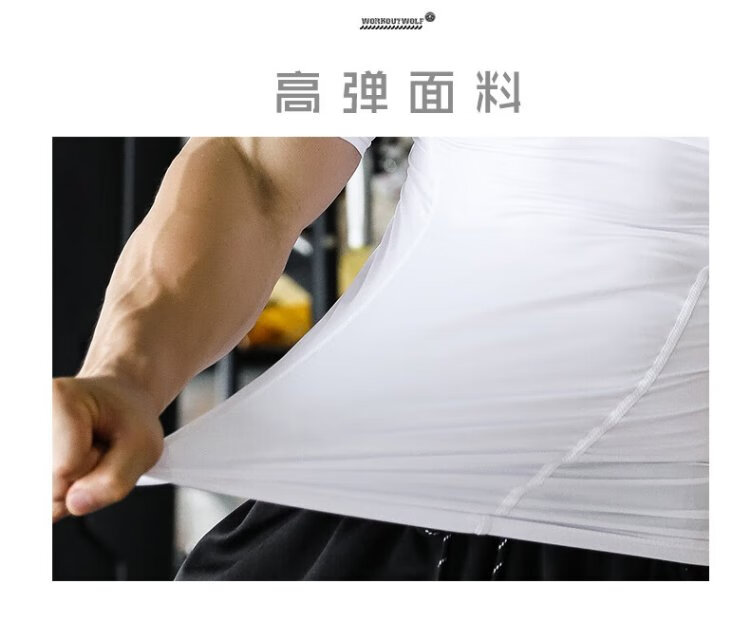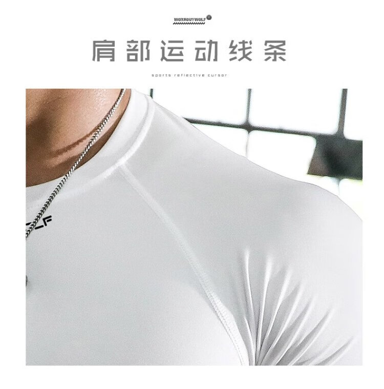 Lutielang short-sleeved tights men's fitness clothes elastic quick-drying muscle training running sports tops coaching clothes white M