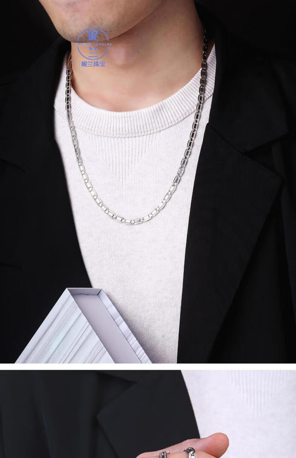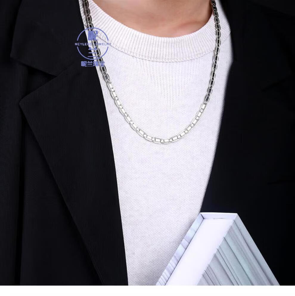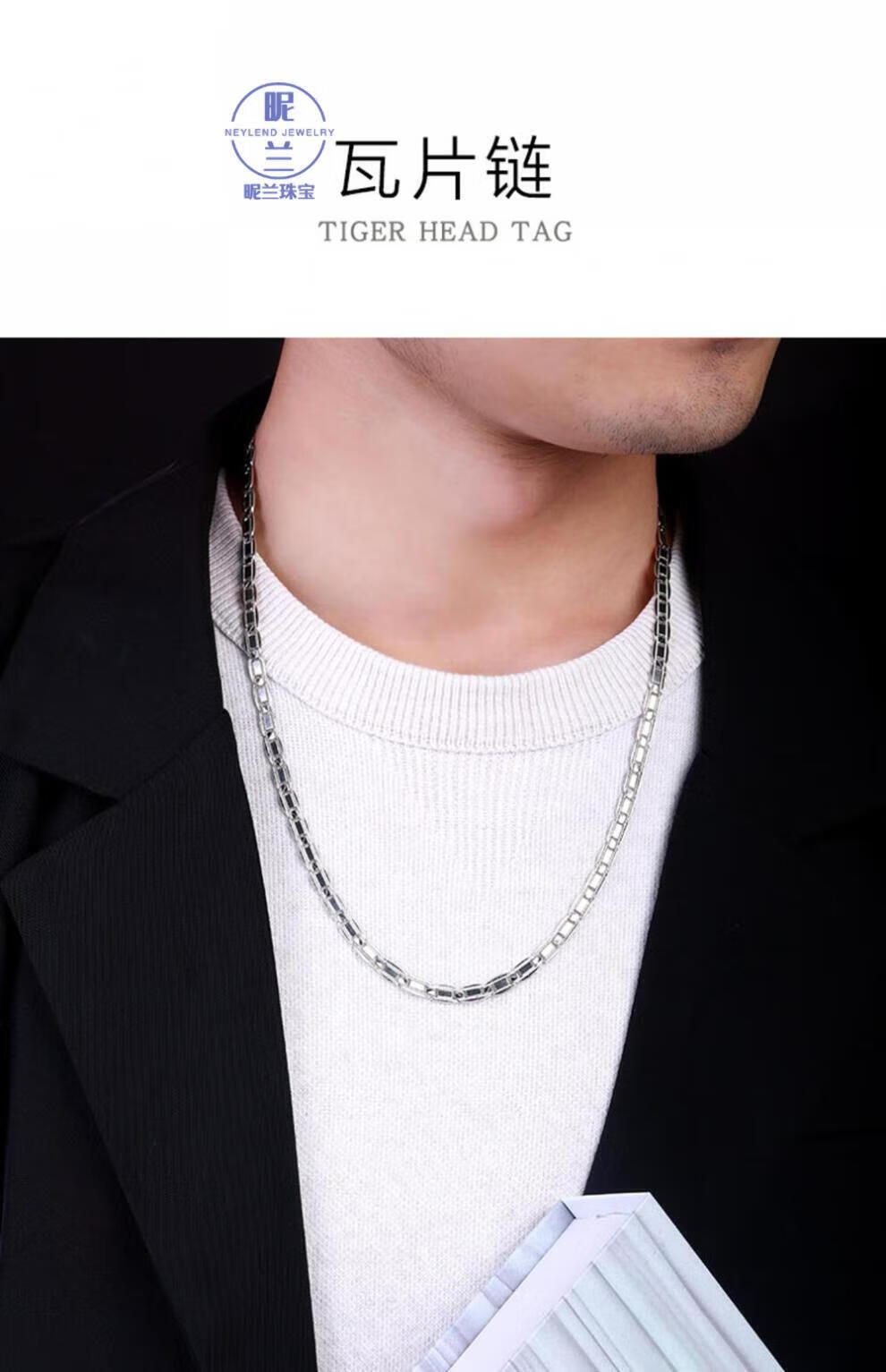 Nilan men's platinum necklace PT950 versatile trendy men's tile chain platinum bag fashion clavicle chain tile chain 5.3mmx60cmx21g S