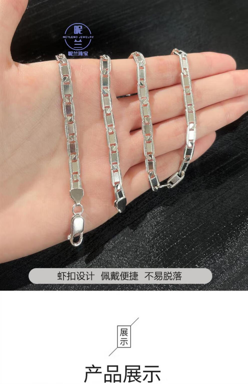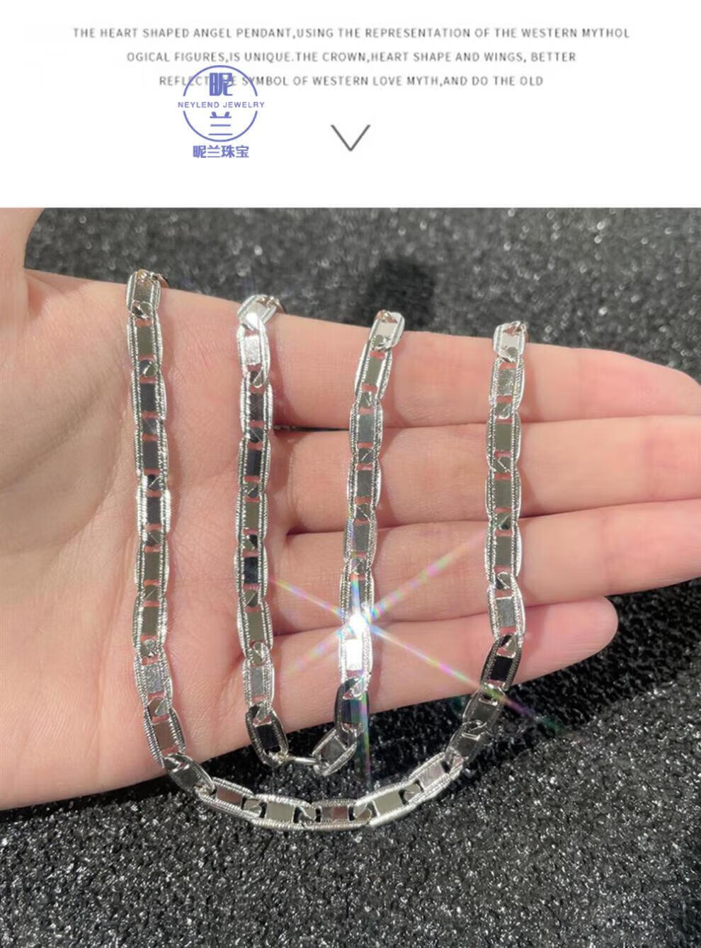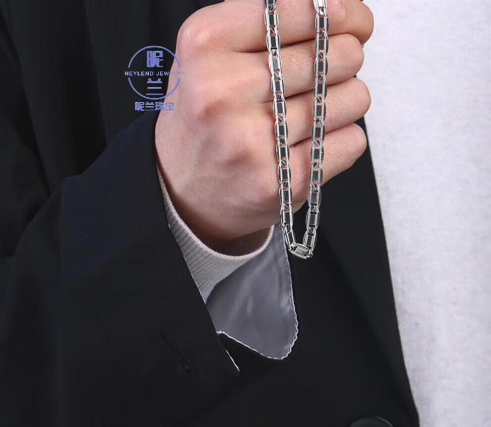 Nilan men's platinum necklace PT950 versatile trendy men's tile chain platinum bag fashion clavicle chain tile chain 5.3mmx60cmx21g S