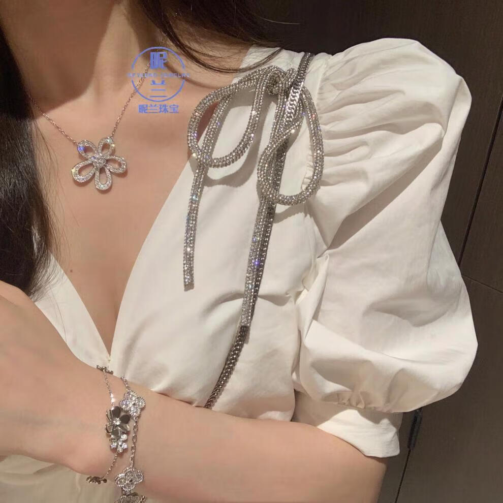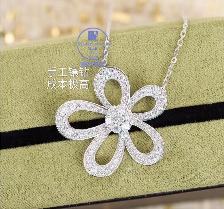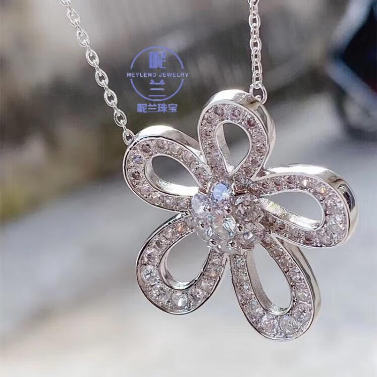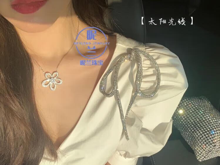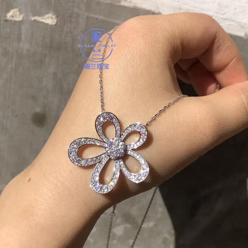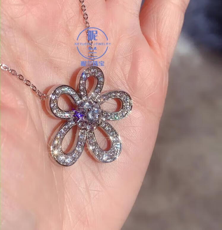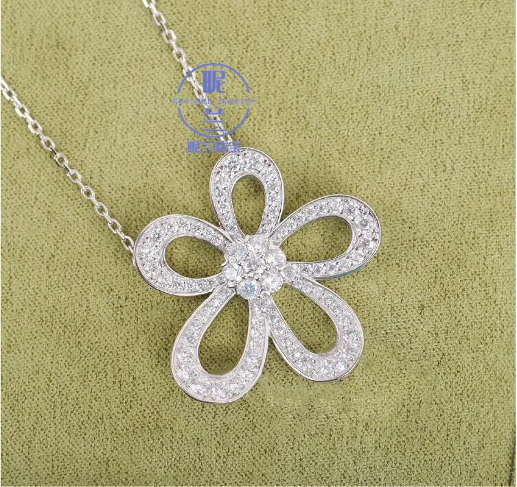Nilan 18K gold moissanite sunflower necklace large flower lesbian style rose gold full clavicle chain PT950 platinum large flower necklace