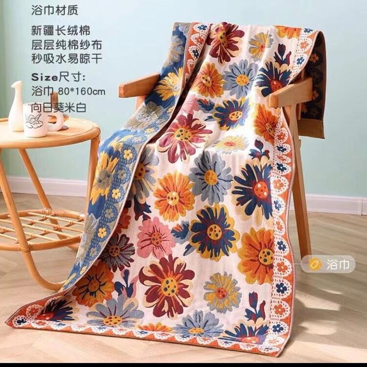 80*160 cm gauze bath towel, pure cotton, thickened and enlarged, beach sports wrap, travel nap blanket, colorful flowers 80*160
