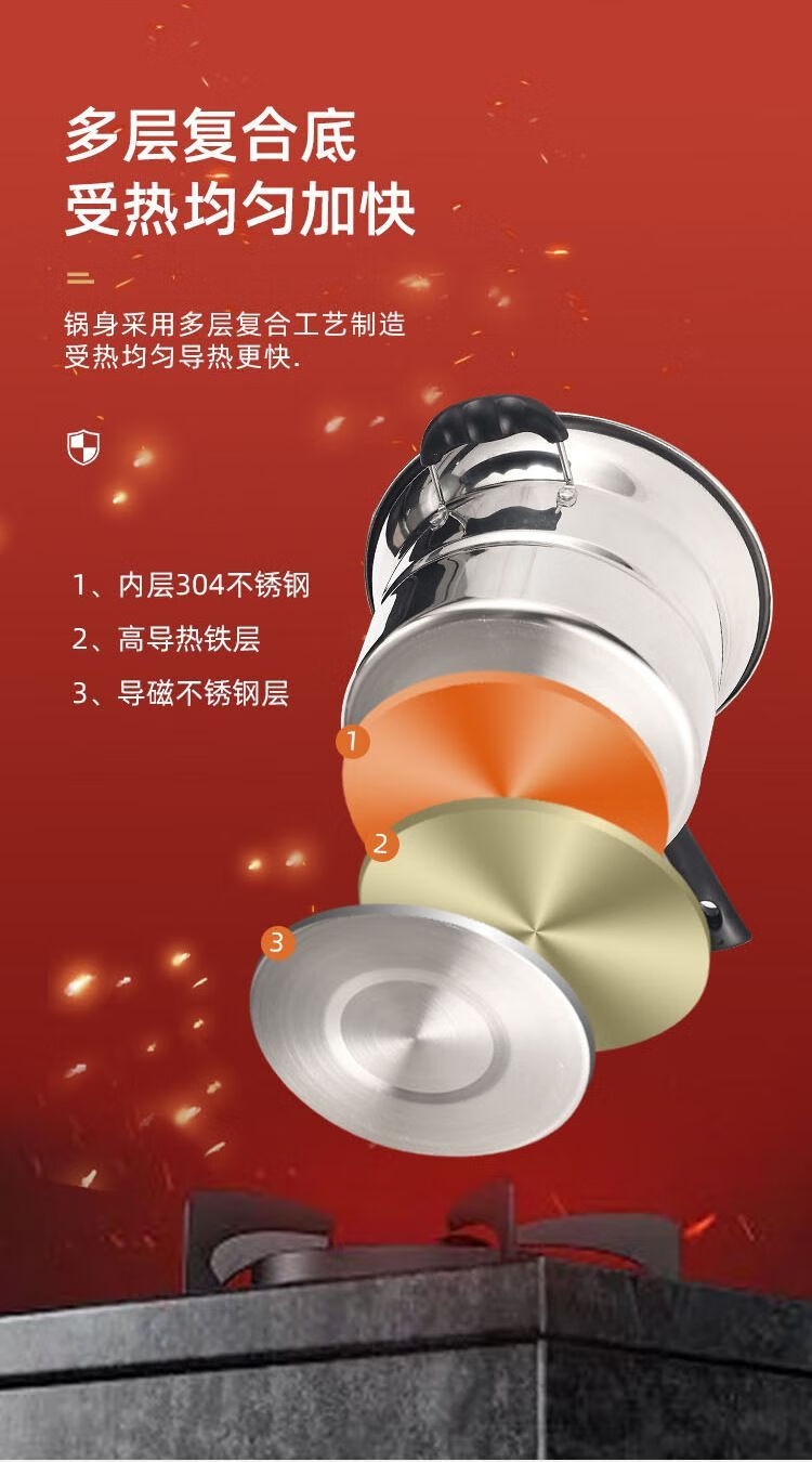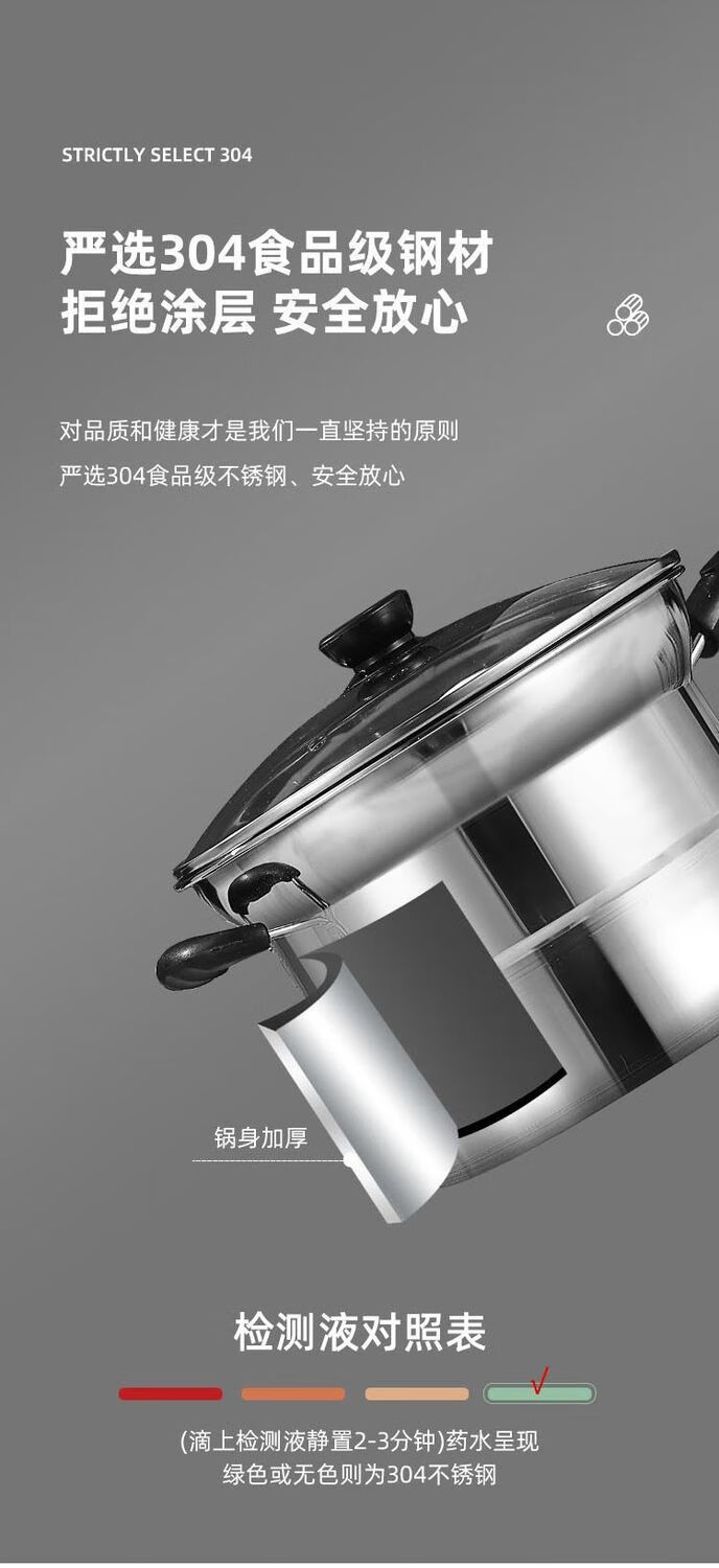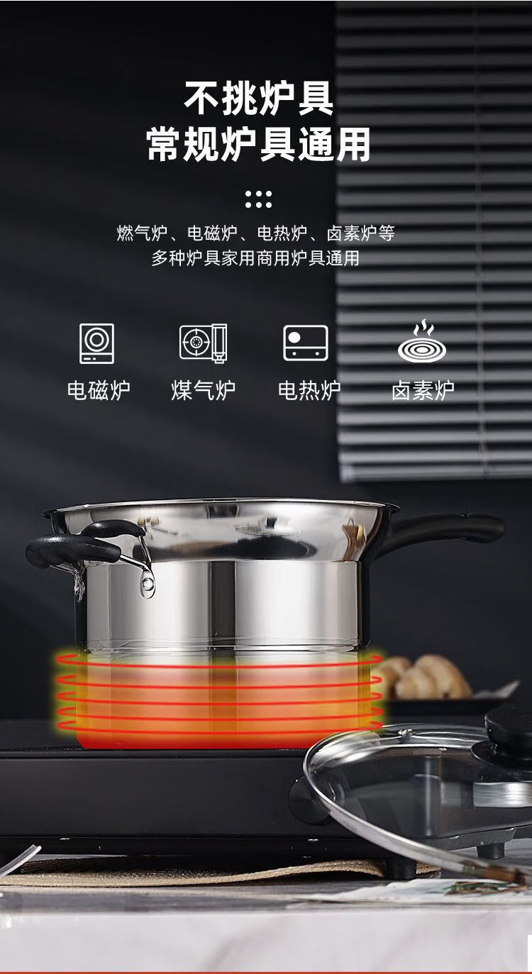 CLCEY304 stainless steel multifunctional noodle pot, milk pot, small frying pot, soup pot, steamer, household cooking pot, induction cooker, universal pot, 22cm 304 antibacterial steel, four-piece set with double bottom