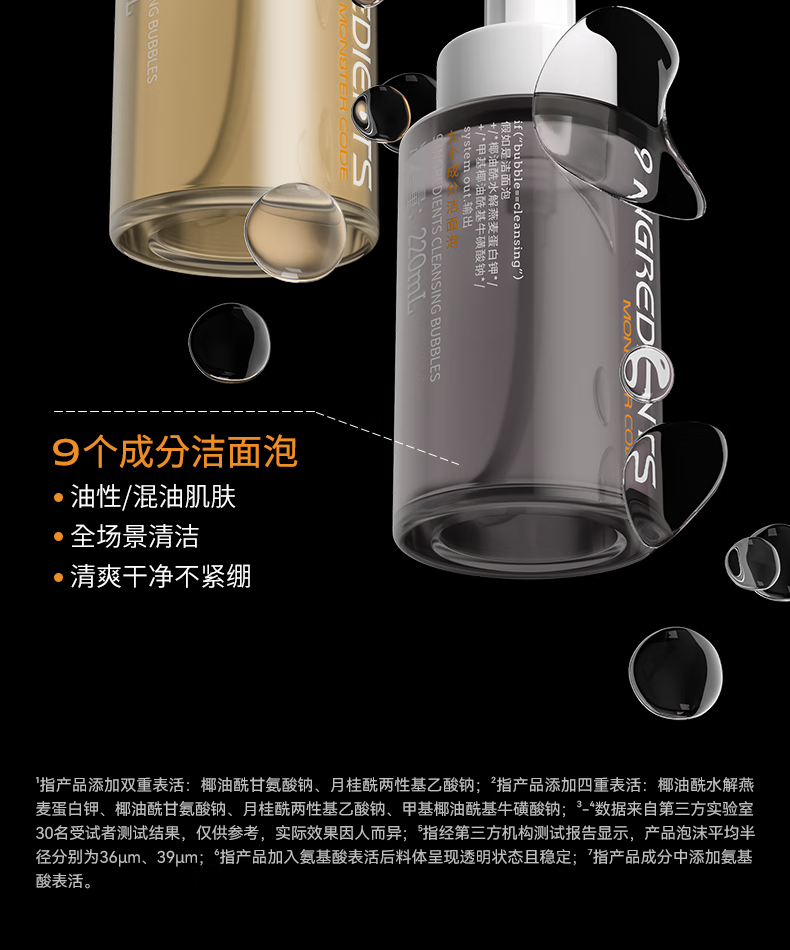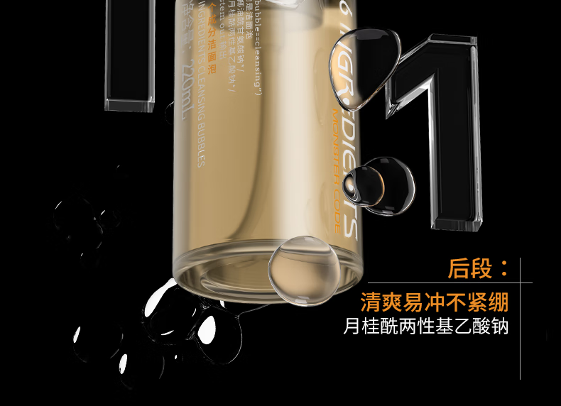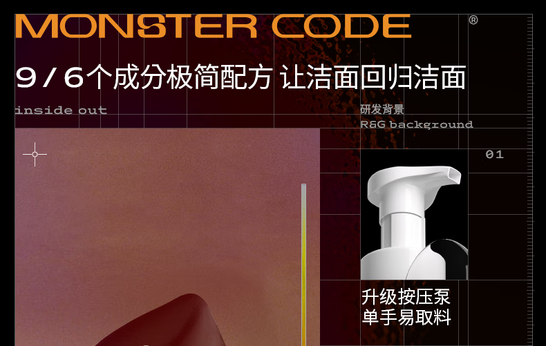 MONSTER CODE Amino Acid Facial Cleanser Facial Cleanser Mousse for Men and Women Deep Cleansing Gentle Morning Cleansing/Second Cleansing Six Ingredients 220ml