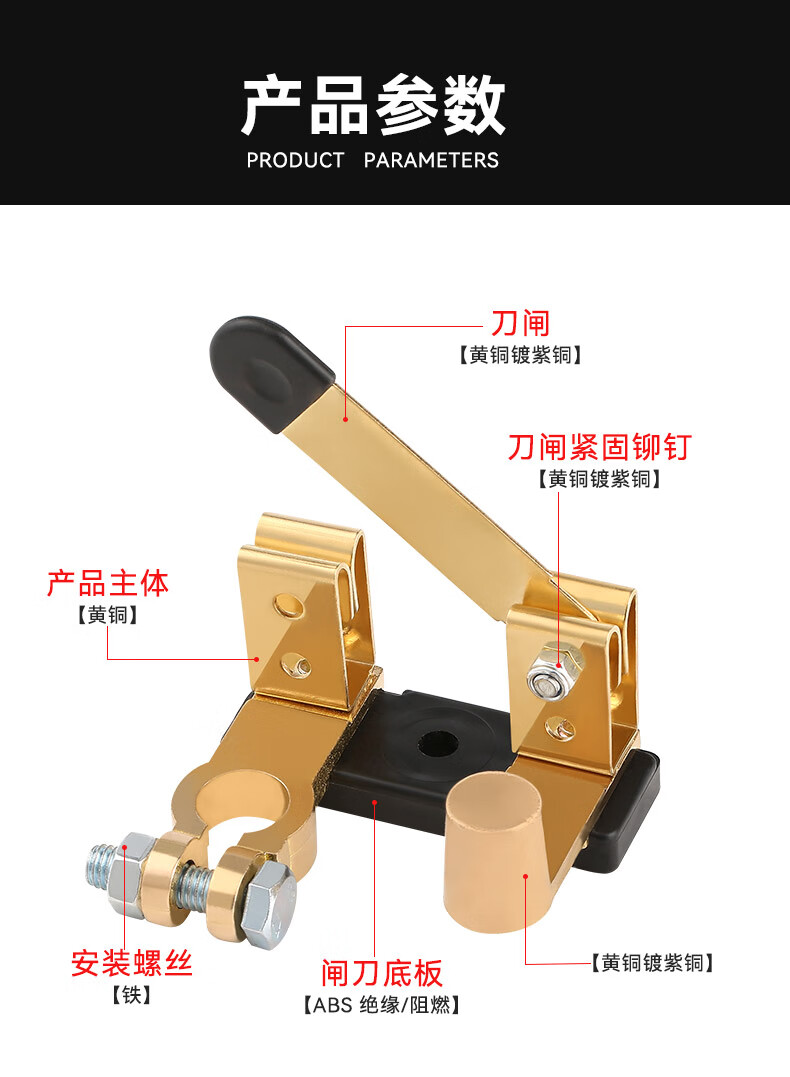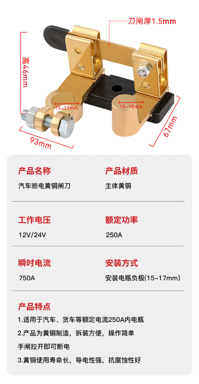 Sivir car battery power-off switch pure copper positive and negative universal anti-leakage knife switch anti-leakage modified brass main gate (suitable for 15-17mm) upgraded thickened brass vertical type
