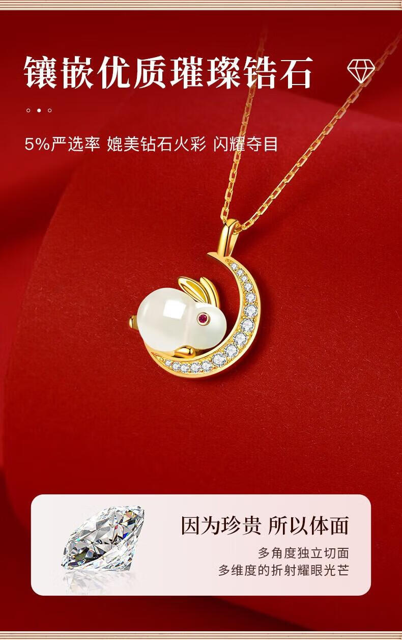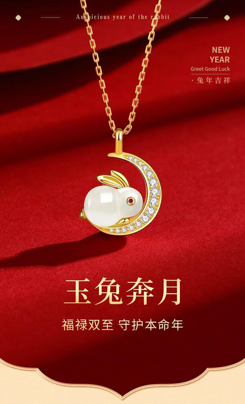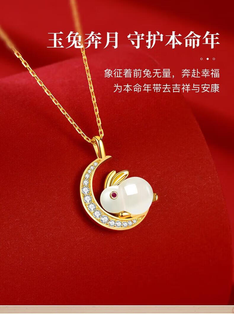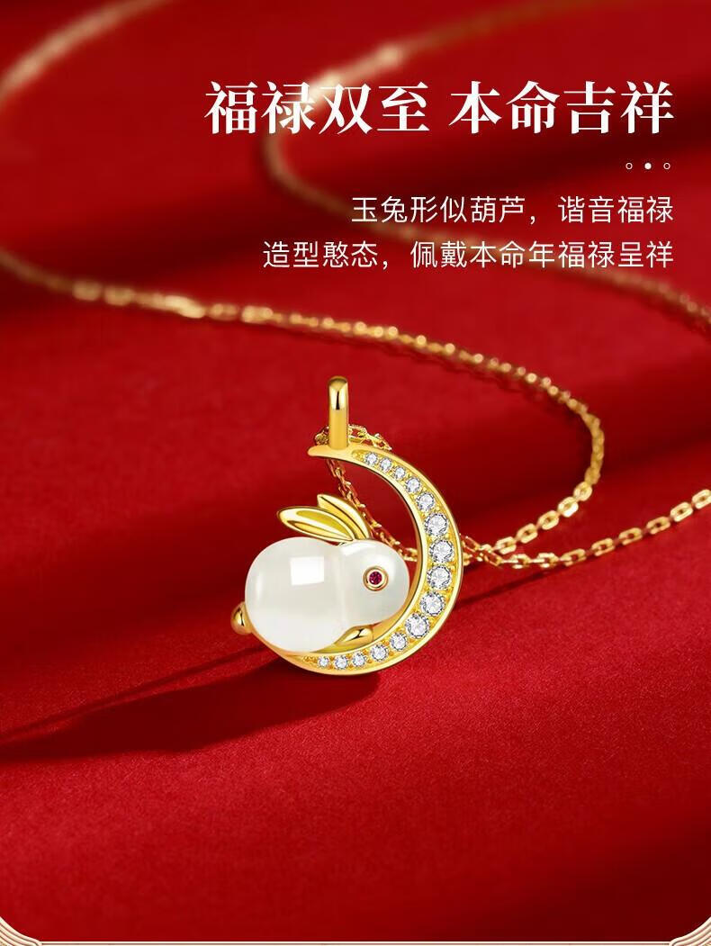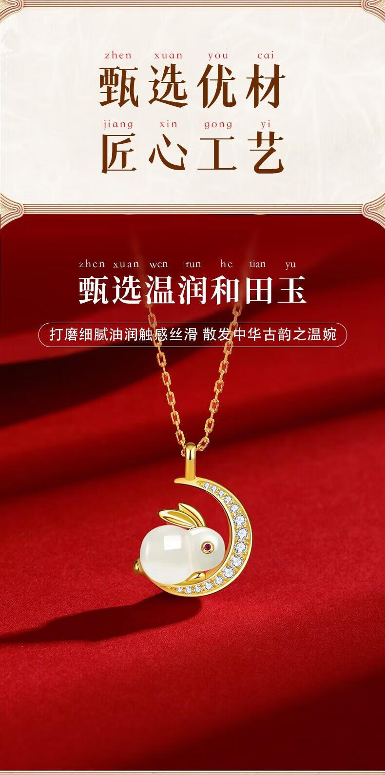 Vana Jade Rabbit Flying to the Moon Silver Necklace Girls Hetian Jade Pendant Birthday Gift for Girlfriend and Wife Jade Rabbit Flying to the Moon Necklace Beijing Warehouse Shipping Next Day