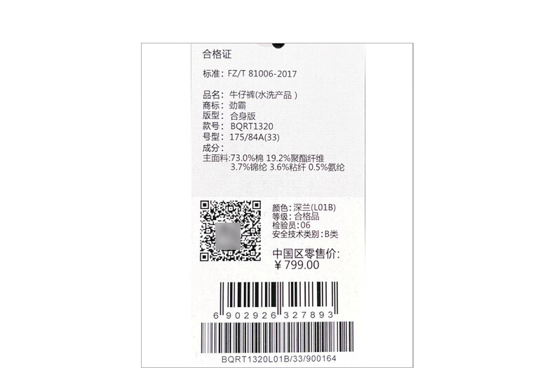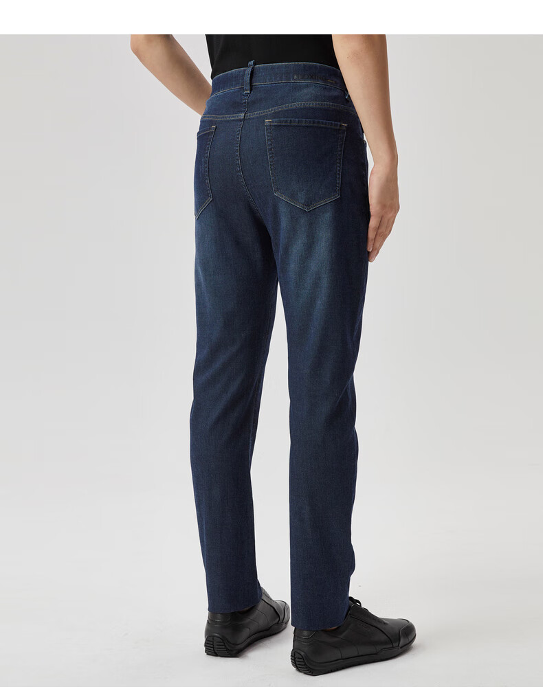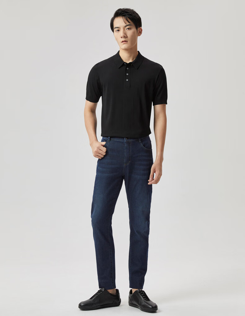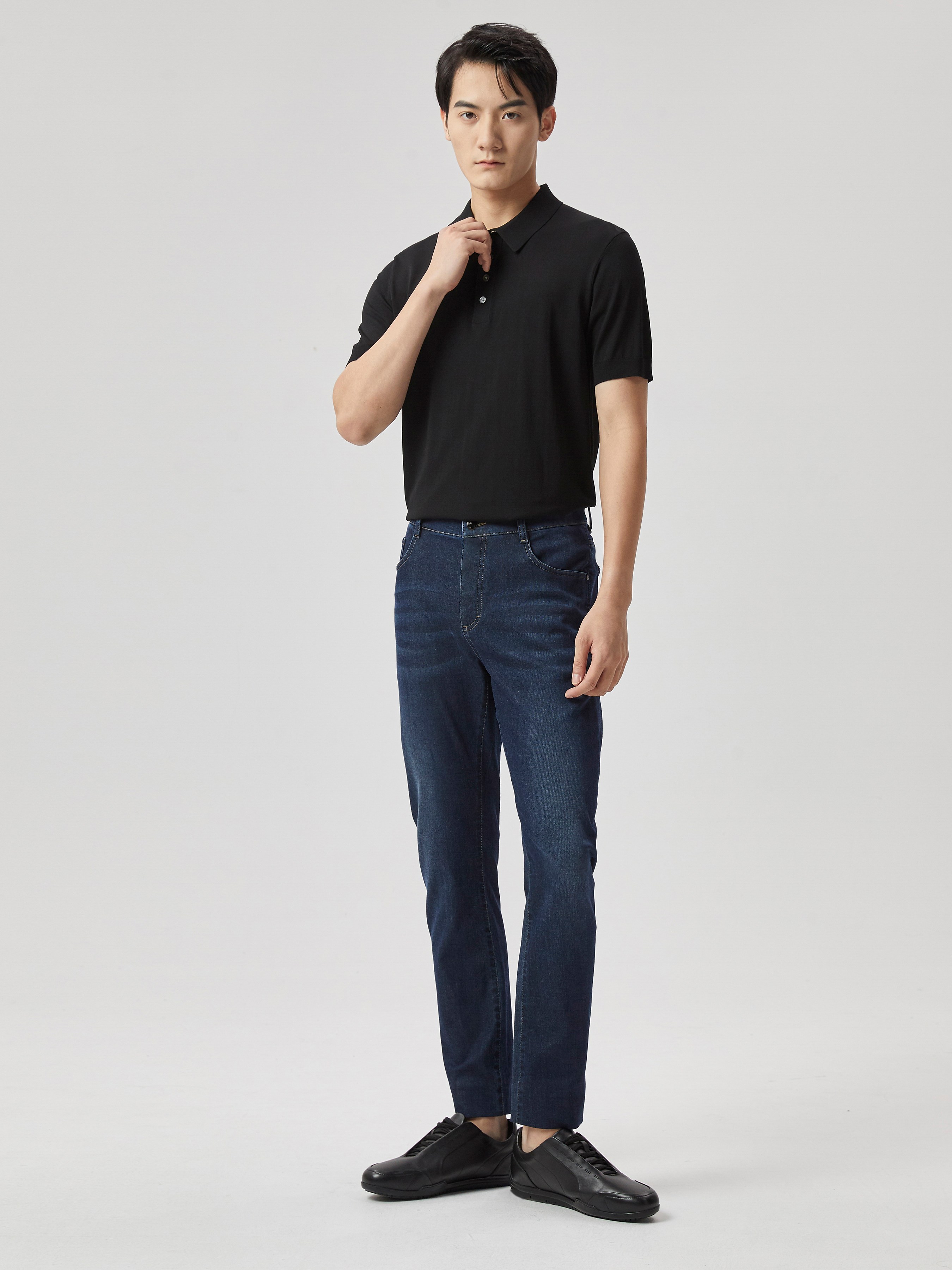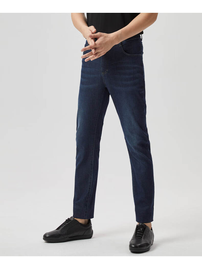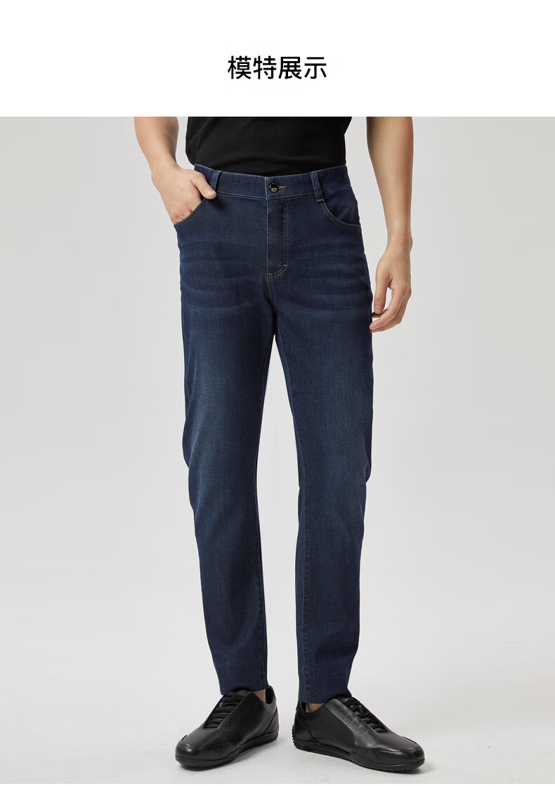 劲霸男装春秋款纯色水洗牛仔裤子男直筒棉微弹简约长裤|BQRT1320 深兰 35