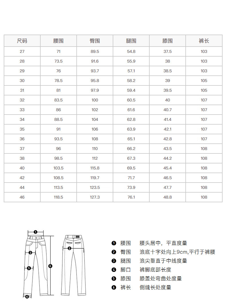 Outseam (cm) 99 cm 101.5 cm 104 cm 106.5 cm 109 cm