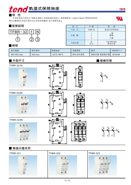 TEND Tiande fuse holder with indicator light TFBR-321N 322N 323N TFBR-323N 3P 32A