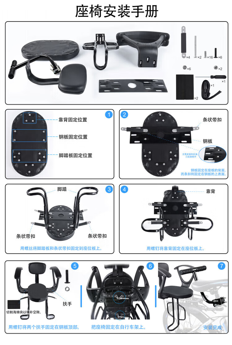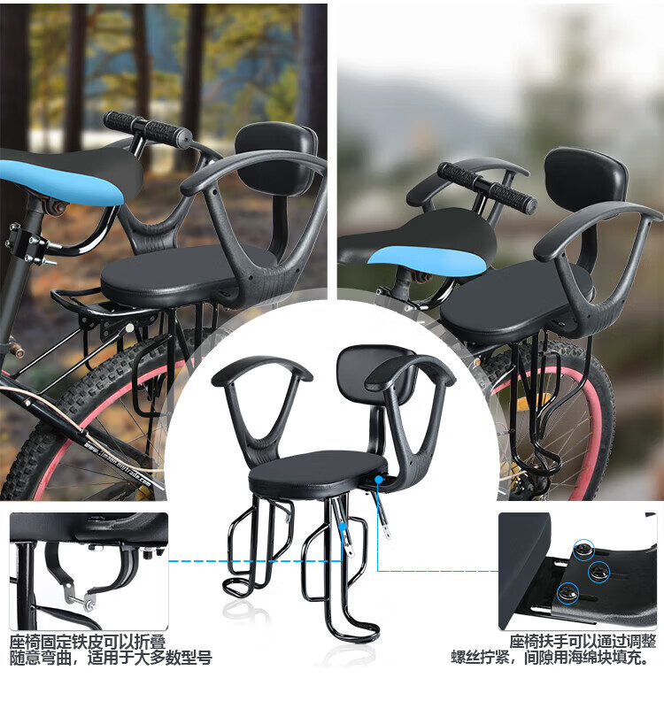 GUBPMTSHIM bicycle child seat rear seat belt backrest mountain bike rear seat cushion bicycle with additional pedals for adults with children bicycle with rear frame black J-shaped handle H