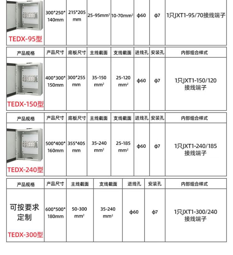 Mineral cable T-connection terminal box low-voltage wire and cable branch conversion junction box high current plug-in box main line 95-120 square meters bronze branch box