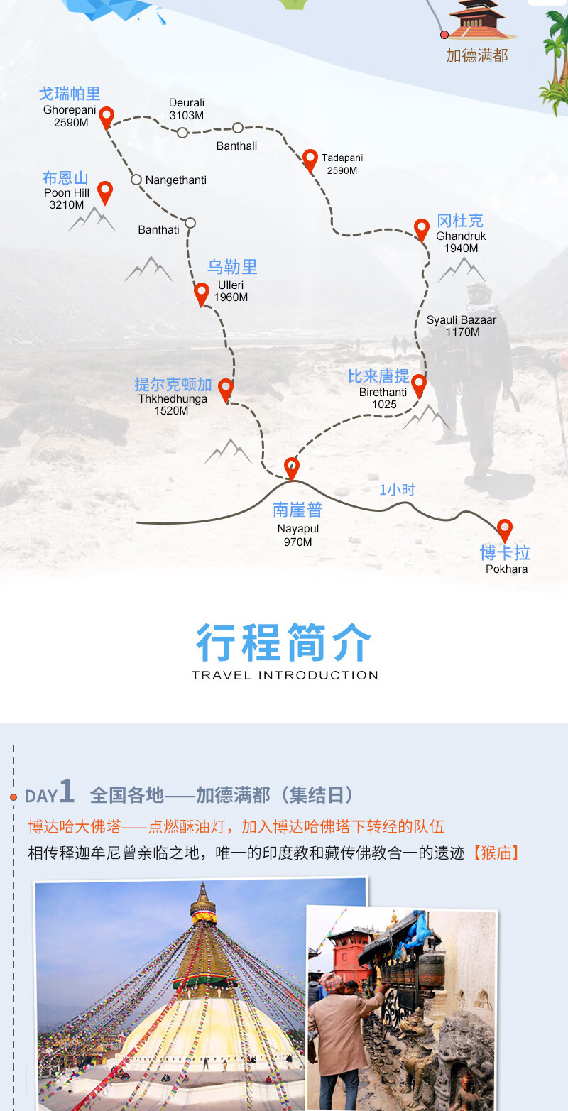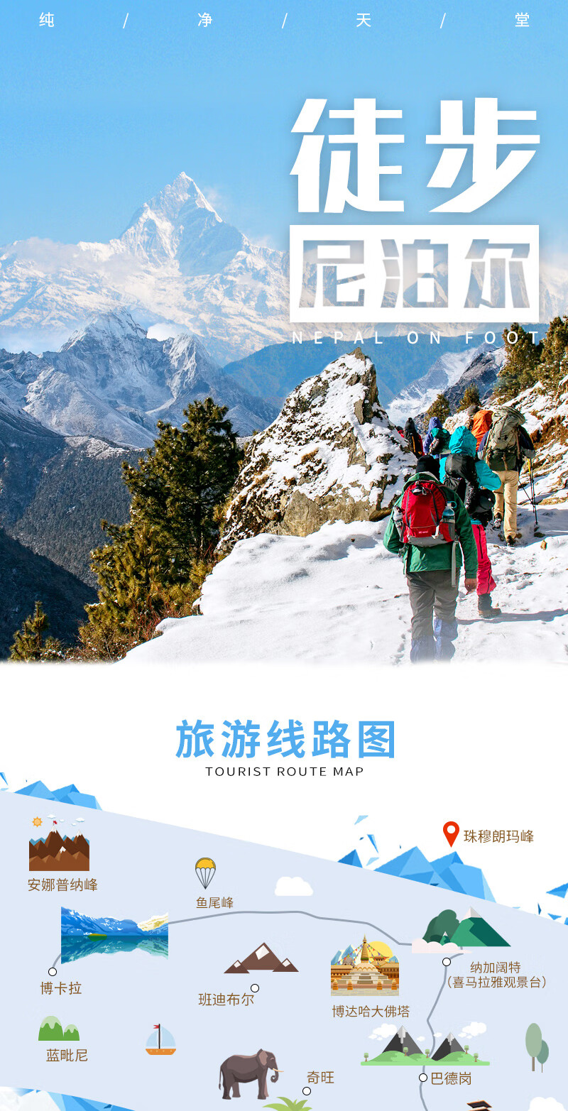 Hiking in Nepal for 7 nights and 8 days. Pure fun travel. Minimum booking of 2 people. One single group. Chinese tour guide service. 2 people VIP chartered single group (single price)