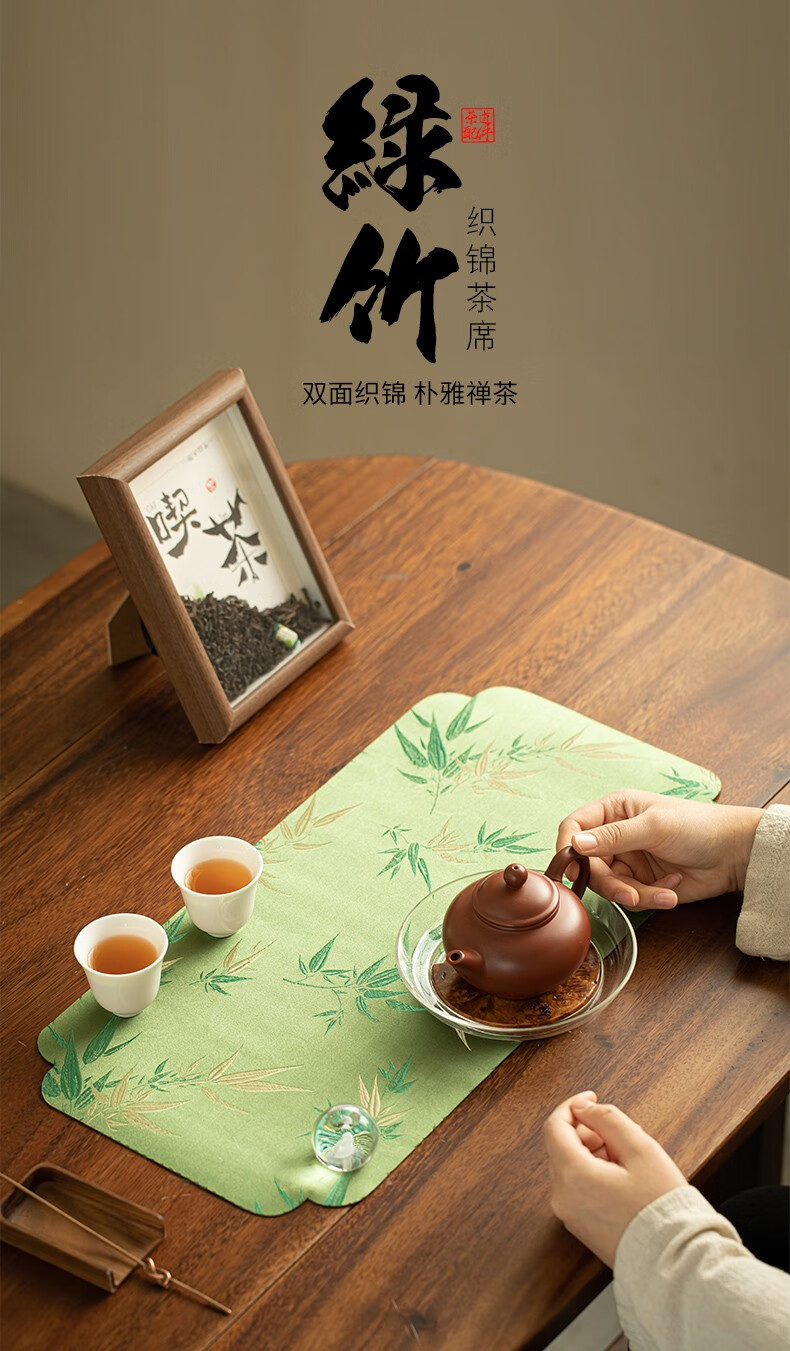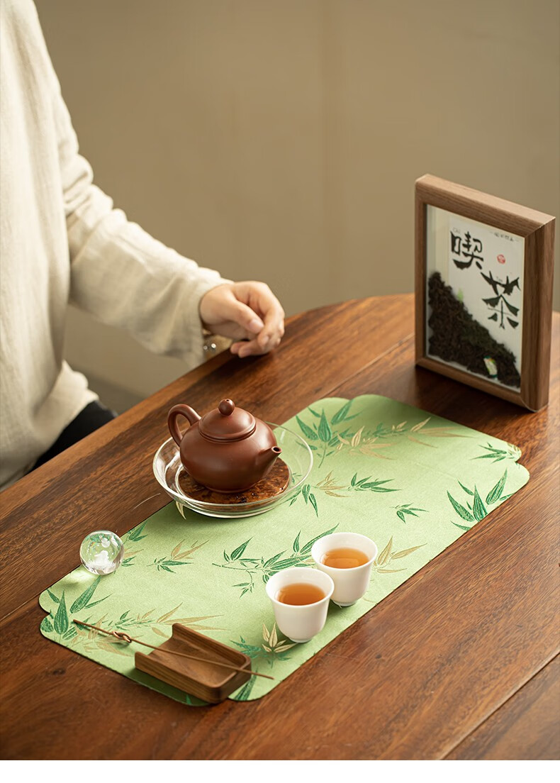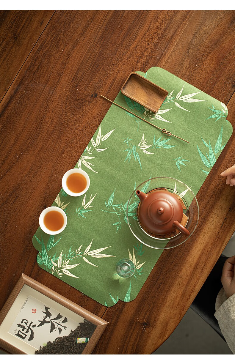 Taoyu tea towel, tea cup, tea mat, Chinese tablecloth, pot absorbent tea towel mat, pure cotton rag, tea set, light luxury cover cloth, tea cloth, dry soaked bamboo shadow tea mat - rectangular