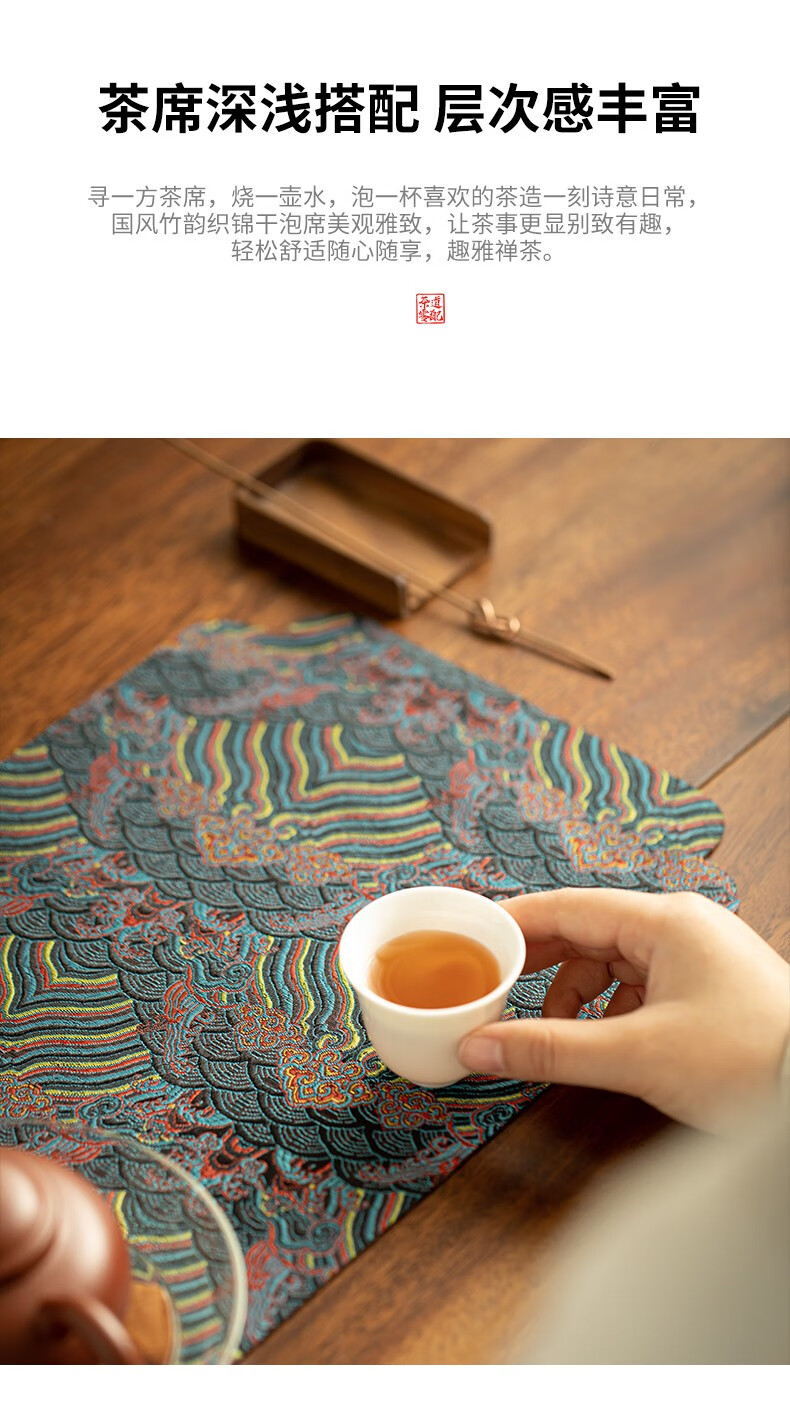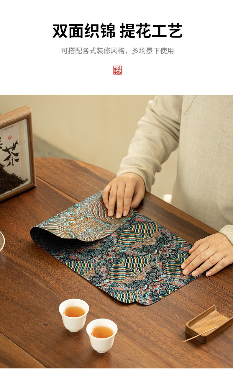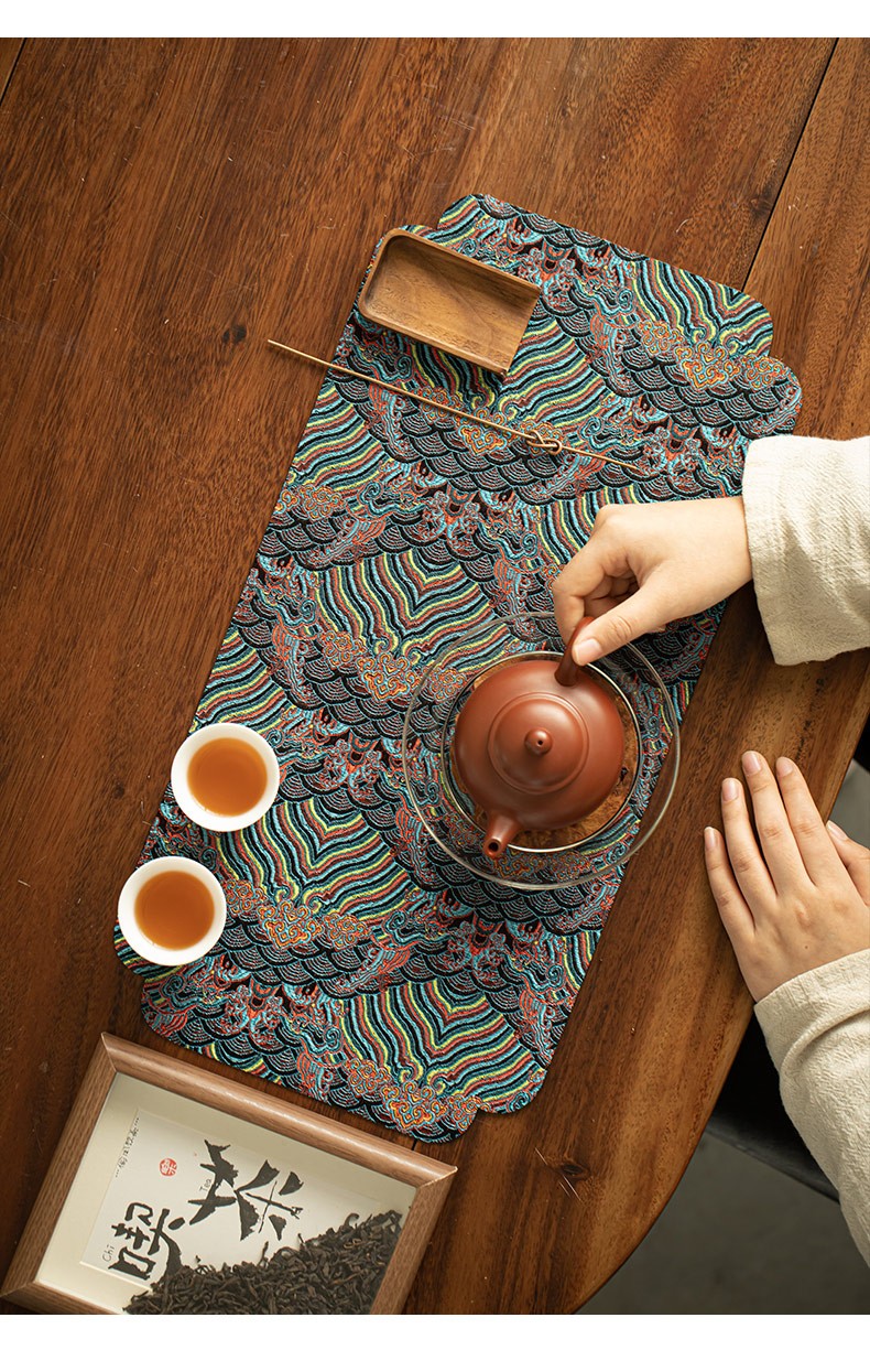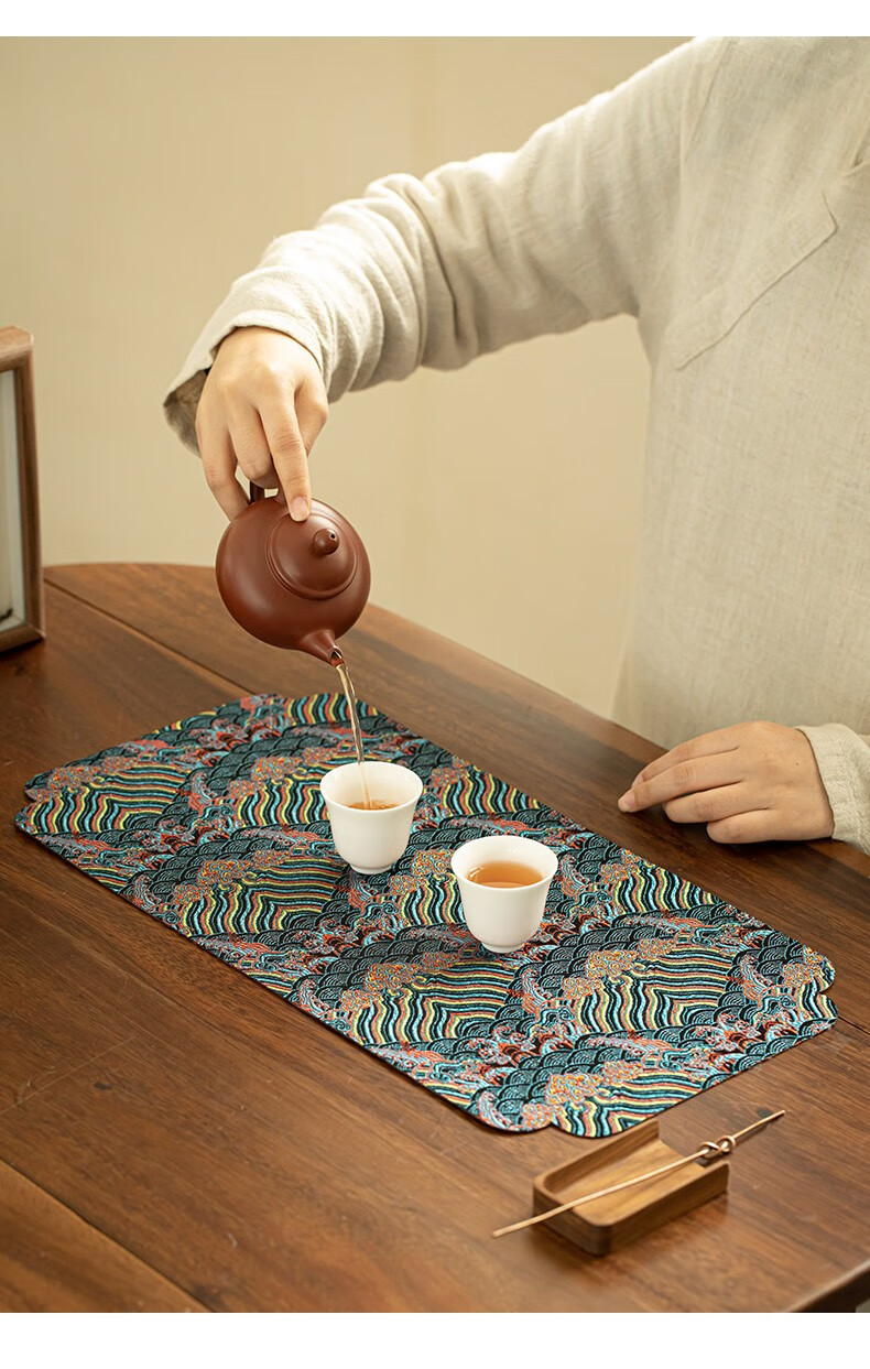 Tao Yu Chinese Double-sided Wave Tea Seat Waterproof Zen Dry-Infused Single Tea Towel Cloth Mat Table Flag Tea Cloth Tea Ceremony Accessories Dry-Infused Wave Tea Seat-Rectangular