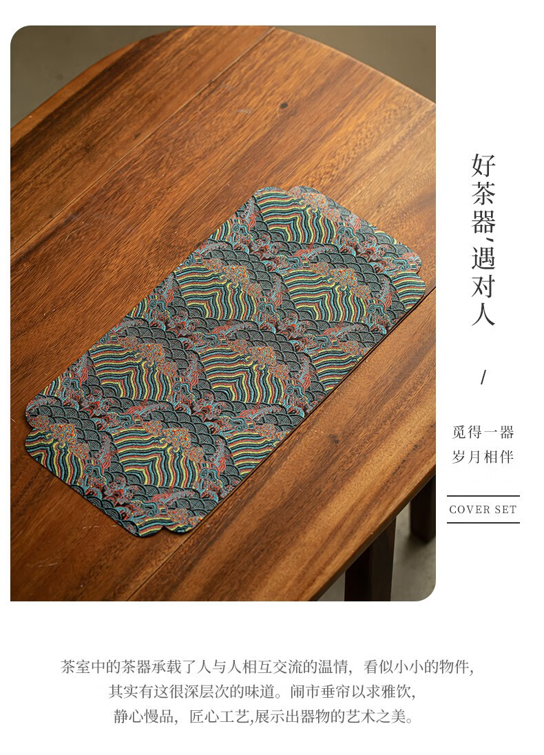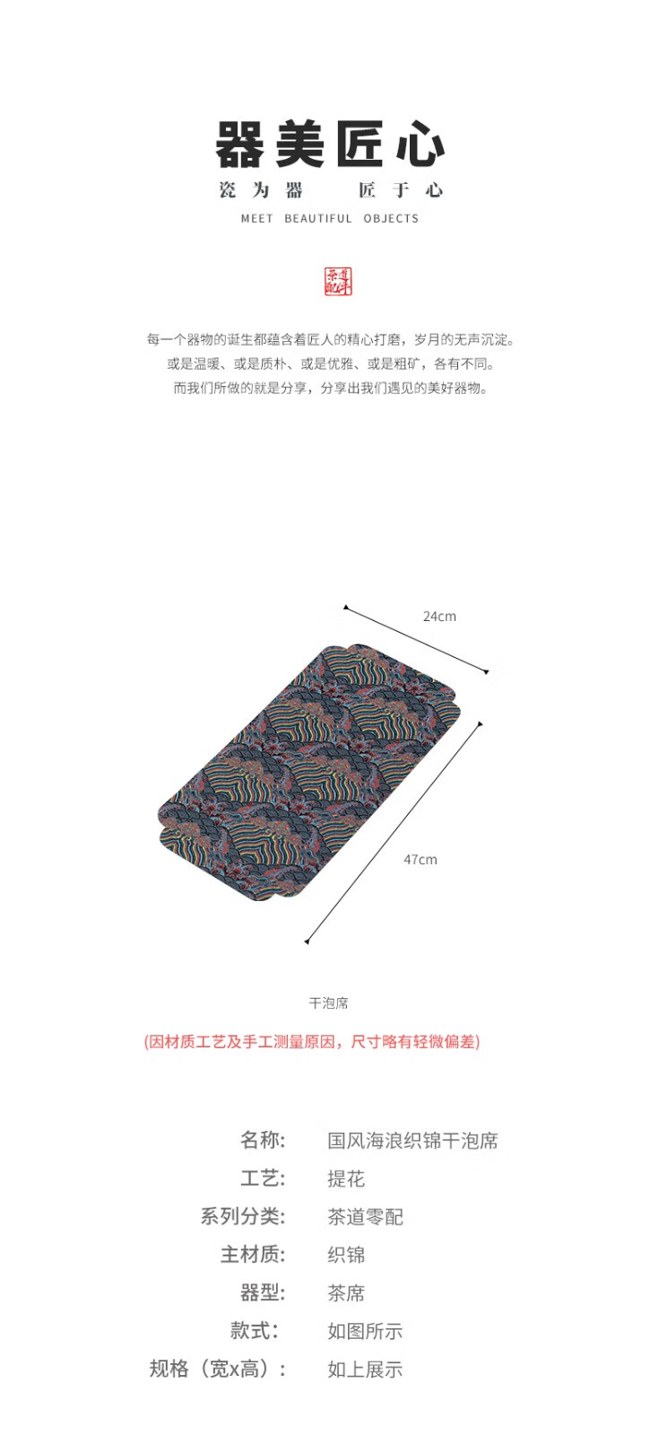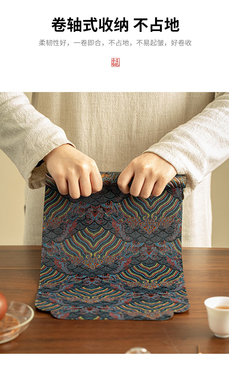 Tao Yu Chinese Double-sided Wave Tea Seat Waterproof Zen Dry-Infused Single Tea Towel Cloth Mat Table Flag Tea Cloth Tea Ceremony Accessories Dry-Infused Wave Tea Seat-Rectangular