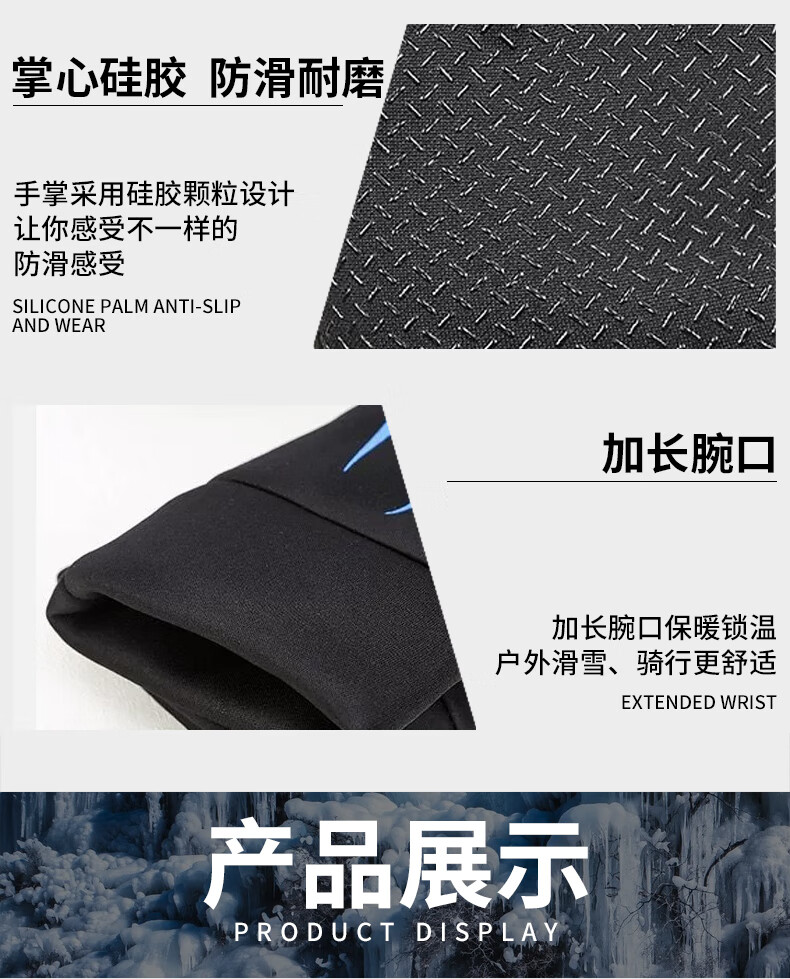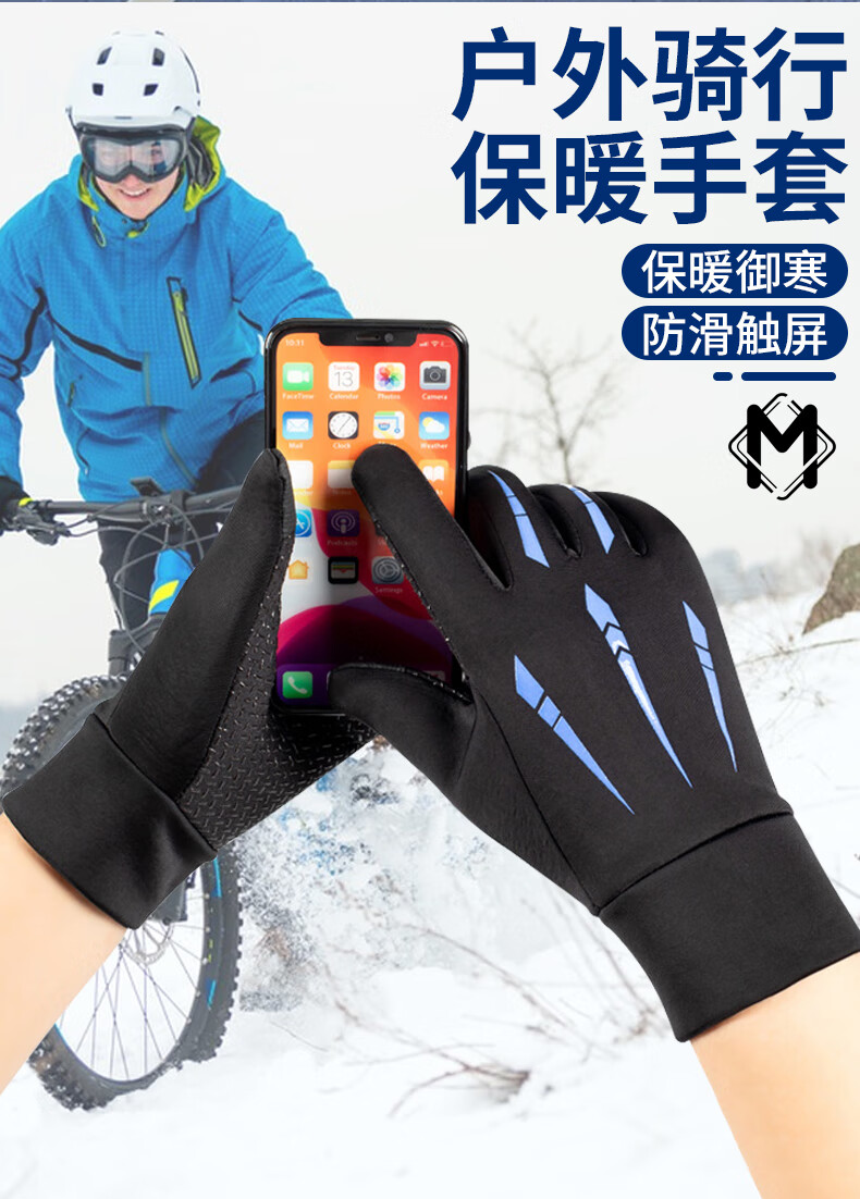 Lan Laimei boys' cycling gloves, high school students' riding gloves, middle school students' windproof, junior high school students' boys' bicycles, autumn and winter teenagers, full finger blue (velvet waterproof), one size fits all
