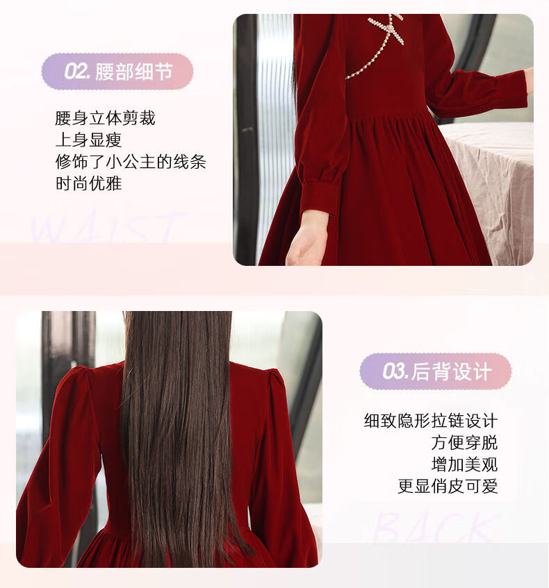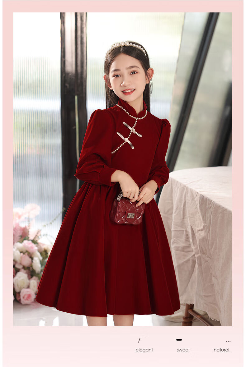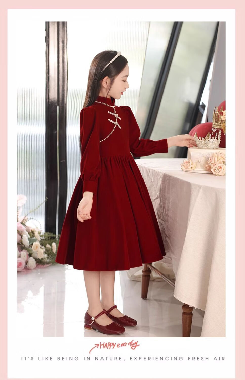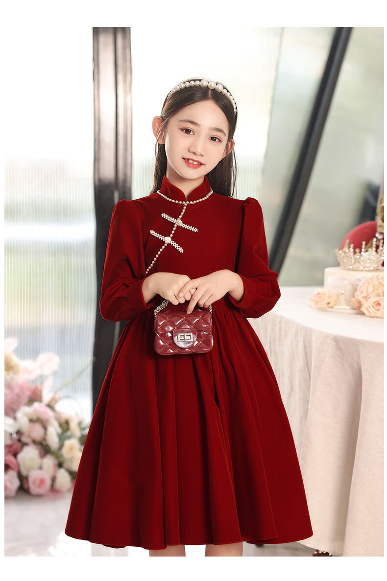 Girls' winter dress, new Chinese style dress, velvet children's skirt, red New Year's greeting dress, girl princess dress, red velvet style, velvet lining 150