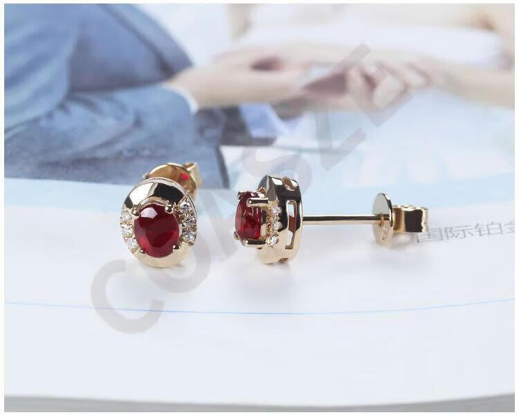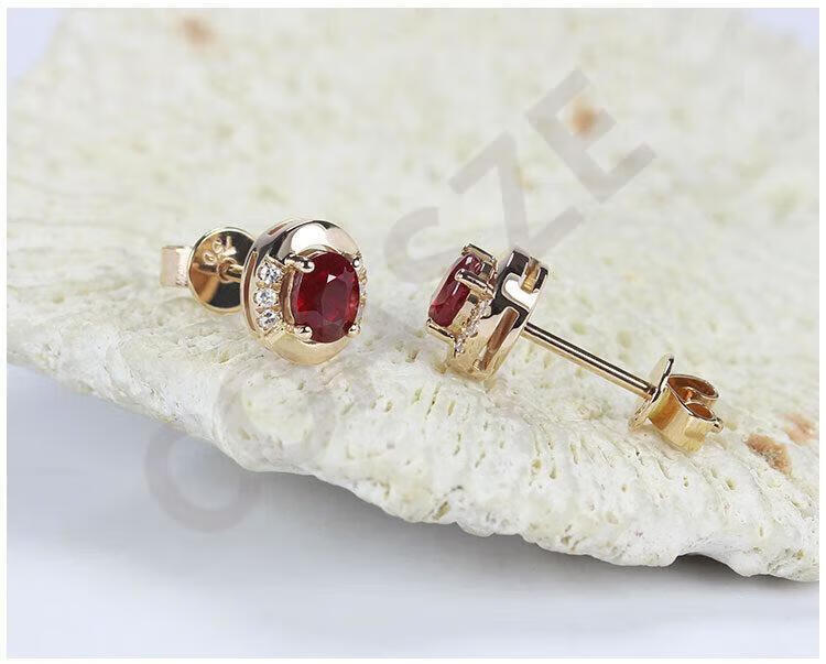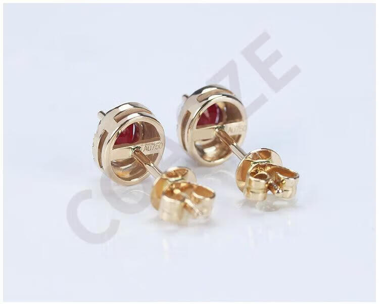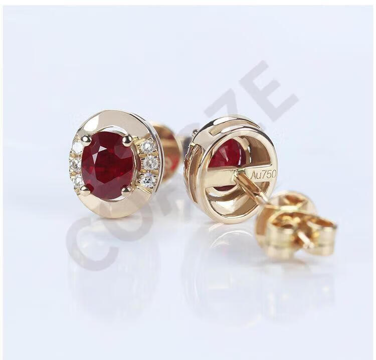 COASZE 18k gold rose gold pigeon blood red gemstone earrings for women, Valentine's Day birthday gift for girlfriend and wife, rose gold (with colored gold ear plugs)