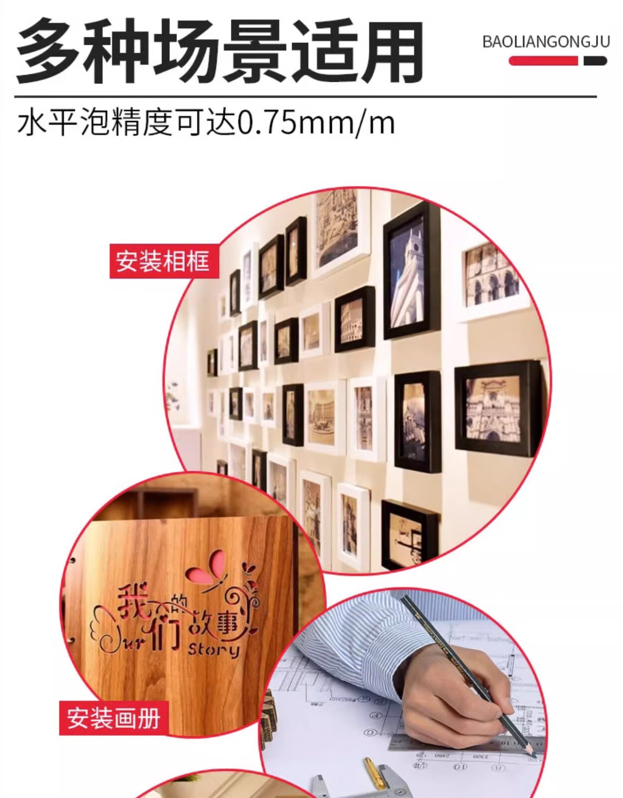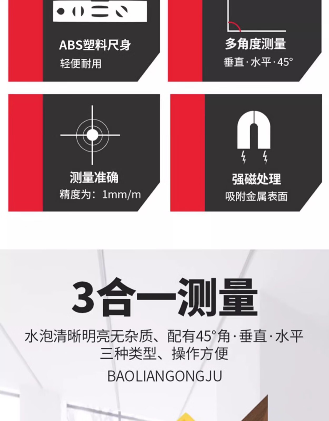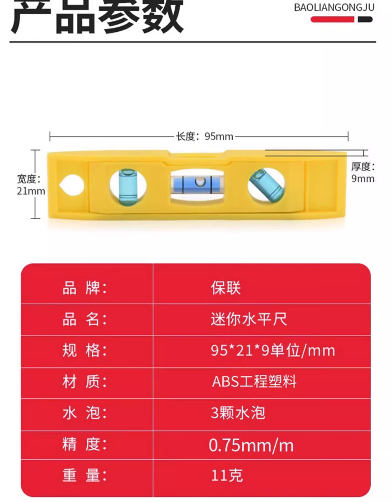 Baolian level high-precision small with strong magnetic mini level level aluminum alloy ruler balance measurement level mini level length 95mm 1 pack