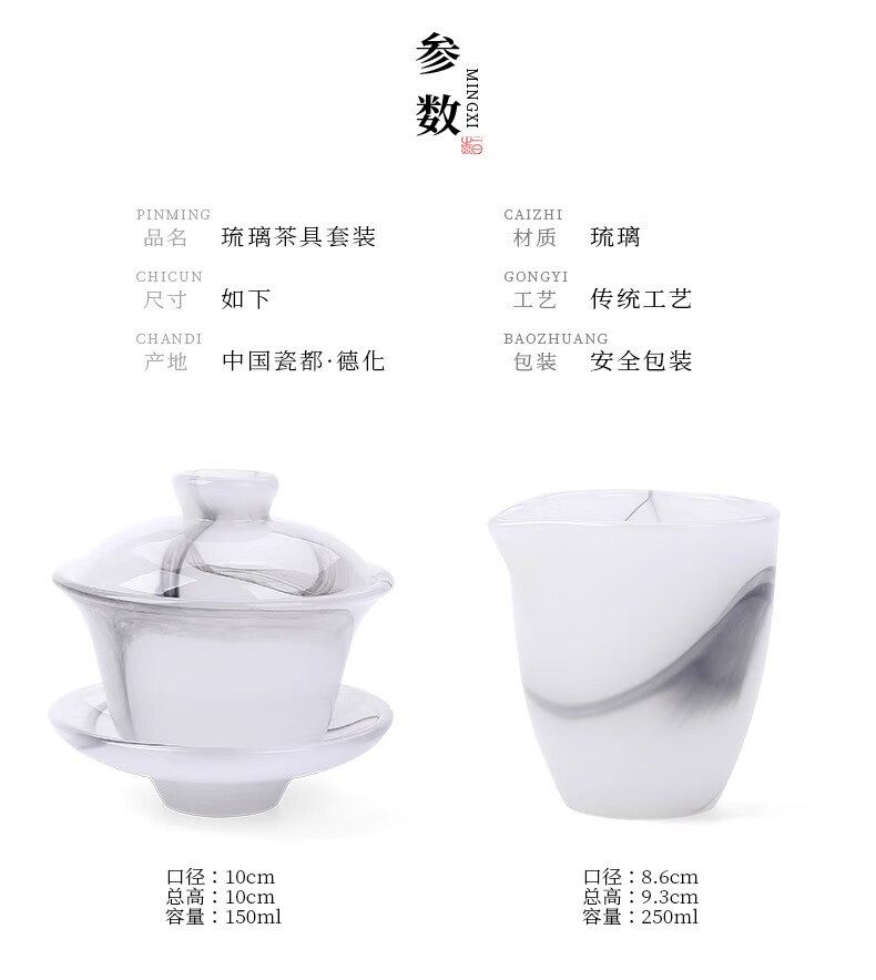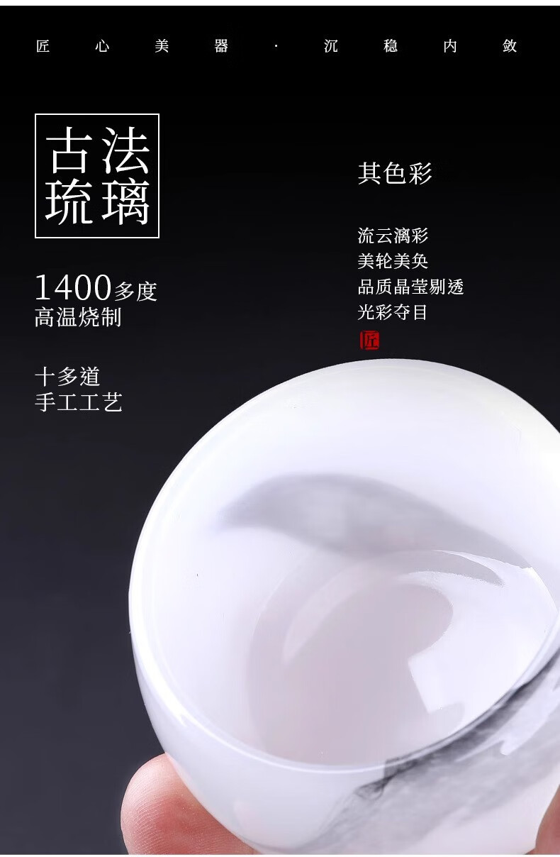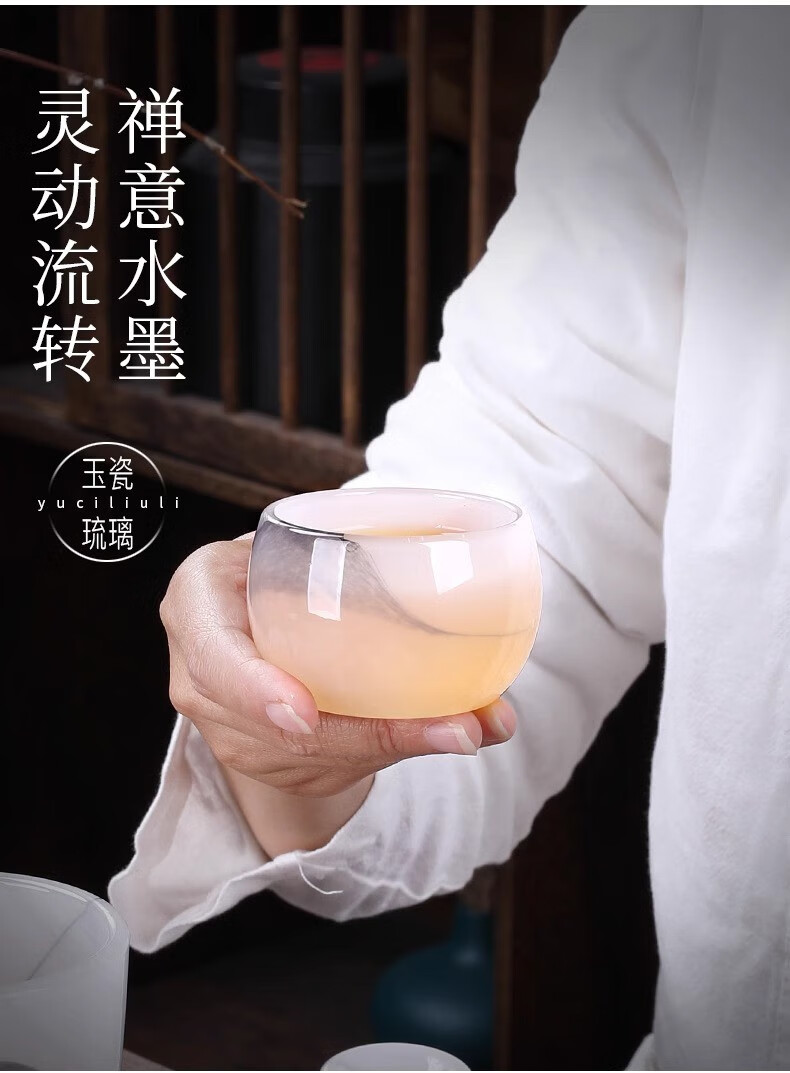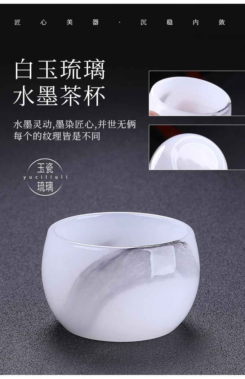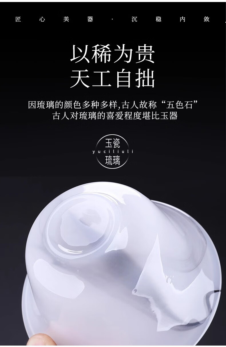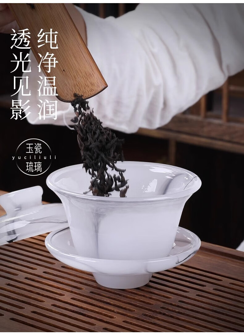 Glaze tea set combination, white jade tea cup, home gift, jade porcelain kung fu tureen teapot, complete gift box gift, pure white glazed jade porcelain set, safe packaging, 1 tureen + 1 fair + 1 tea drain set + 6 tea cups