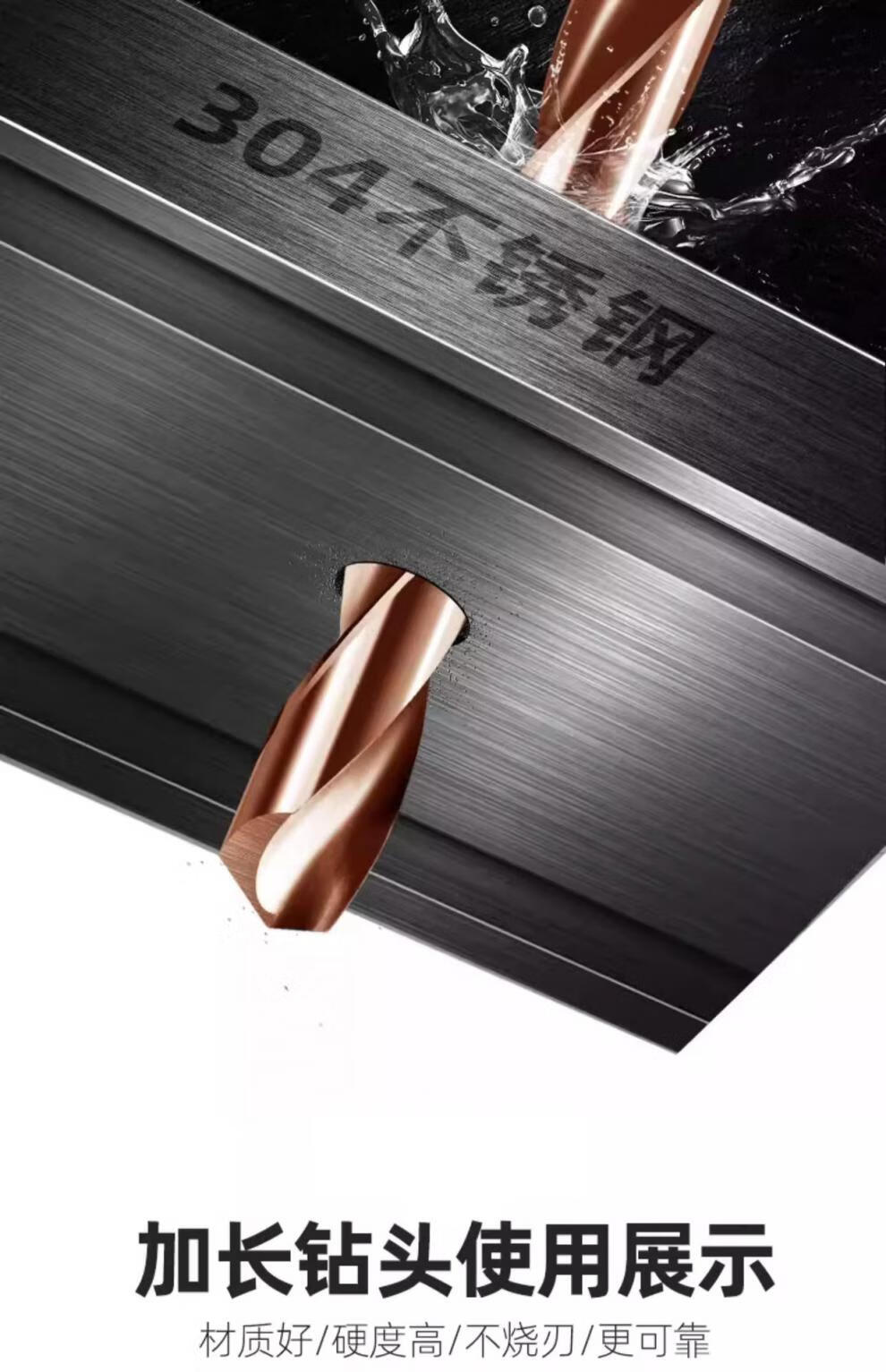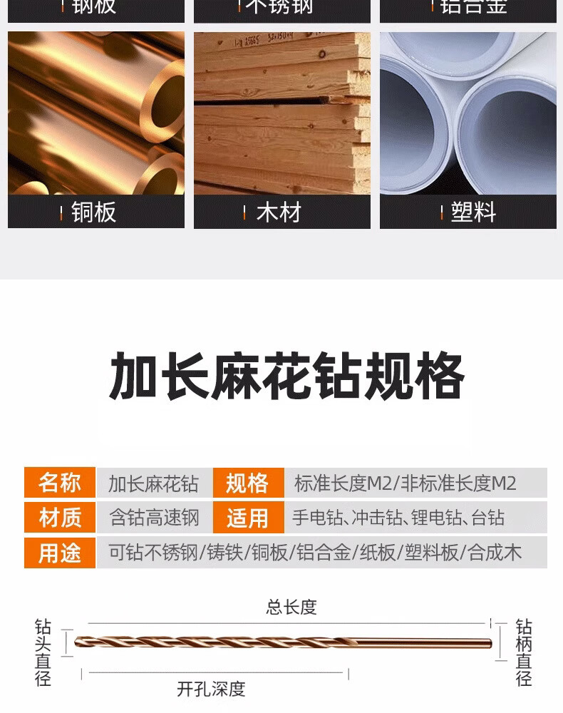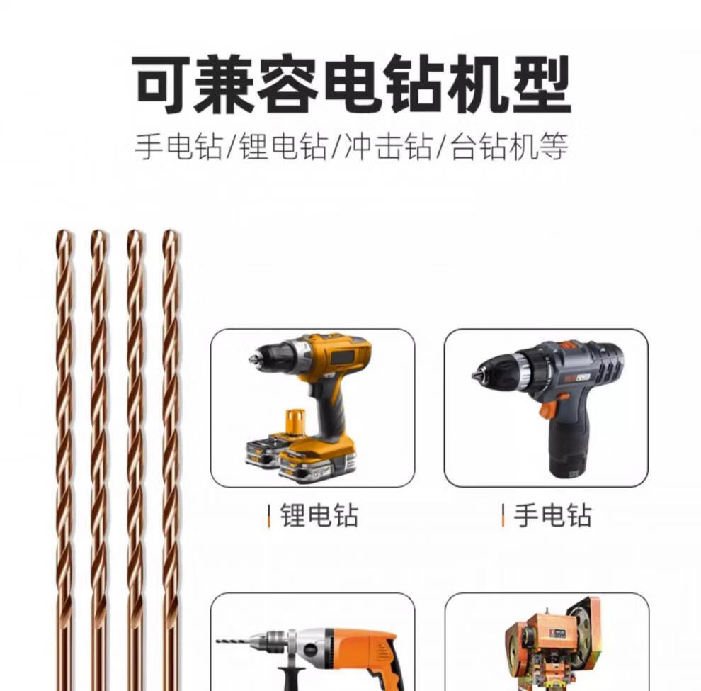 Rongbei cobalt-containing extended twist drill bit stainless steel special drill bit high hardness and strength for deep hole woodworking steel turner extended cobalt-containing drill bit 8*200mm