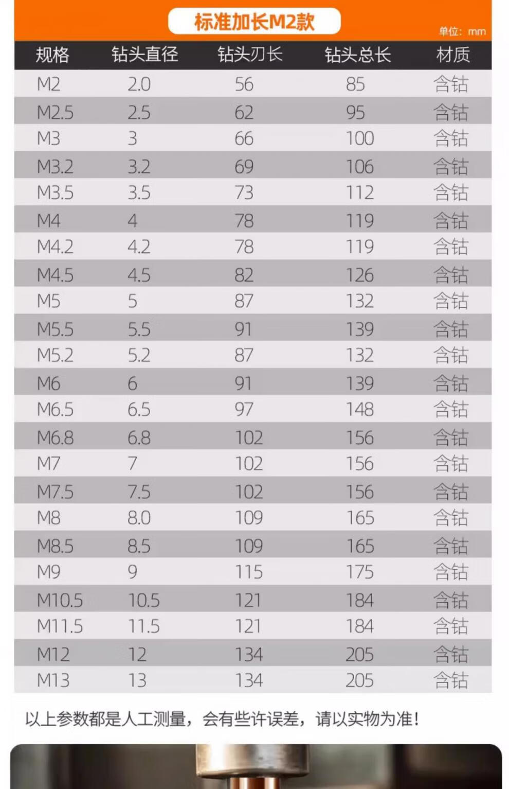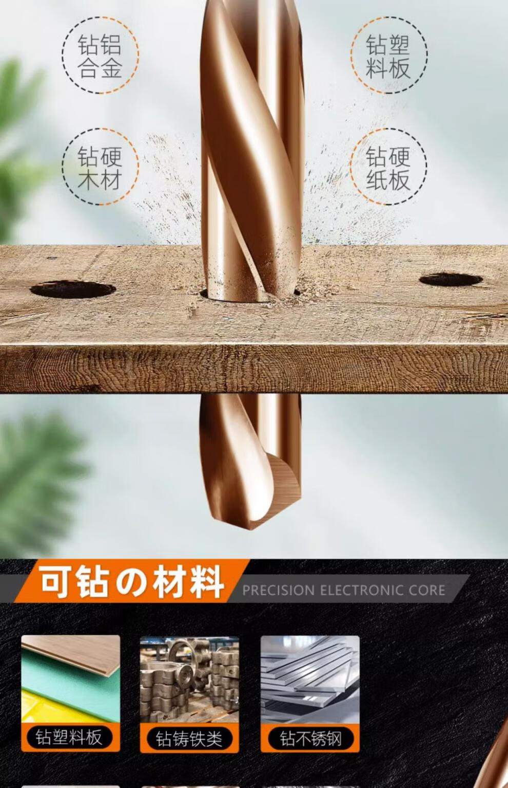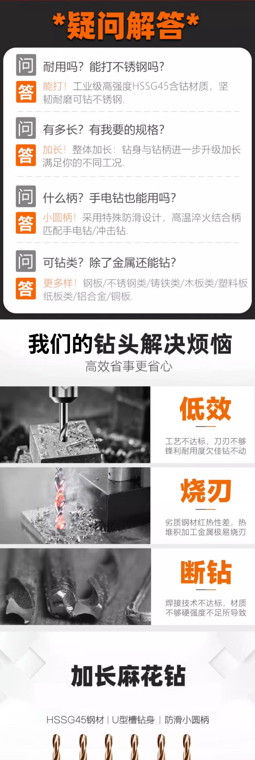 Rongbei cobalt-containing extended twist drill bit stainless steel special drill bit high hardness and strength for deep hole woodworking steel turner extended cobalt-containing drill bit 8*200mm