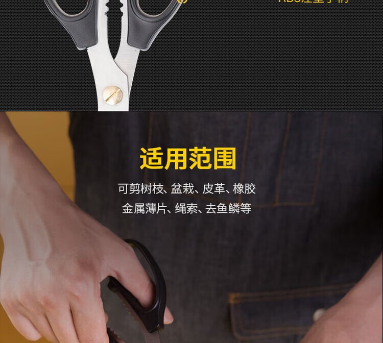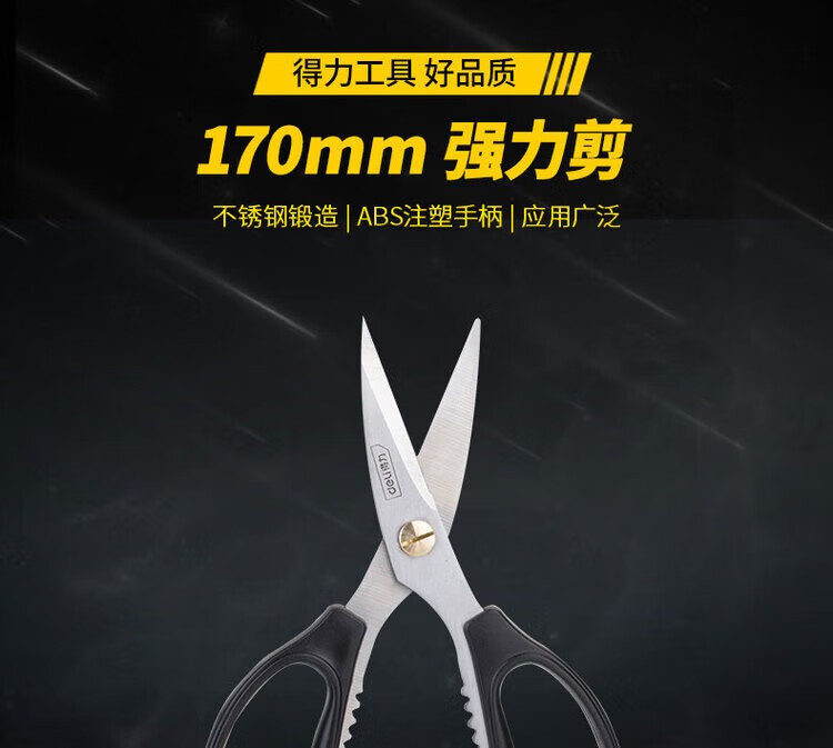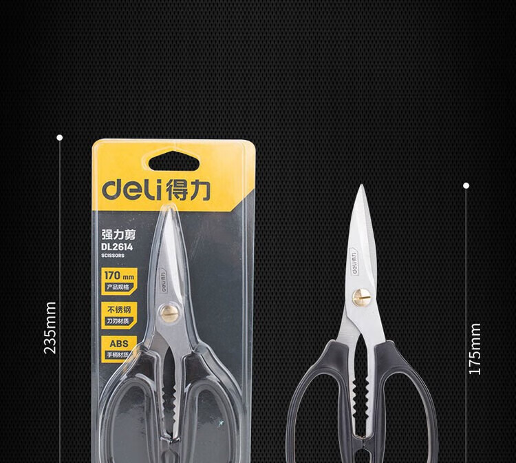 得力(deli)家用不锈钢多功能强力剪刀厨房剪办公剪裁缝剪学生手工便携式剪刀 DL2614【家用强力剪175mm】