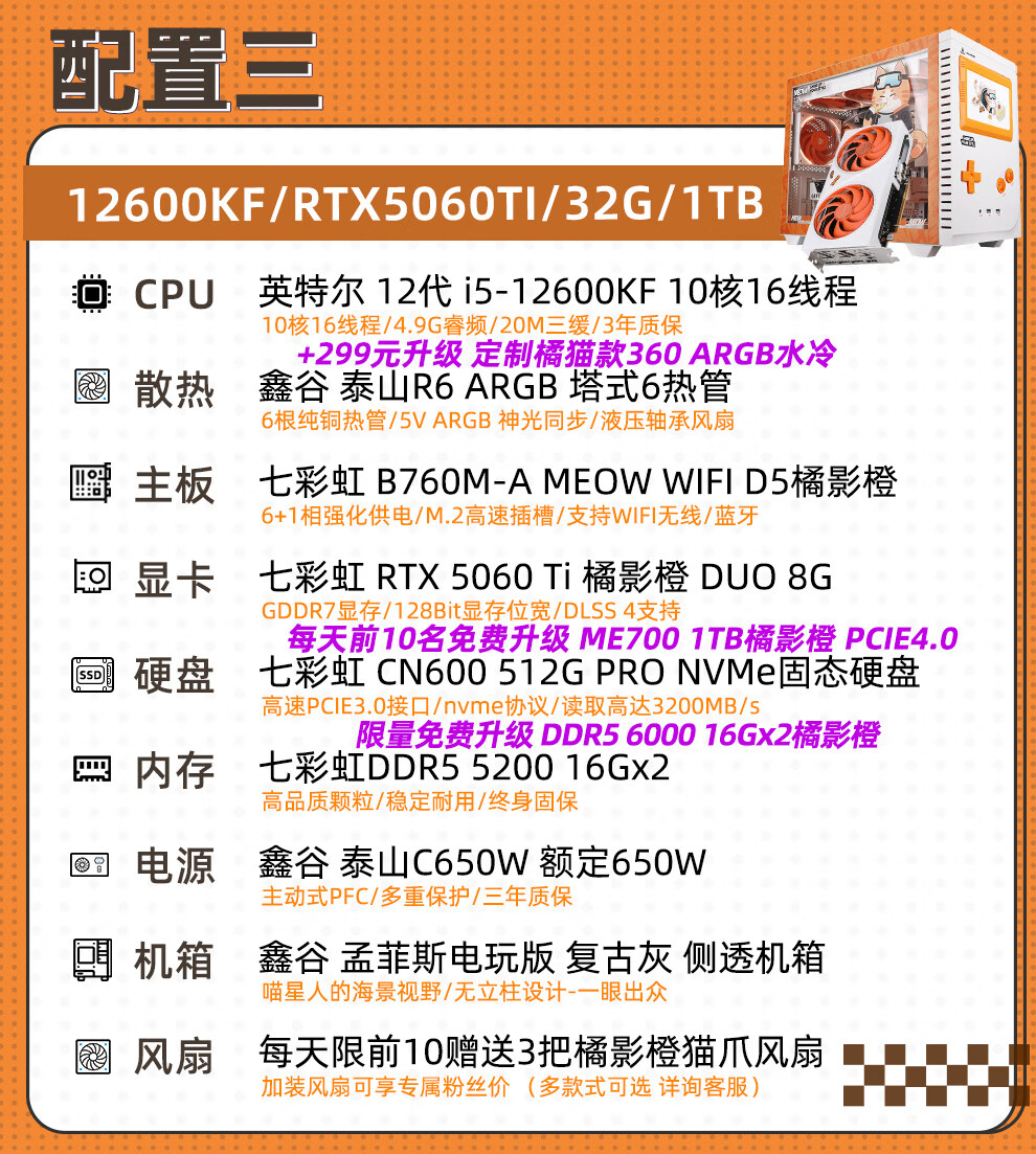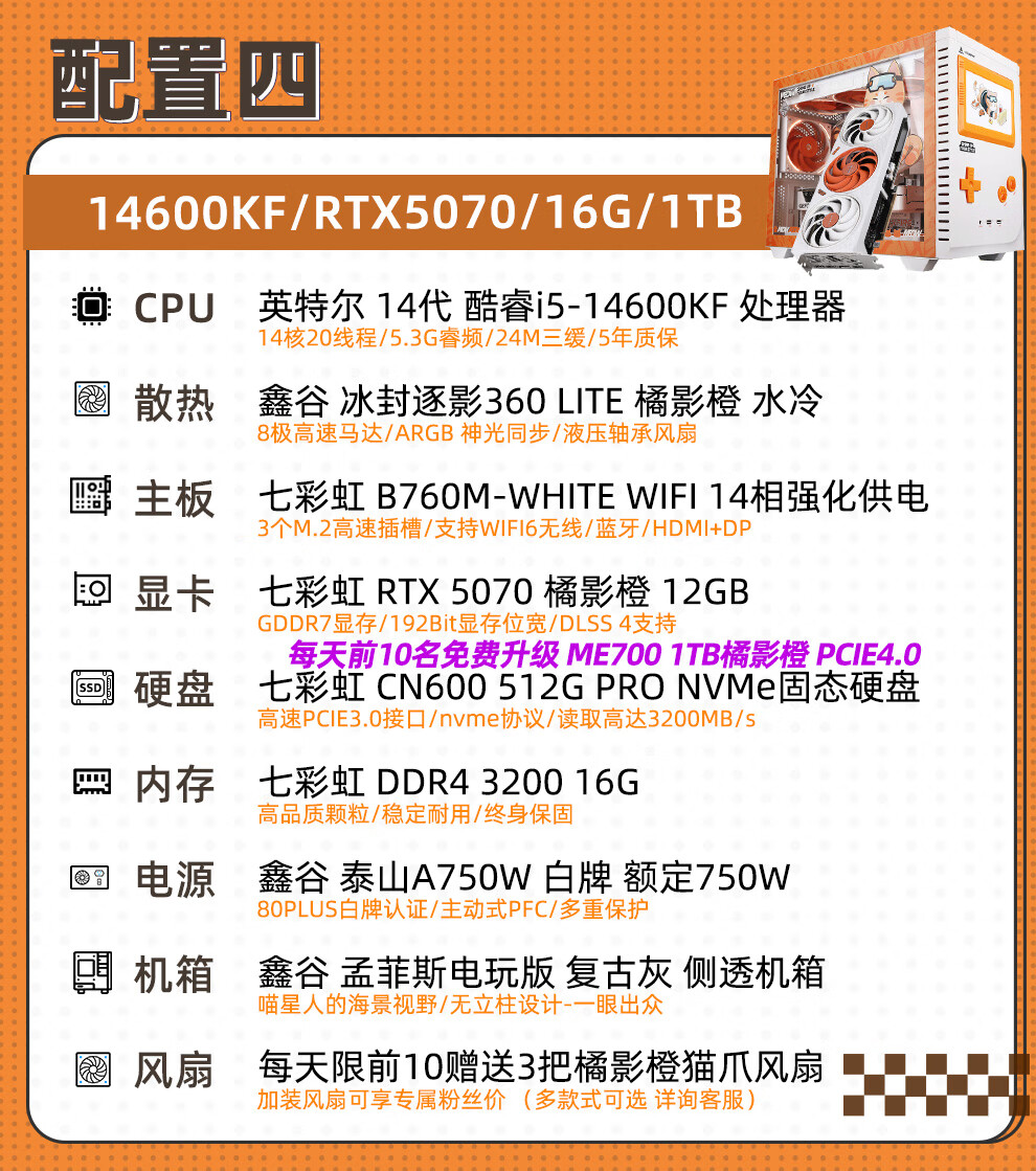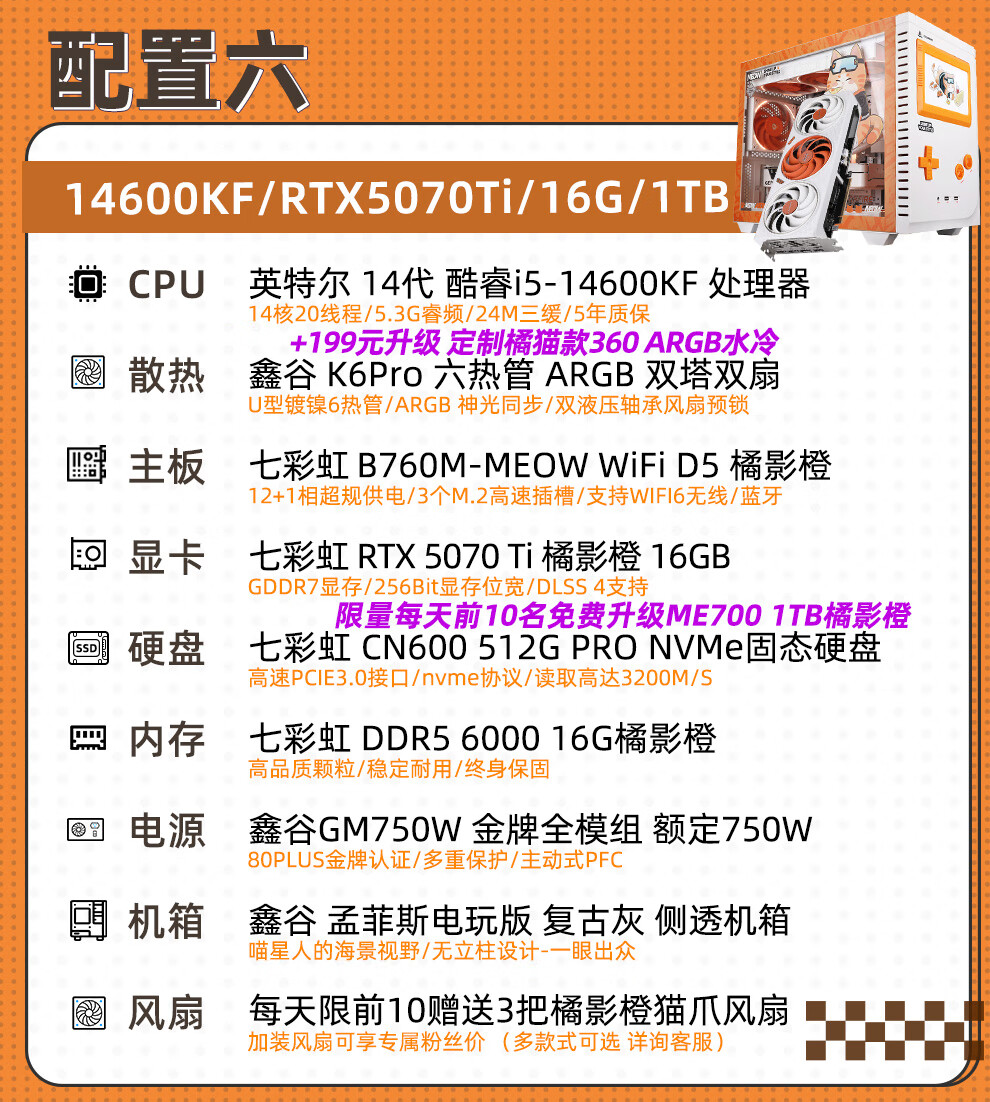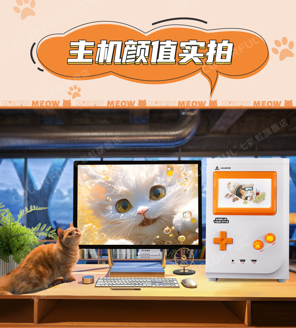 Colorful i5 14600KF/RTX 5060TI/5070TI 5080 graphics card Orange Shadow Orange Orange Cat customized game live broadcast design computer host desktop assembly machine with two 12490F丨16G丨1TB丨5060TI