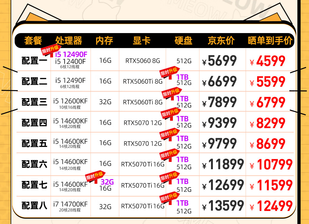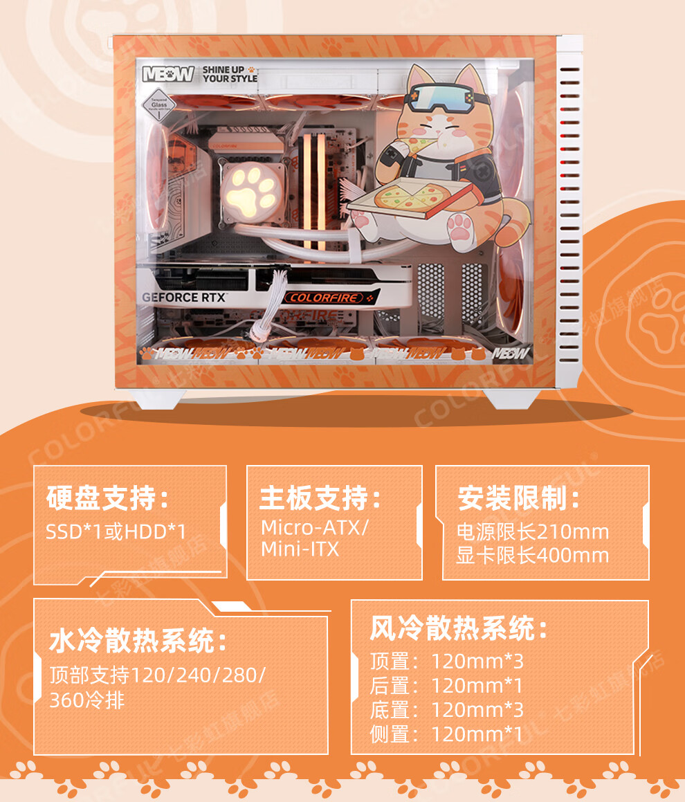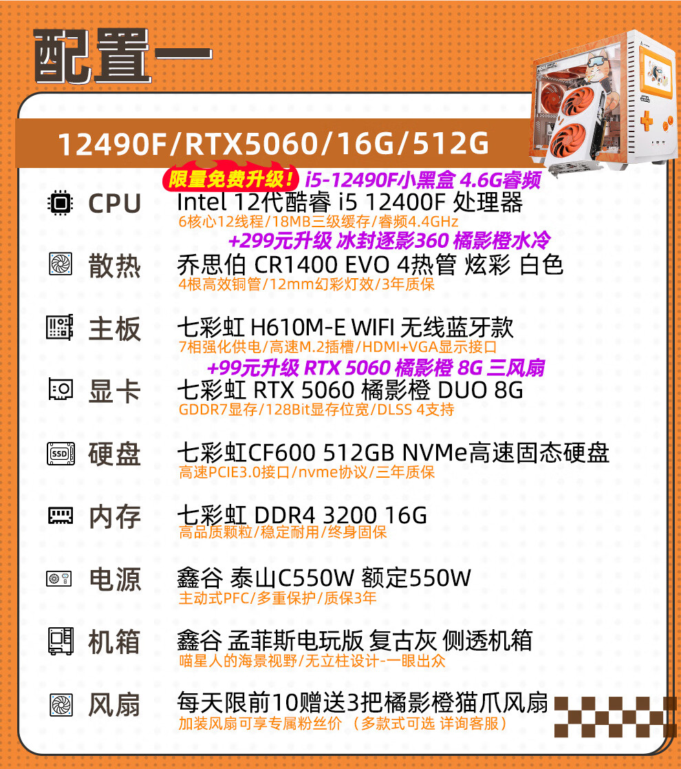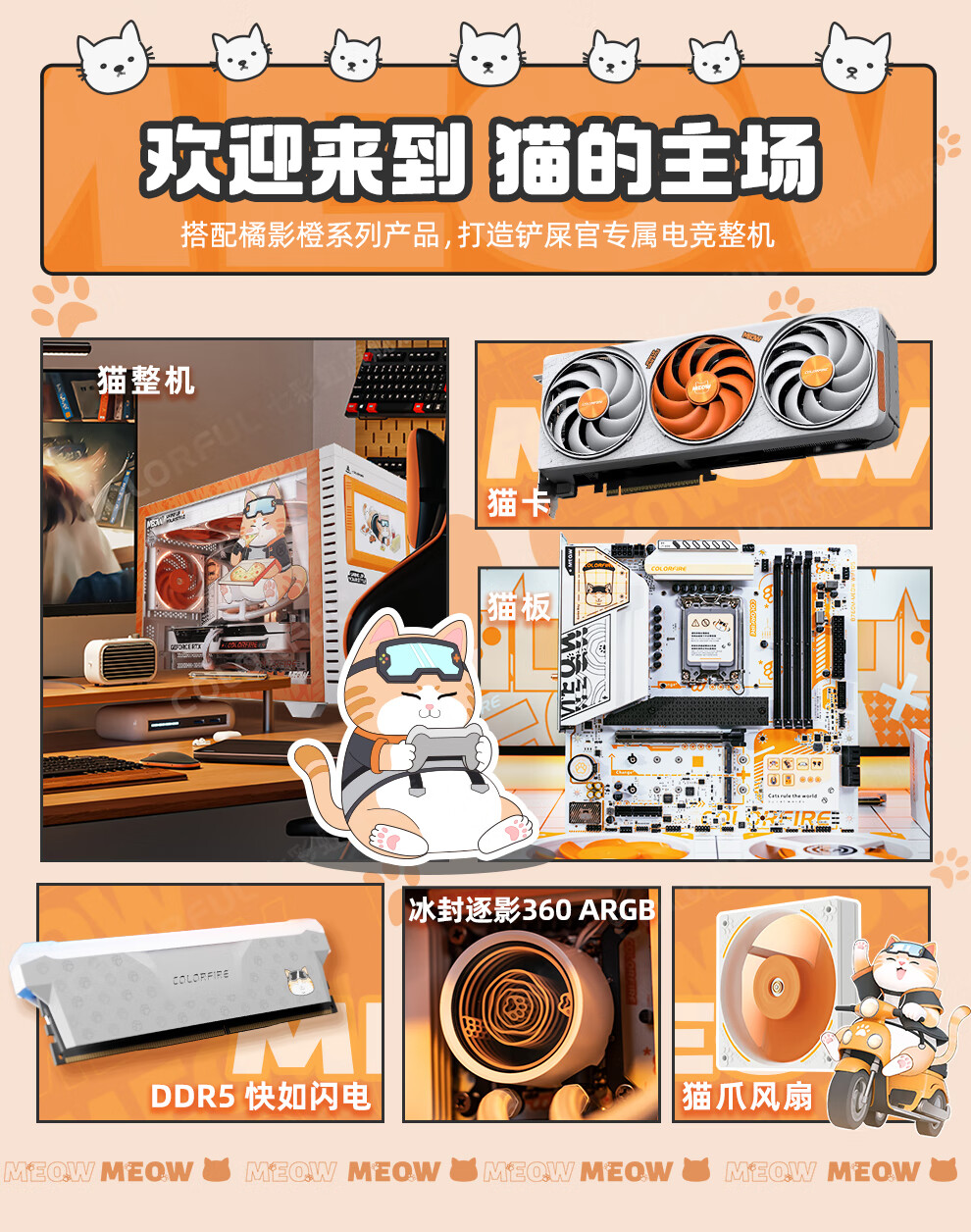 Colorful i5 14600KF/RTX 5060TI/5070TI 5080 graphics card Orange Shadow Orange Orange Cat customized game live broadcast design computer host desktop assembly machine with two 12490F丨16G丨1TB丨5060TI