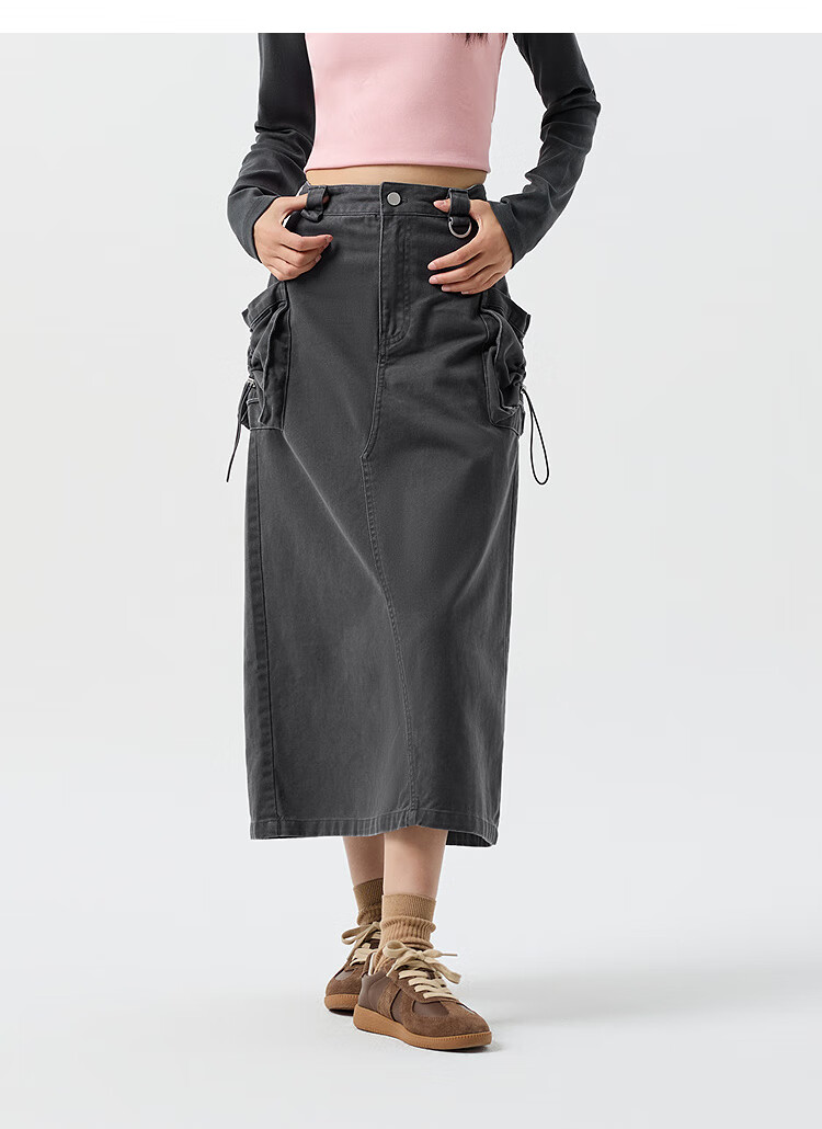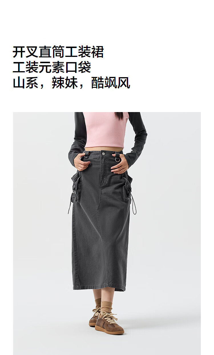 Semir skirt women's slit straight long skirt salt style cool spring street cool sassy hot girl workwear skirt mountain style gray tone 00422 S