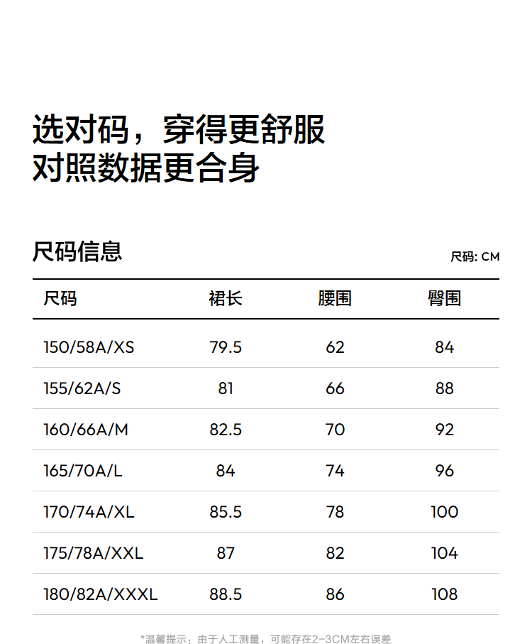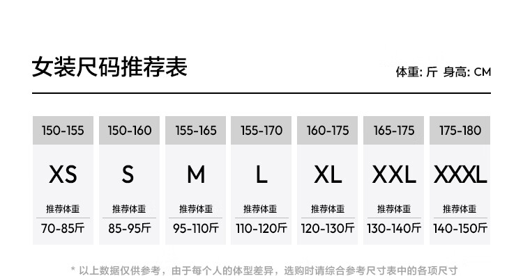 China (cm) 160-165/84-86 165-170 / 88-90 167-172 / 92-96 168-173 / 98-102 170-176 / 106-110