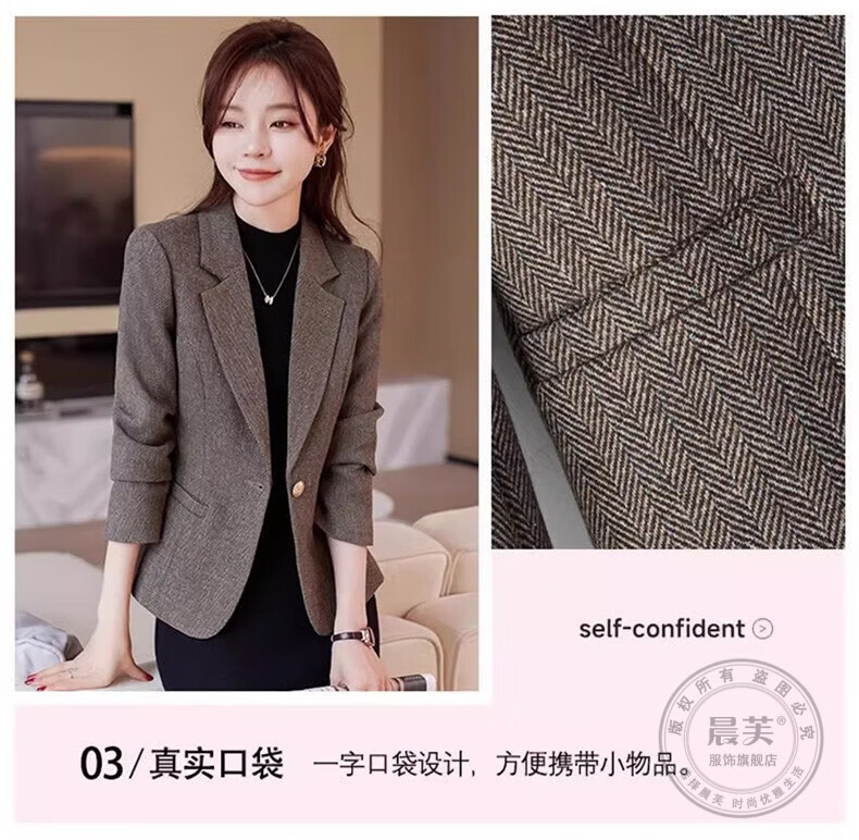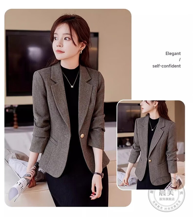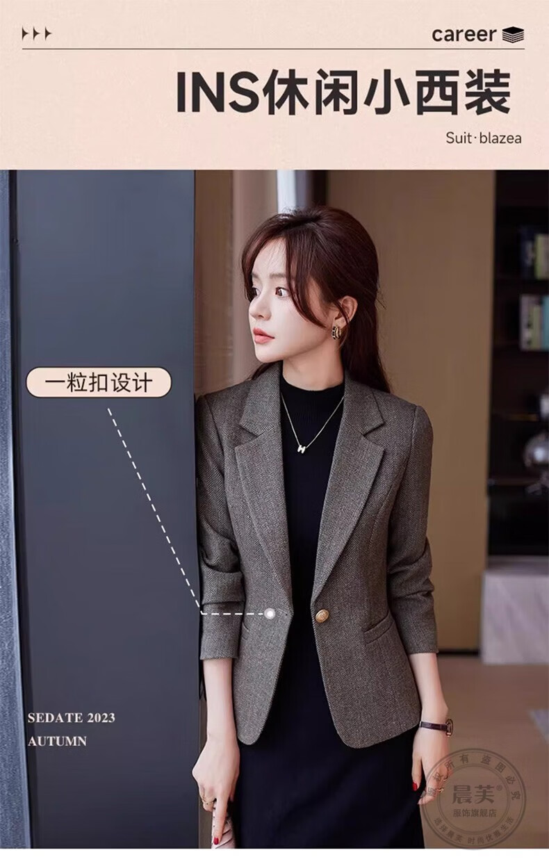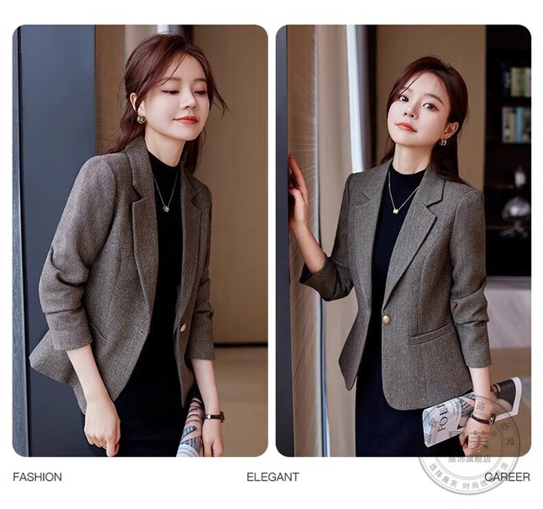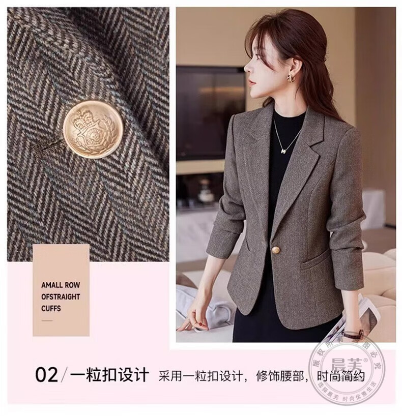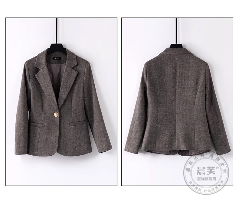 Chenfu small blazer women's Korean style fashion casual short style slim temperament suit versatile work clothes top single piece regular gray suit 2XL recommended 120-130Jin Jin equals 0.5 kg