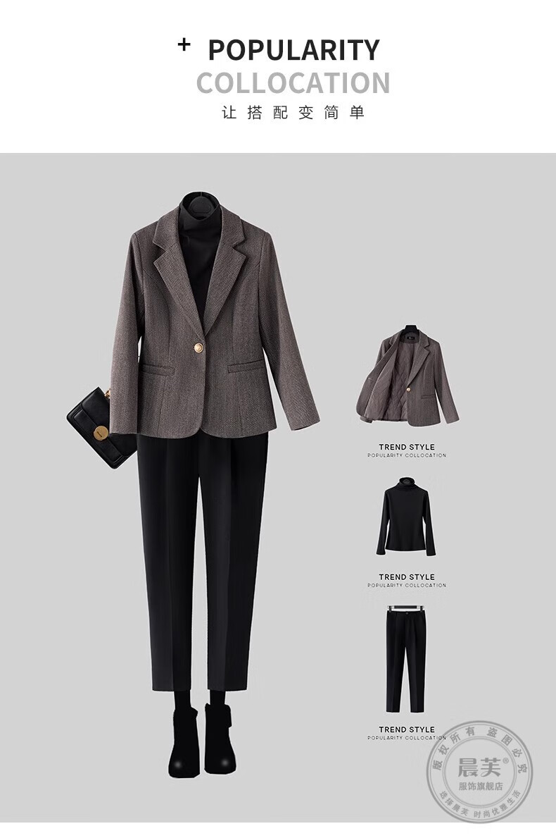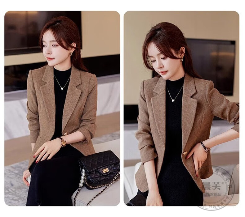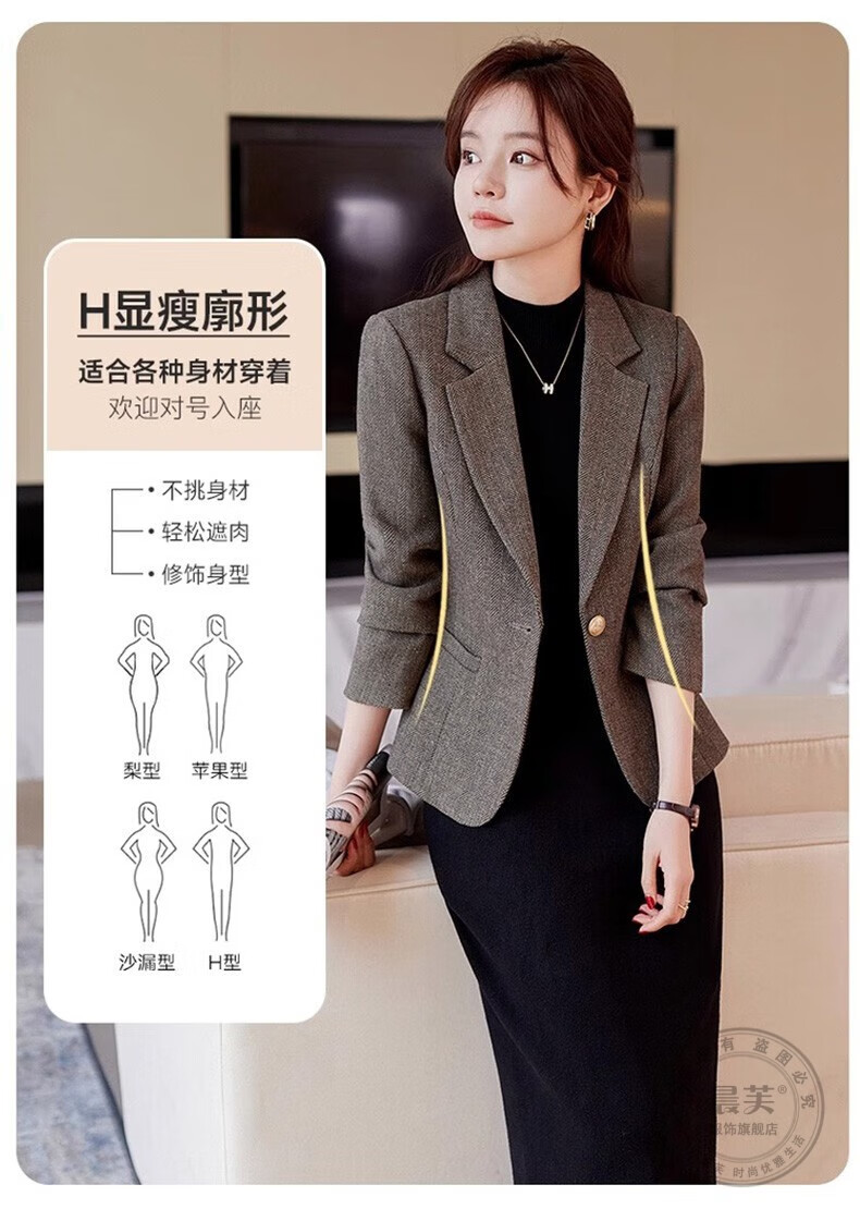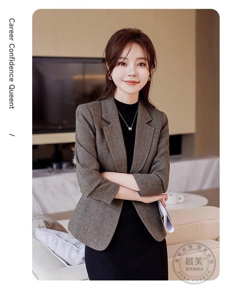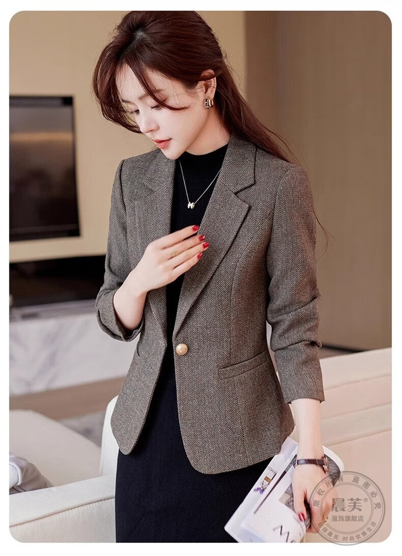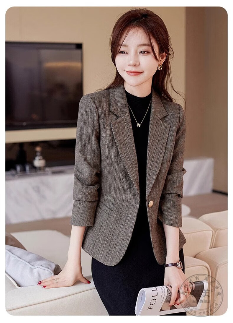 Chenfu small blazer women's Korean style fashion casual short style slim temperament suit versatile work clothes top single piece regular gray suit 2XL recommended 120-130Jin Jin equals 0.5 kg