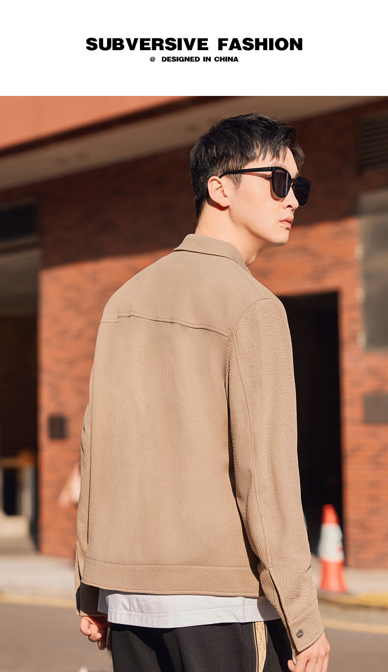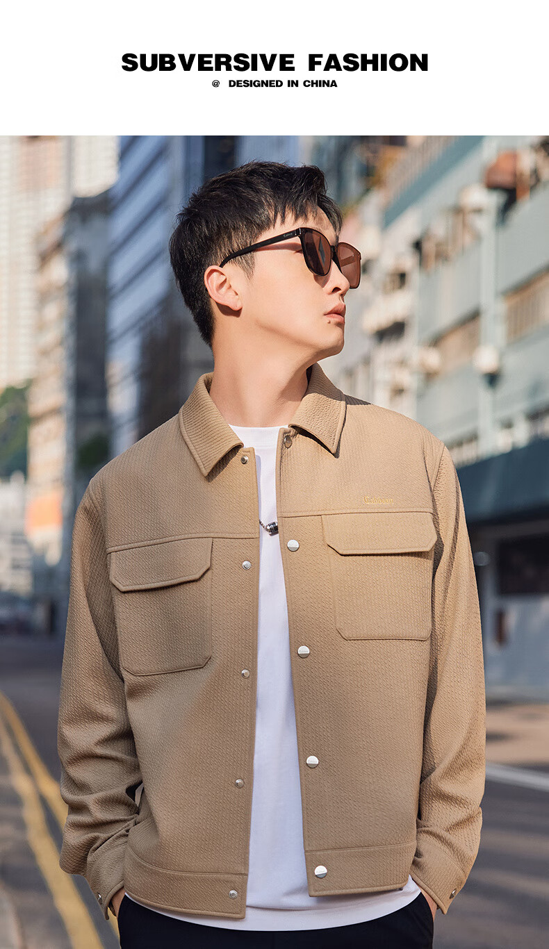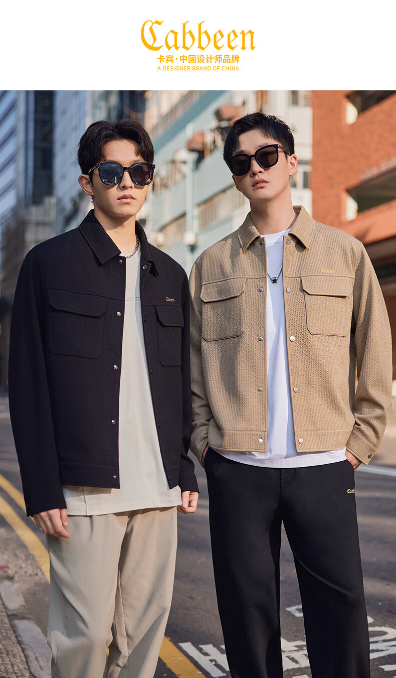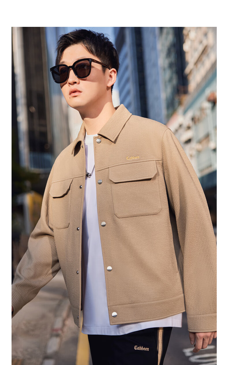 CABBEEN workwear texture jacket men's 2024 spring new loose casual street black trendy brand jacket khaki 35 L /175/50