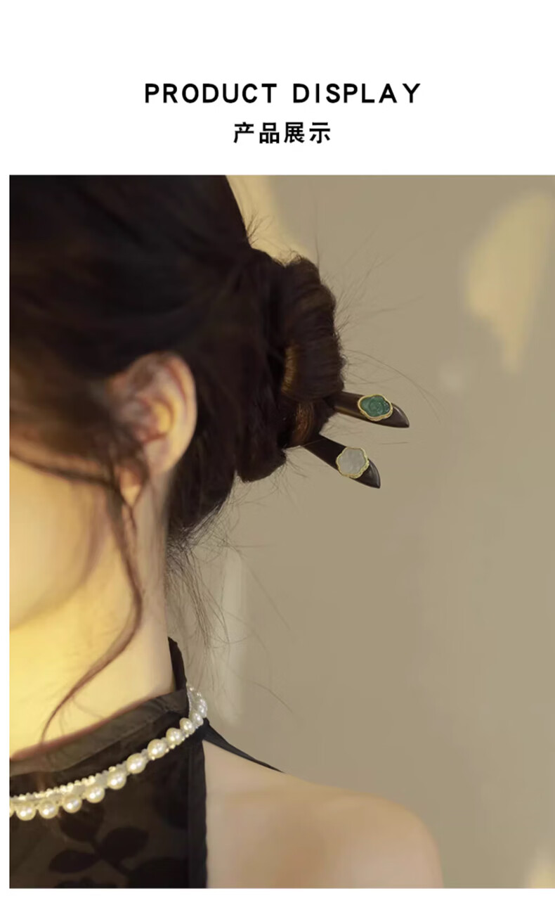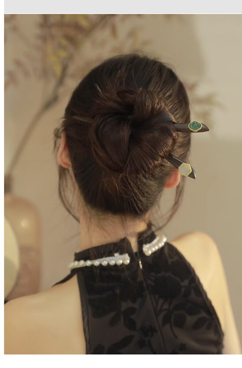LANSILL simple new Chinese style black sandalwood hairpin for women ancient style high-end daily hairpin women's cheongsam birthday gift B8Y306 sandalwood green Ruyi hairpin exquisite gift box