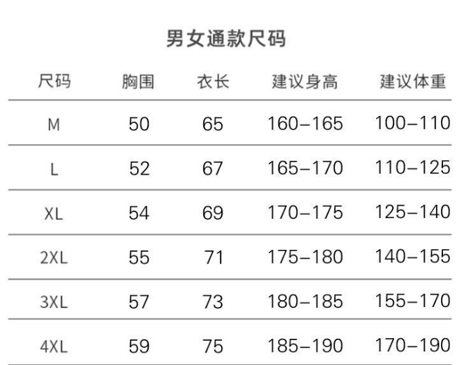 China (cm) 160-165/84-86 165-170 / 88-90 167-172 / 92-96 168-173 / 98-102 170-176 / 106-110