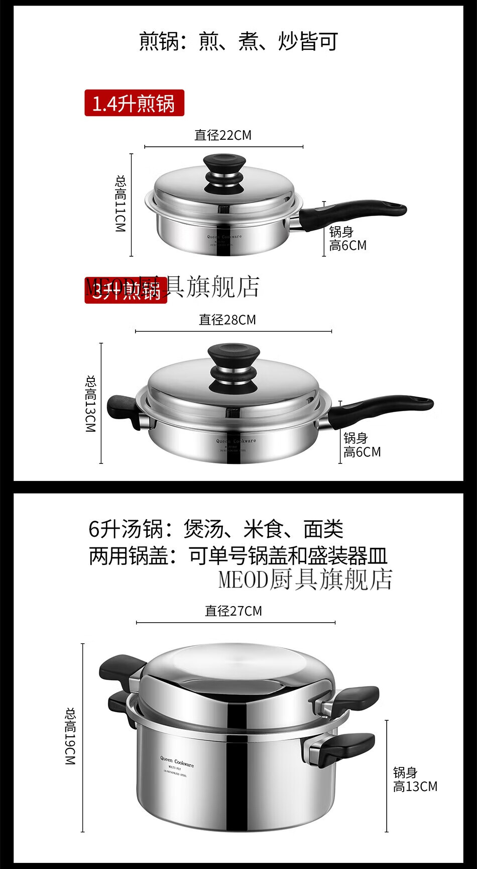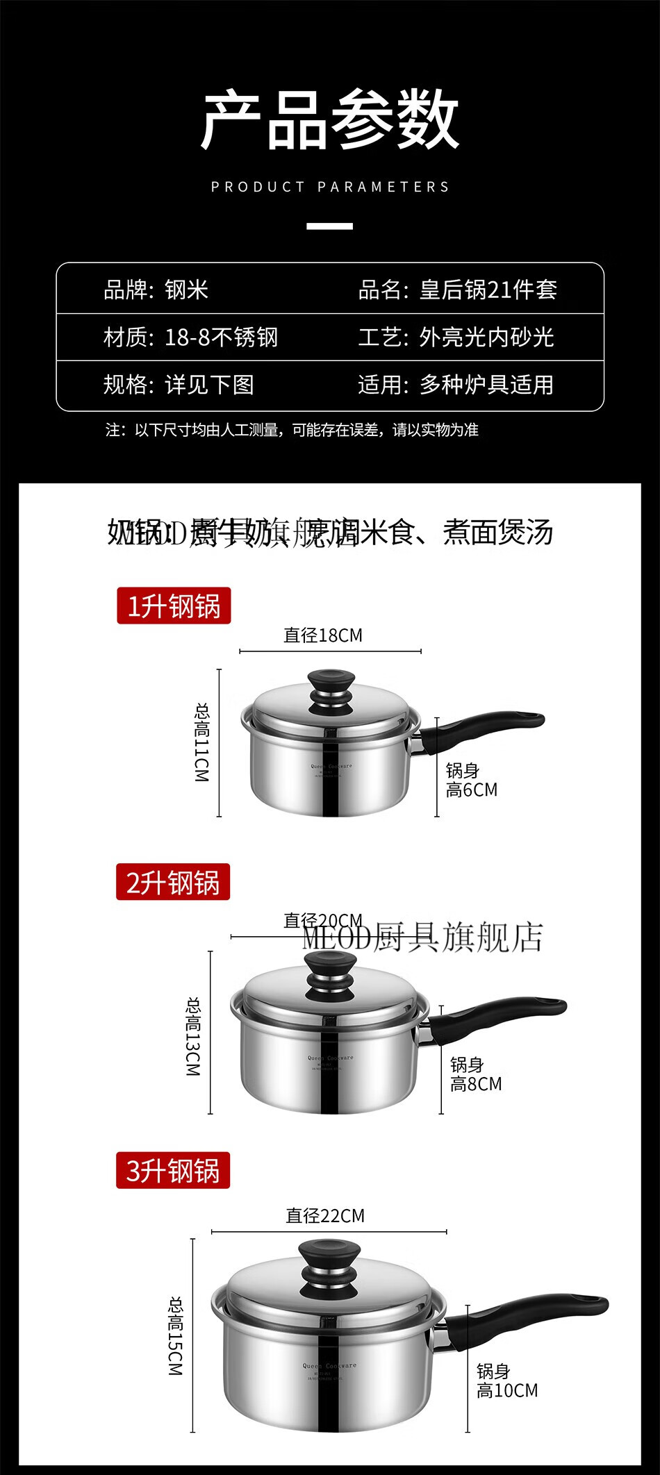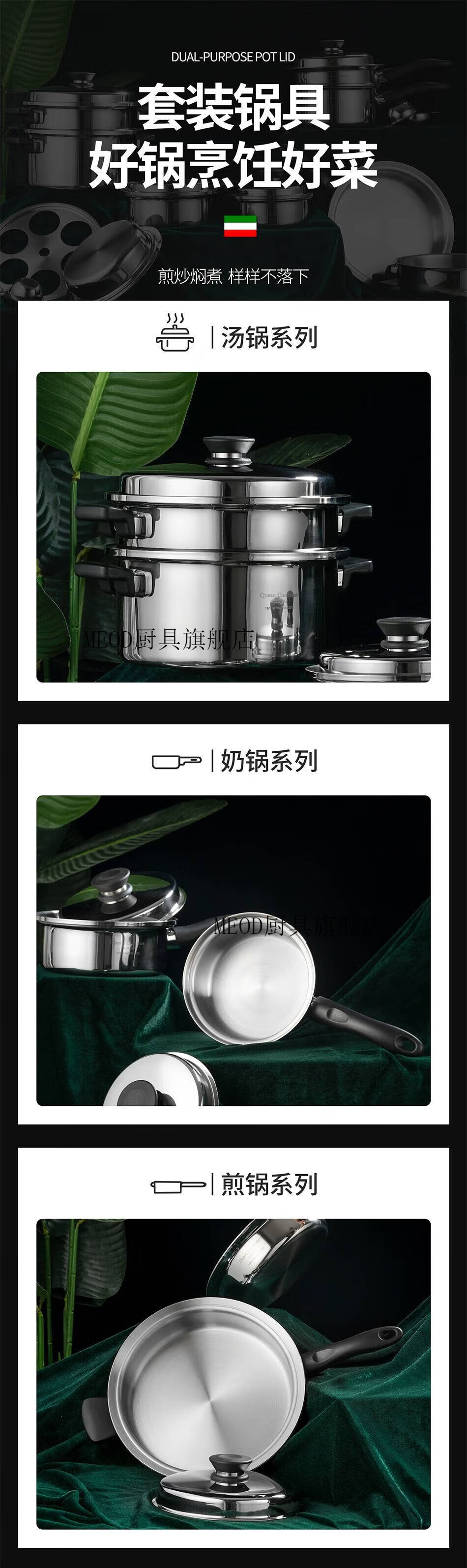 MEOD Anli Queen Pot Set Queen Pot 21-piece Frying Pan Wok Wok Queen Gold Pot Set 3-liter Milk Pot