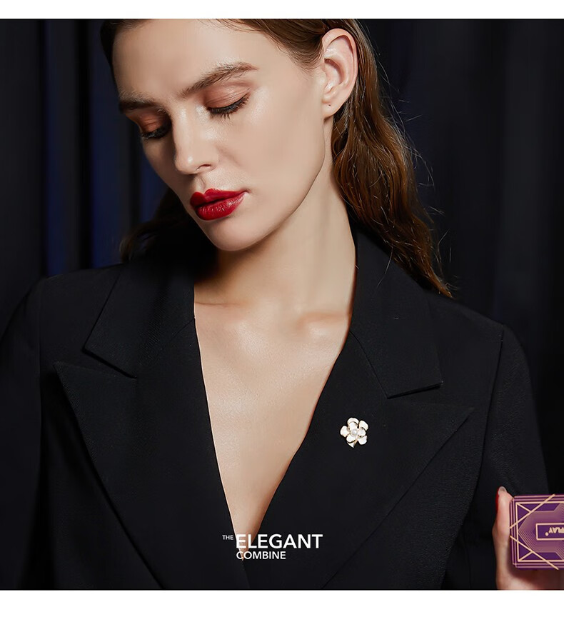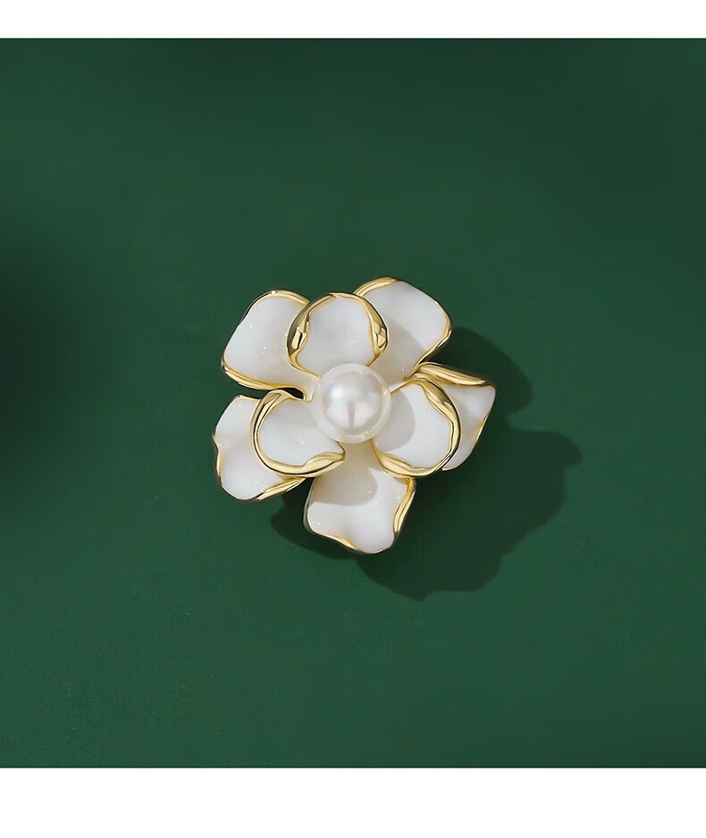 Jay camellia brooch, high-end female corsage, collar pin, clothing accessories, birthday gift for mother-in-law, elders, brand gift box, white (Beijing warehouse/delivered nearby)