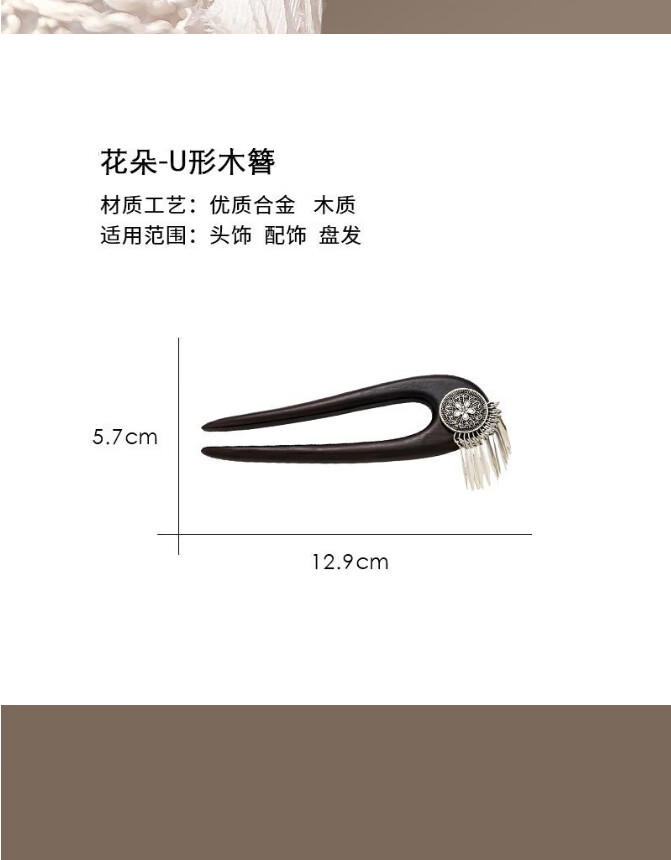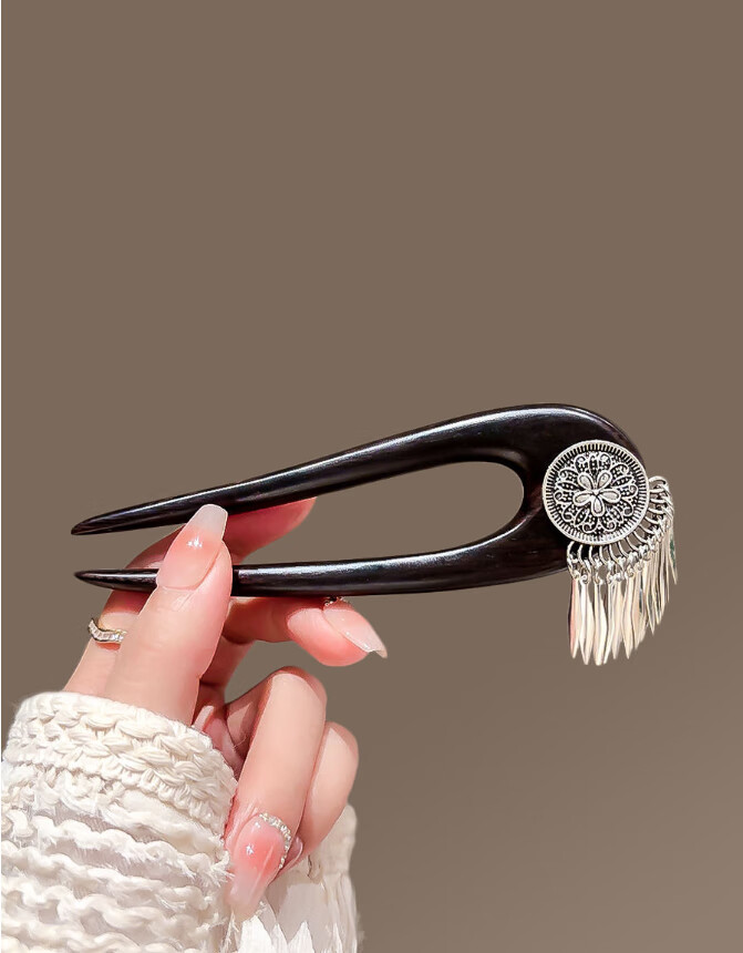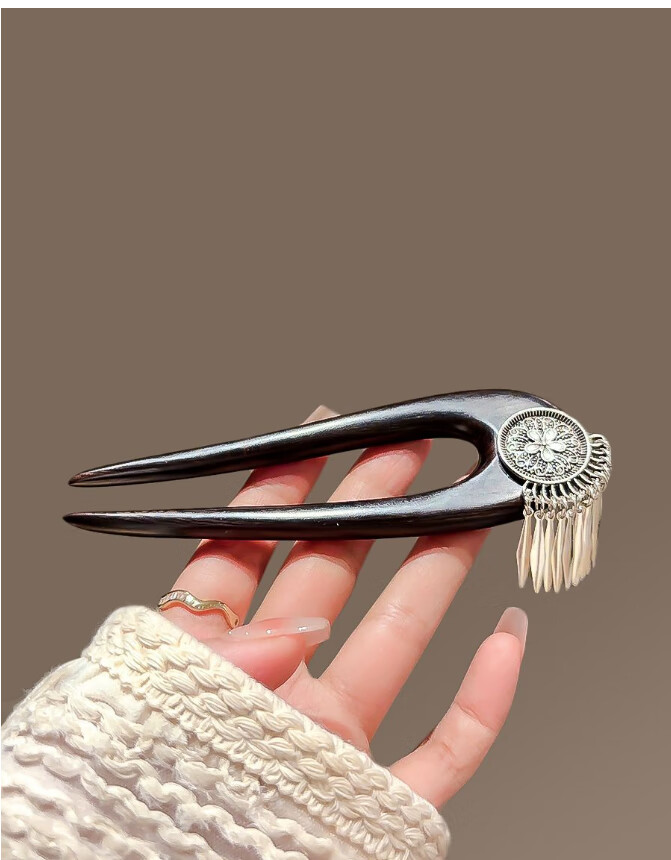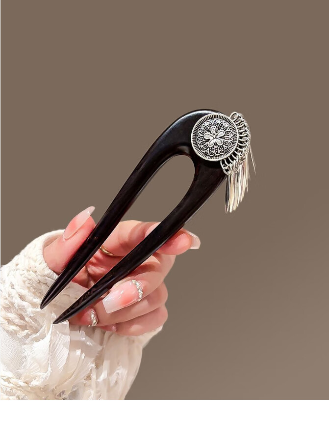 Bai Shilin's new Chinese style flower double inserted U-shaped hairpin for women, antique black sandalwood tassel hairpin 520 Valentine's Day gift for girlfriend, hairpin + exquisite gift box