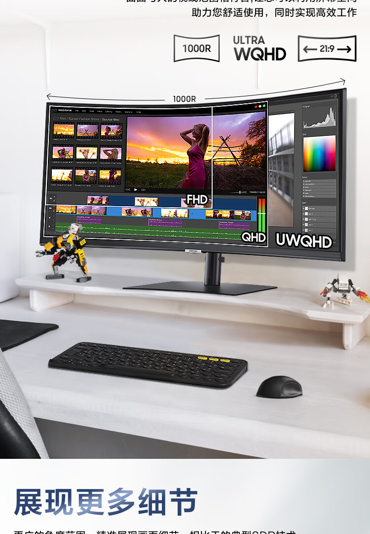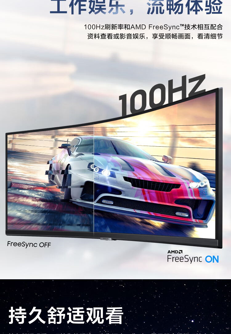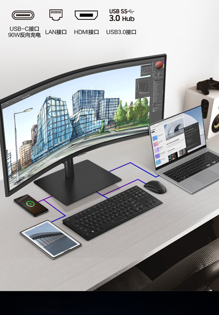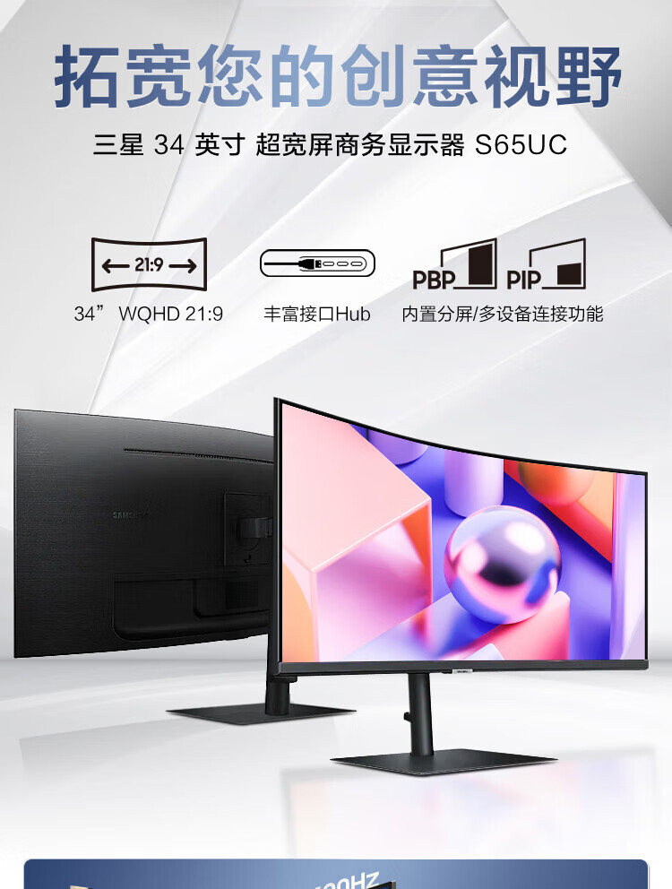 Samsung (SAMSUNG) 34-inch curved quasi 4K fish screen 100Hz e-sports game audio TypeC KVM ultra-wide split screen desktop notebook external 2K office computer monitor LS34C650UACXXF official direct flagship store