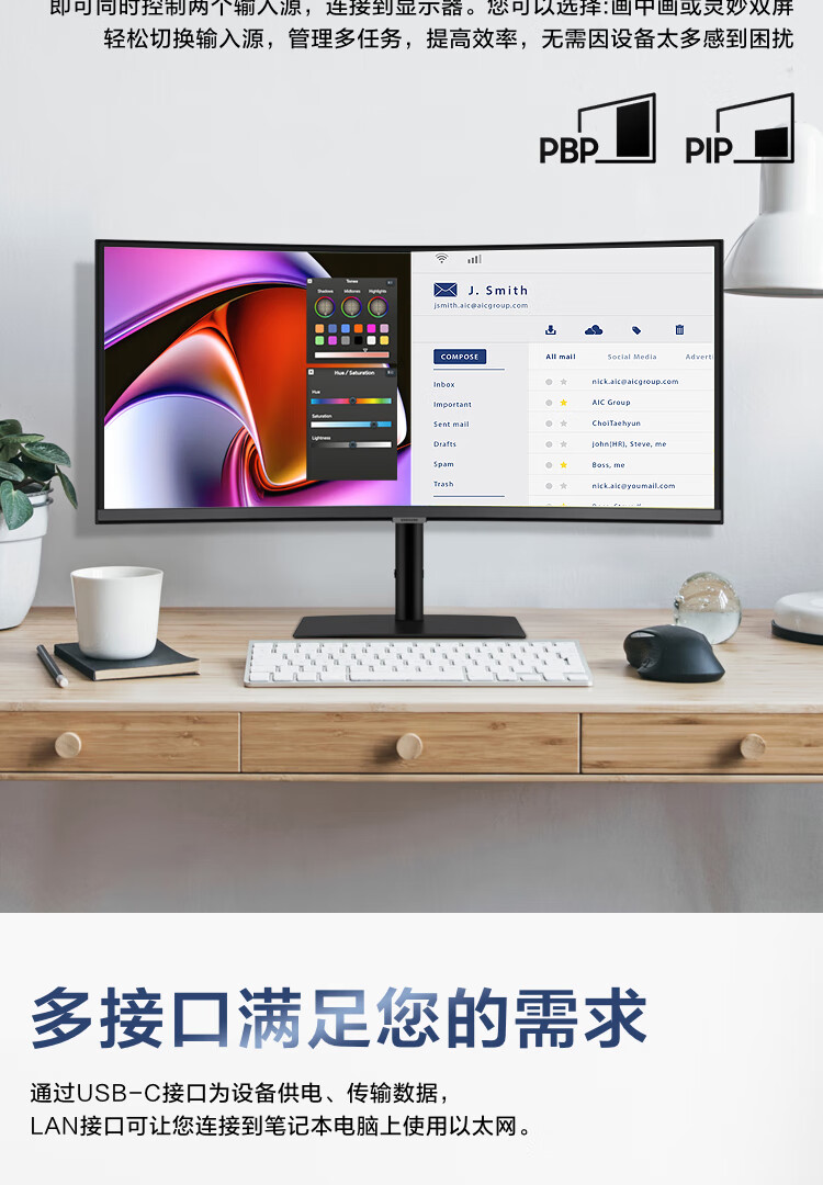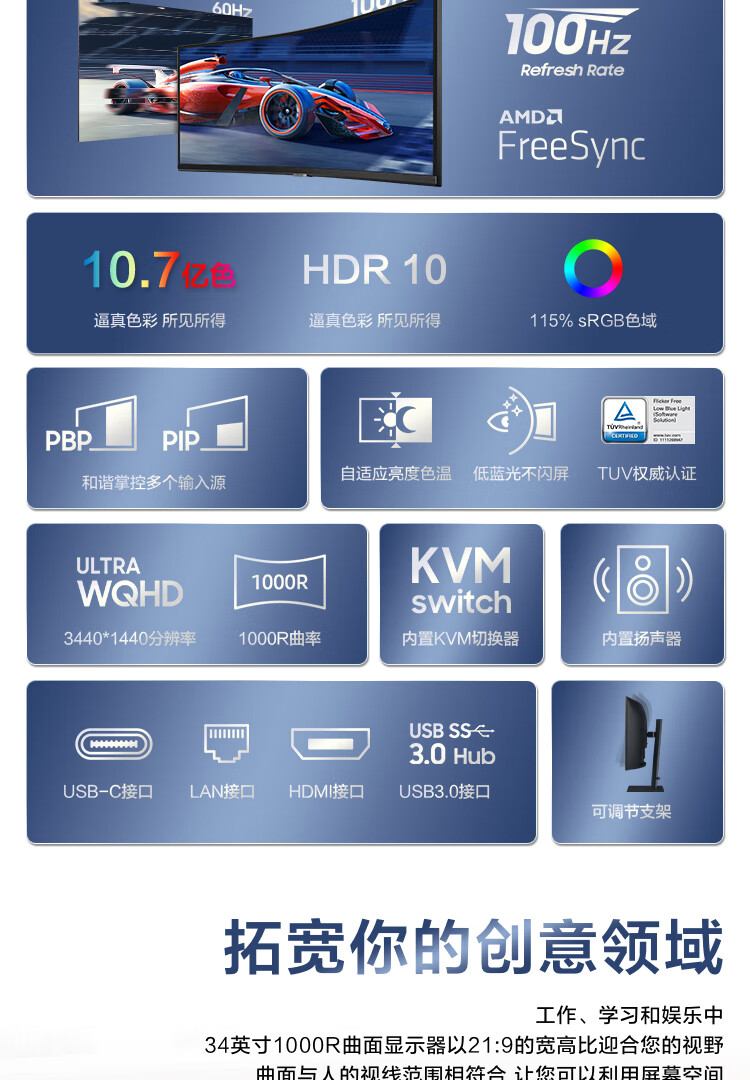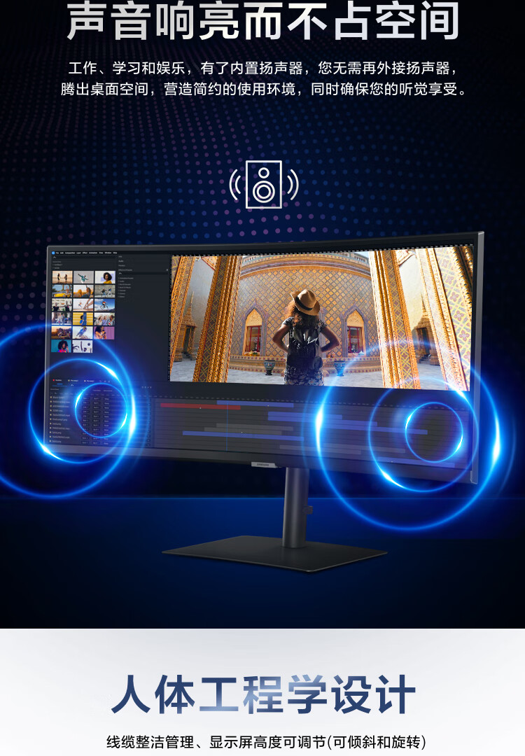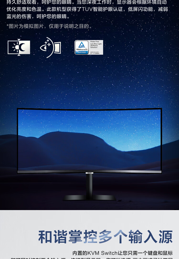 Samsung (SAMSUNG) 34-inch curved quasi 4K fish screen 100Hz e-sports game audio TypeC KVM ultra-wide split screen desktop notebook external 2K office computer monitor LS34C650UACXXF official direct flagship store