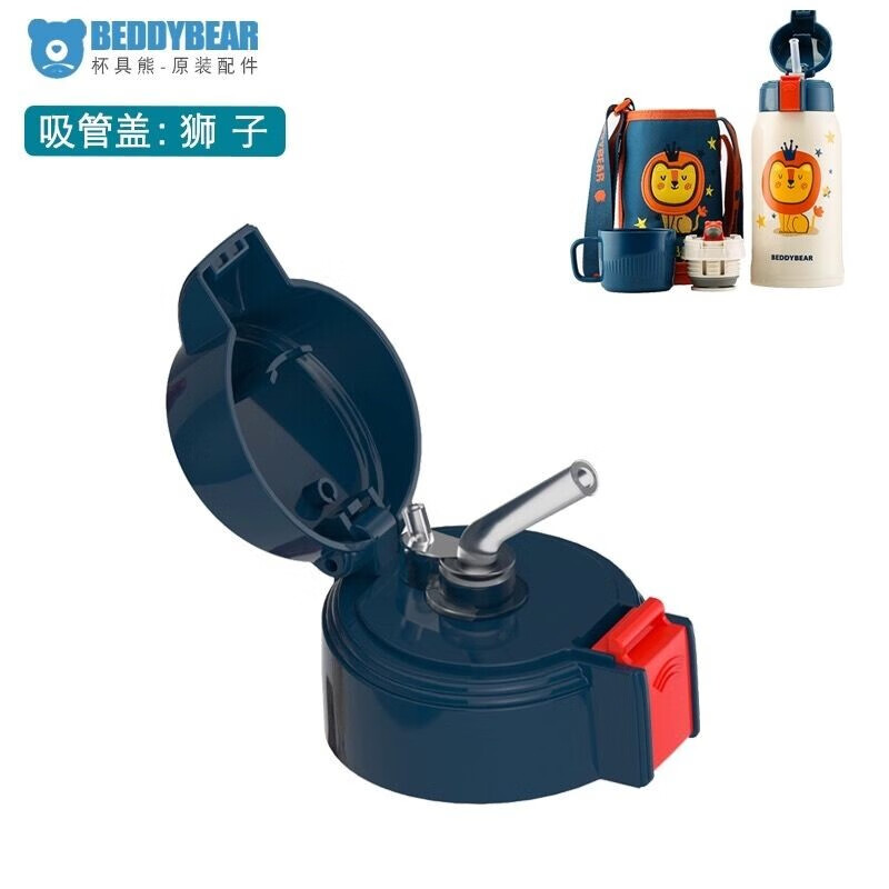Cup Bear 3D retro children's thermos cup original accessories cup lid, suction nozzle, straw cup set full set of accessories 3D Lion King original straw lid with straw cup brush