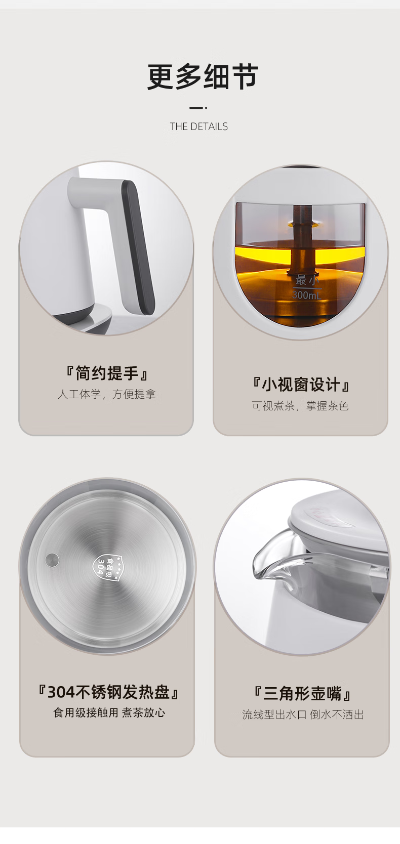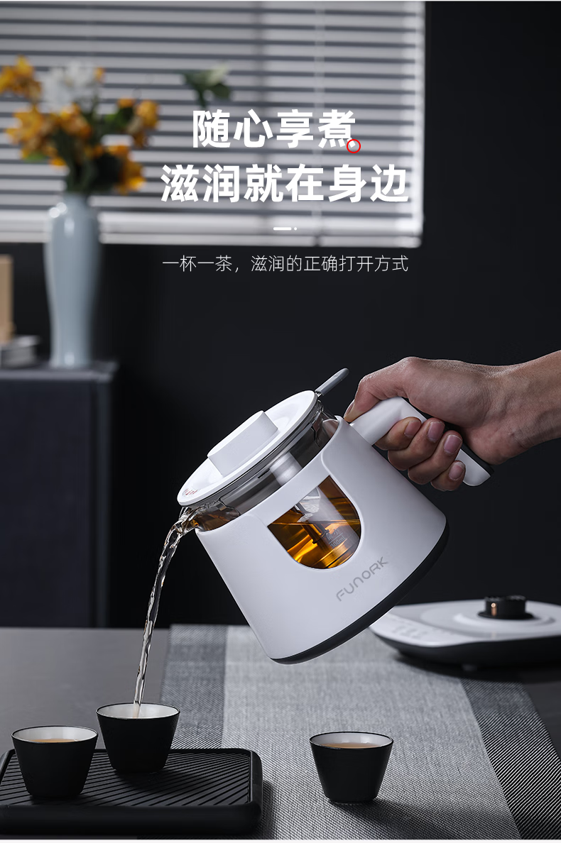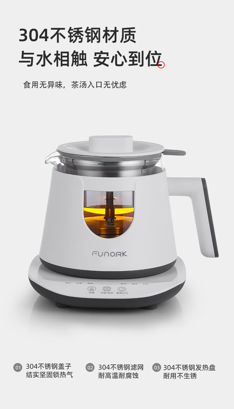 FUNORK tea kettle, steam spray health kettle, insulated black tea steaming tea kettle, office tea and water all-in-one smart model (rubber-coated to prevent scalding) 0.8L