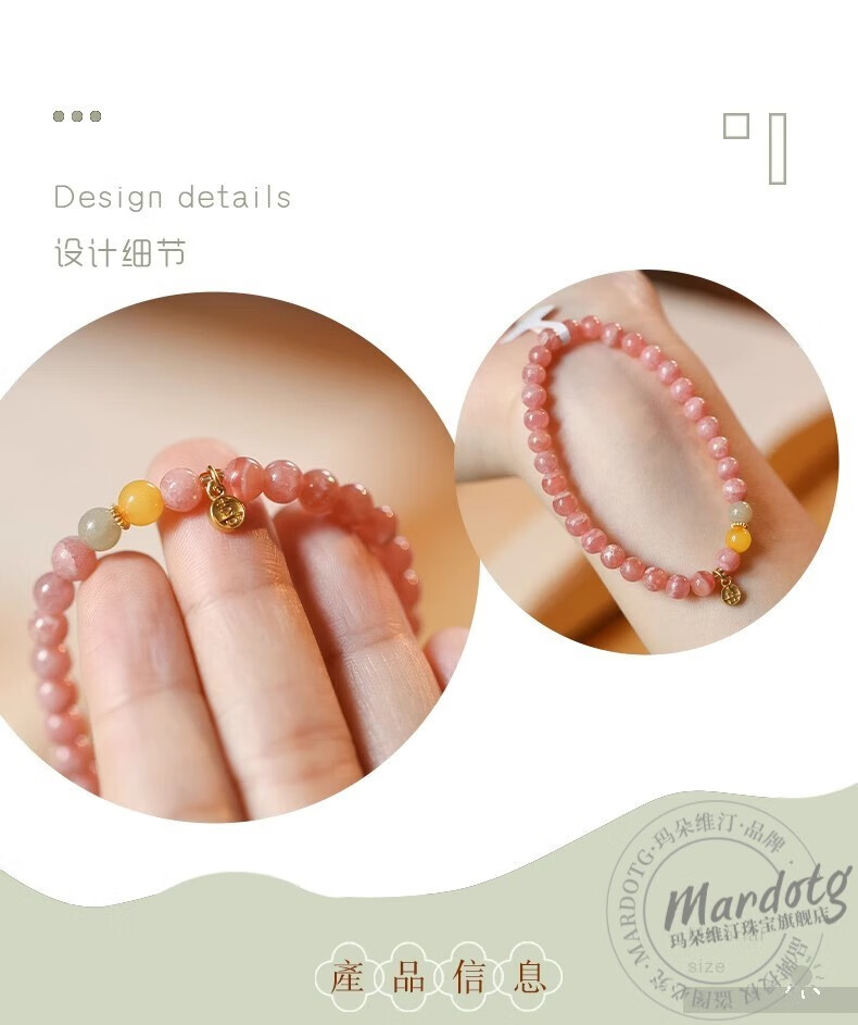 MARDOTG rhodolite bracelet for women, pink crystal bracelet, versatile and exquisite, gift for girlfriend, rhodolite bracelet - 6mm bead diameter