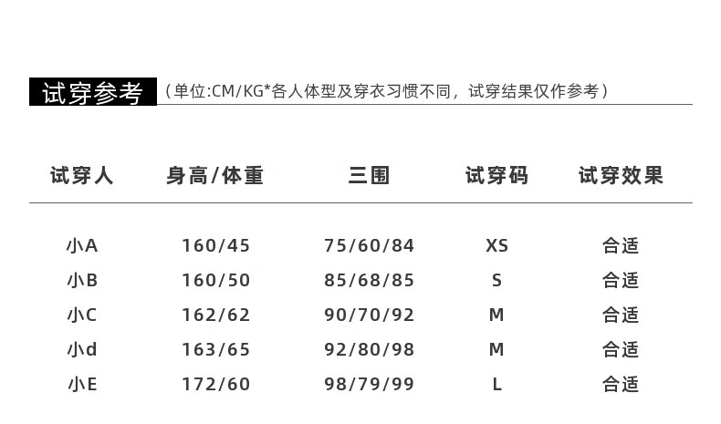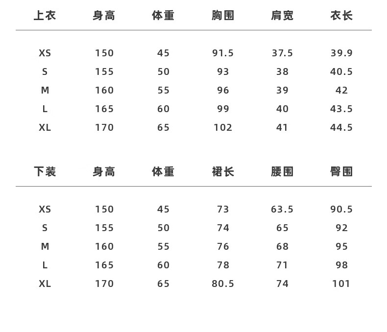 China (cm) 160-165/84-86 165-170 / 88-90 167-172 / 92-96 168-173 / 98-102 170-176 / 106-110