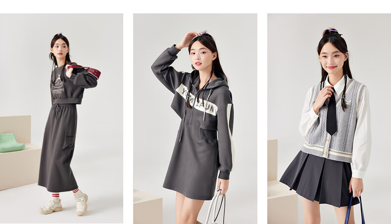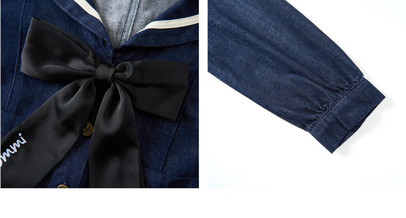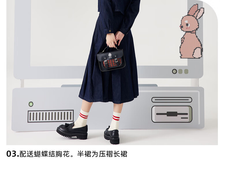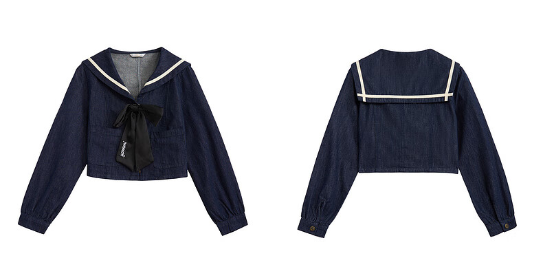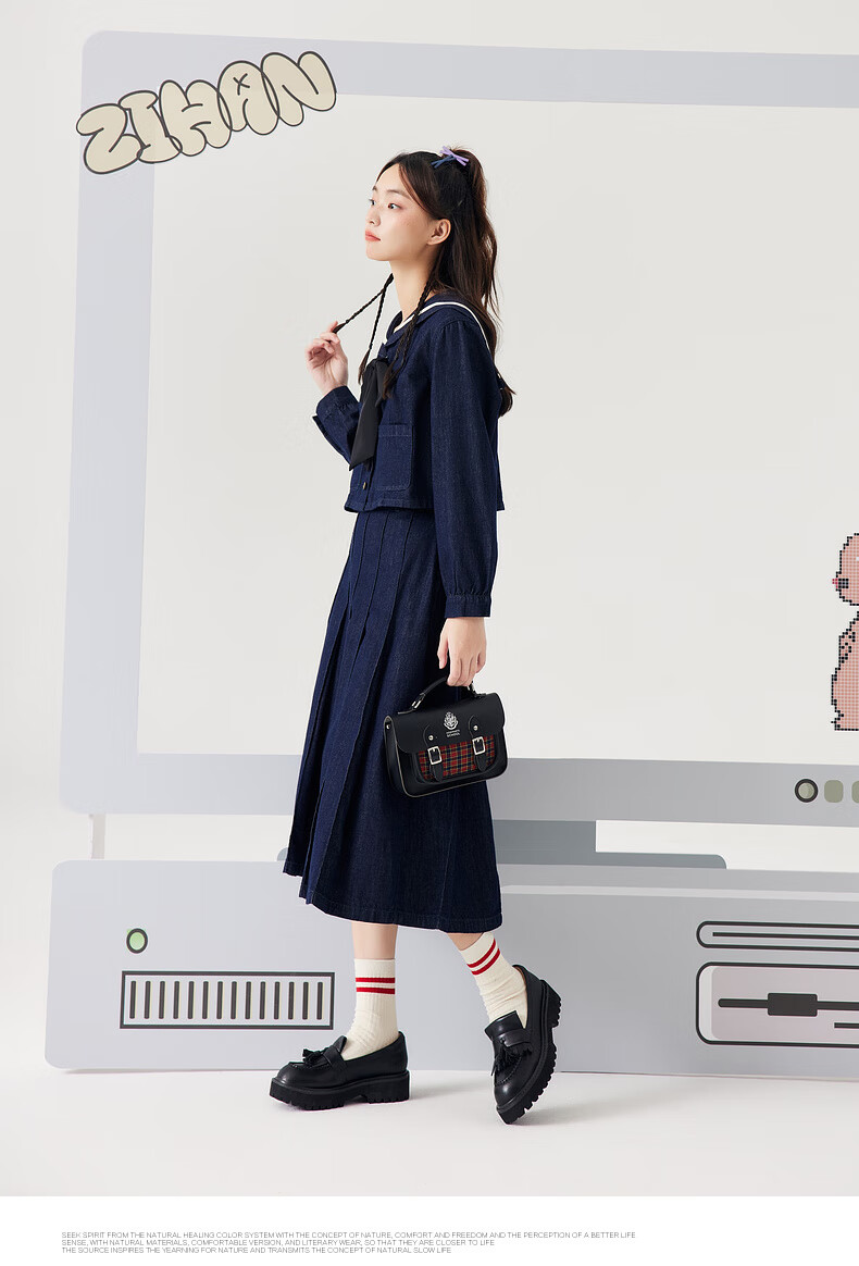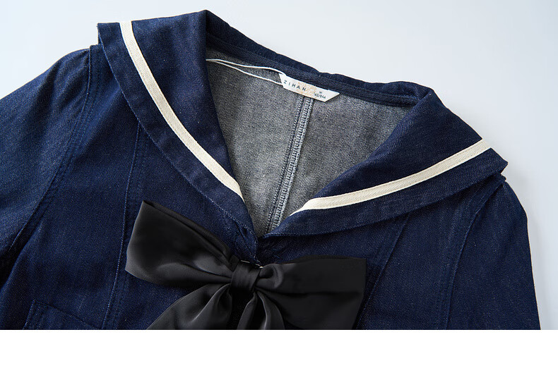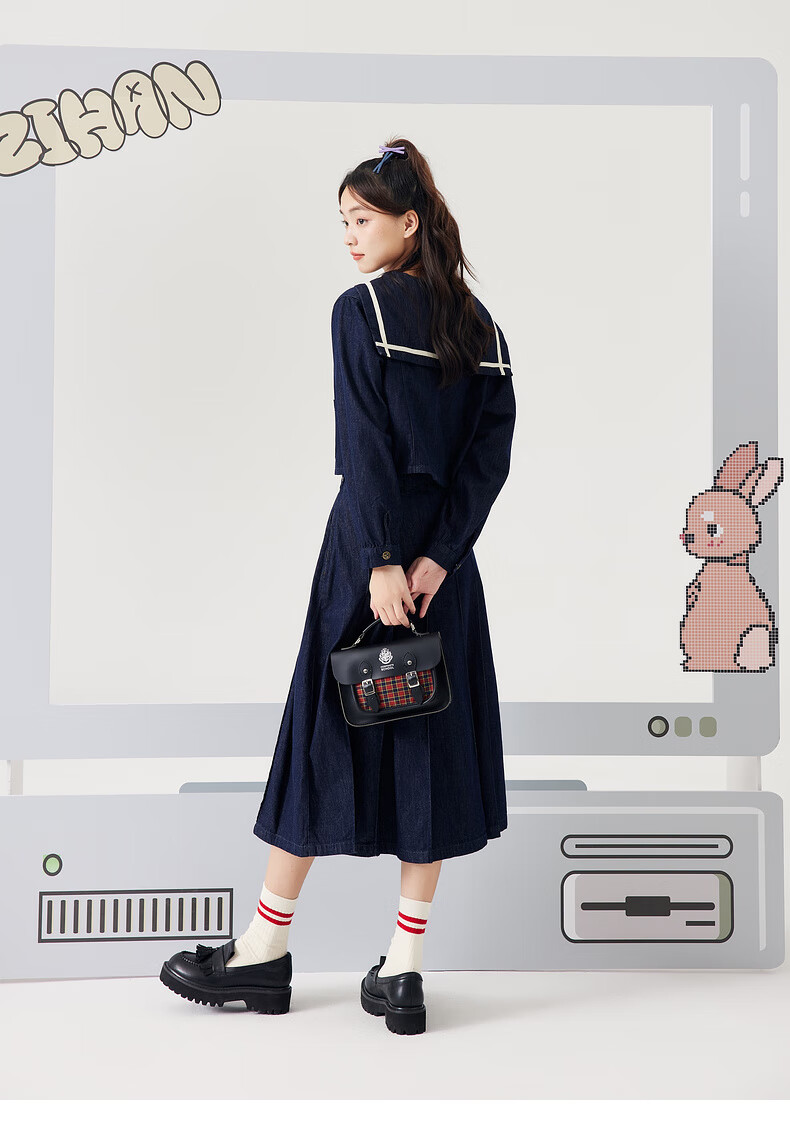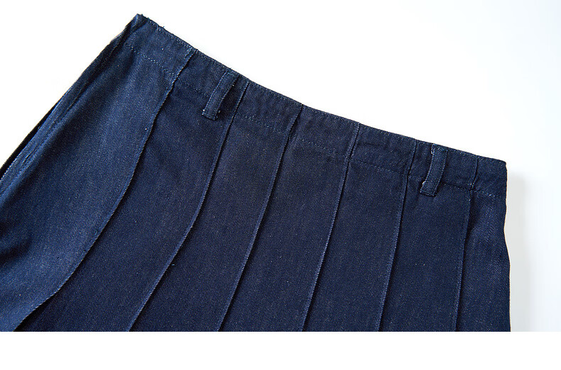 Zihan (ZIHAN) Zihan navy collar top + pleated high waist mid-length skirt for women spring college style fashion suit denim blue S