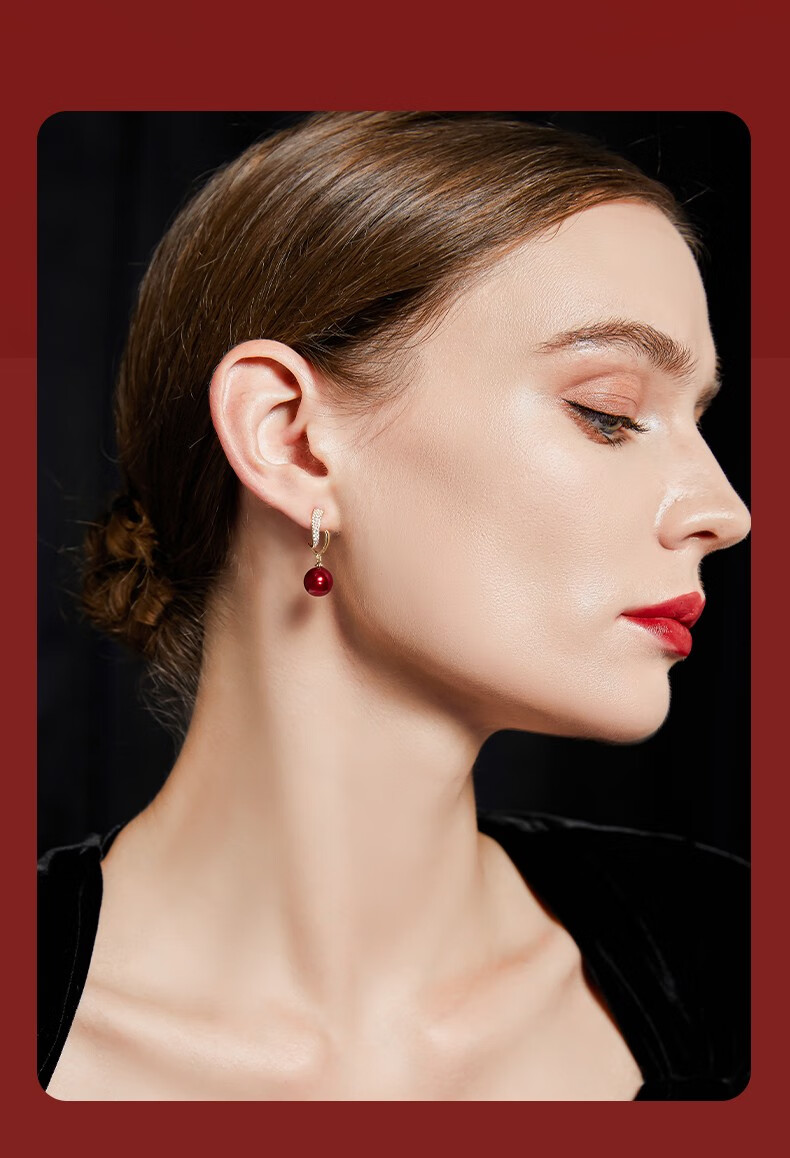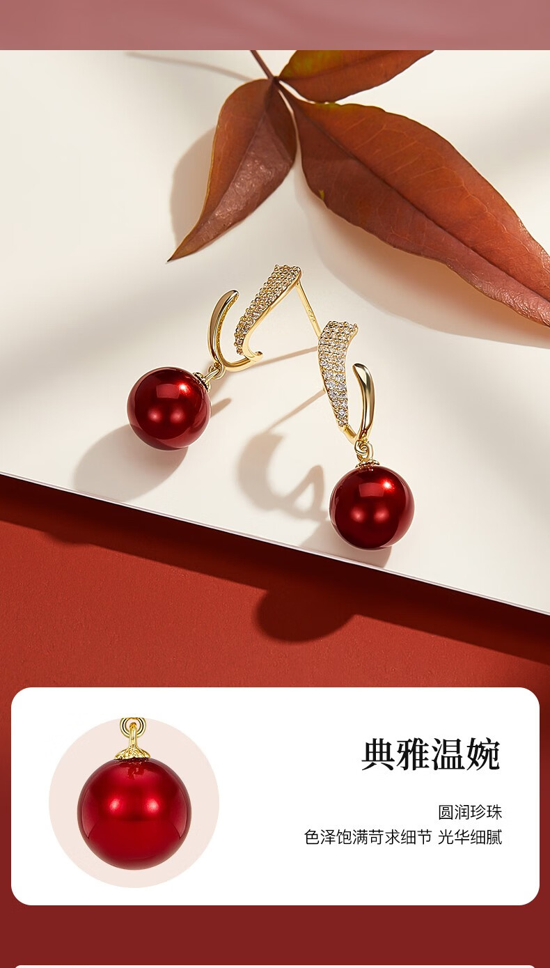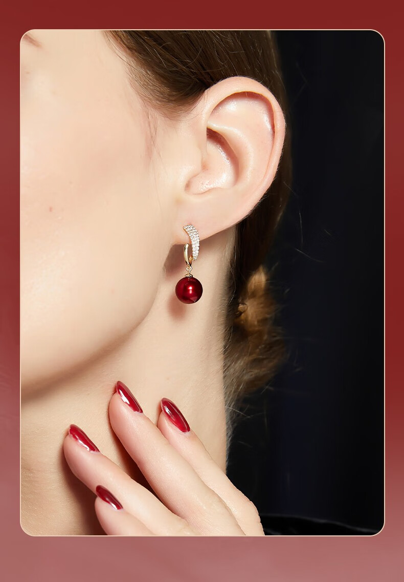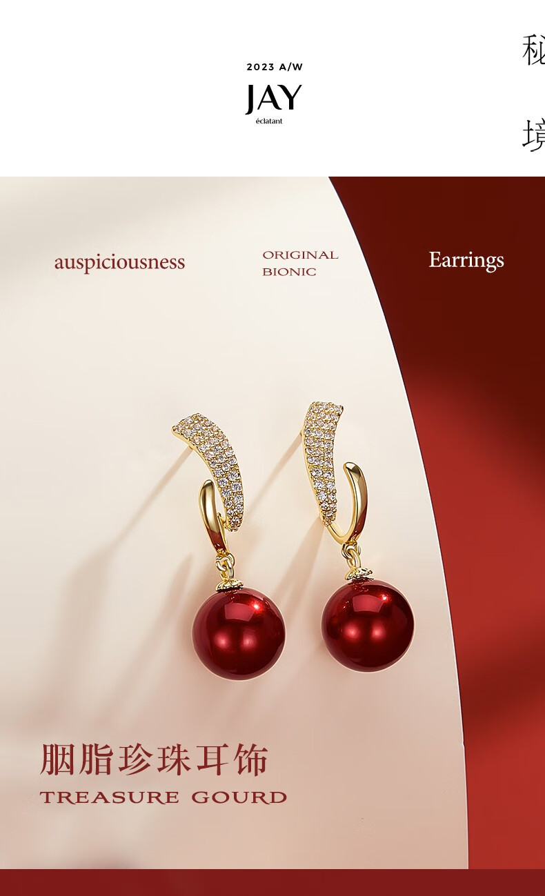 Jay imitation pearl earrings red earrings women's autumn and winter New Year earrings as a birthday gift for girlfriend