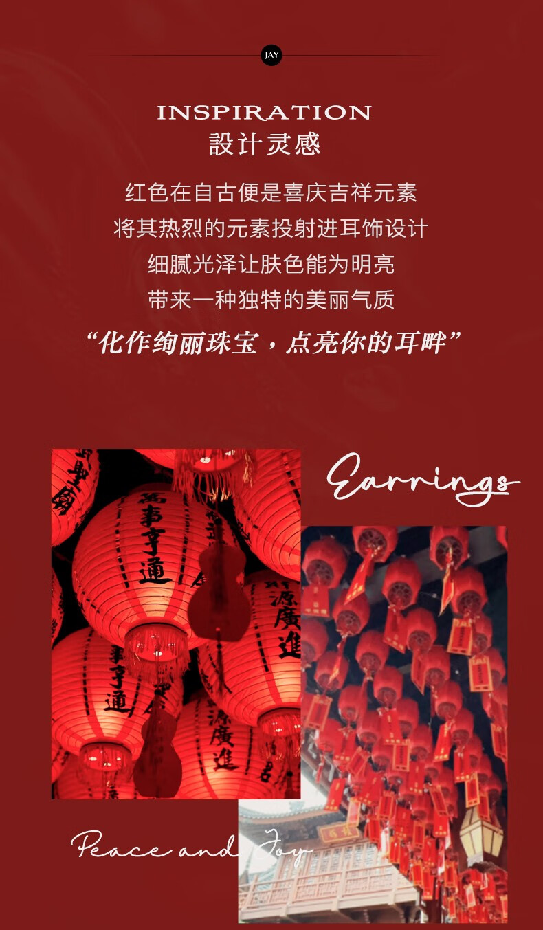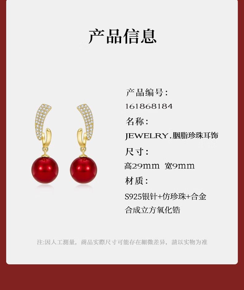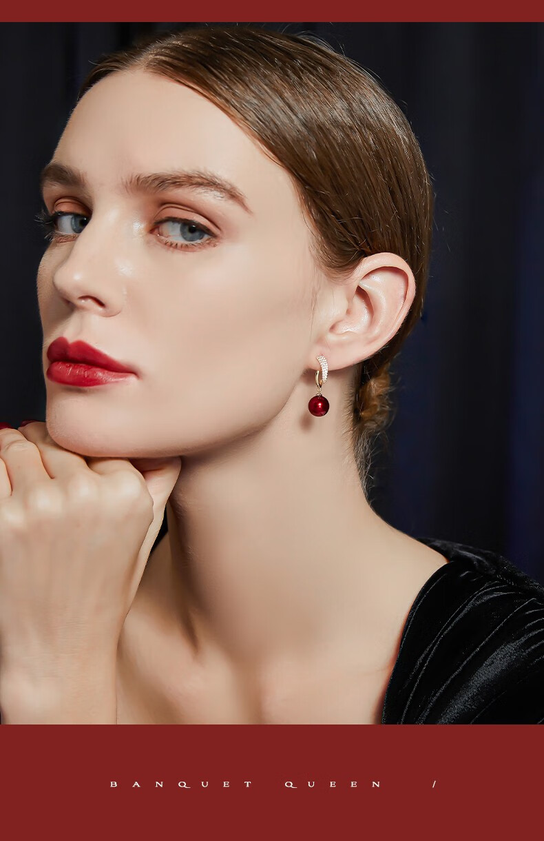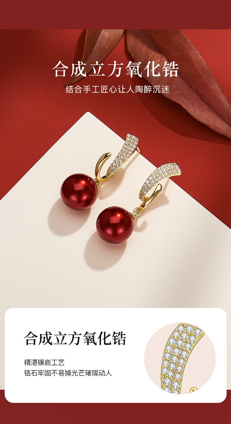 Jay imitation pearl earrings red earrings women's autumn and winter New Year earrings as a birthday gift for girlfriend