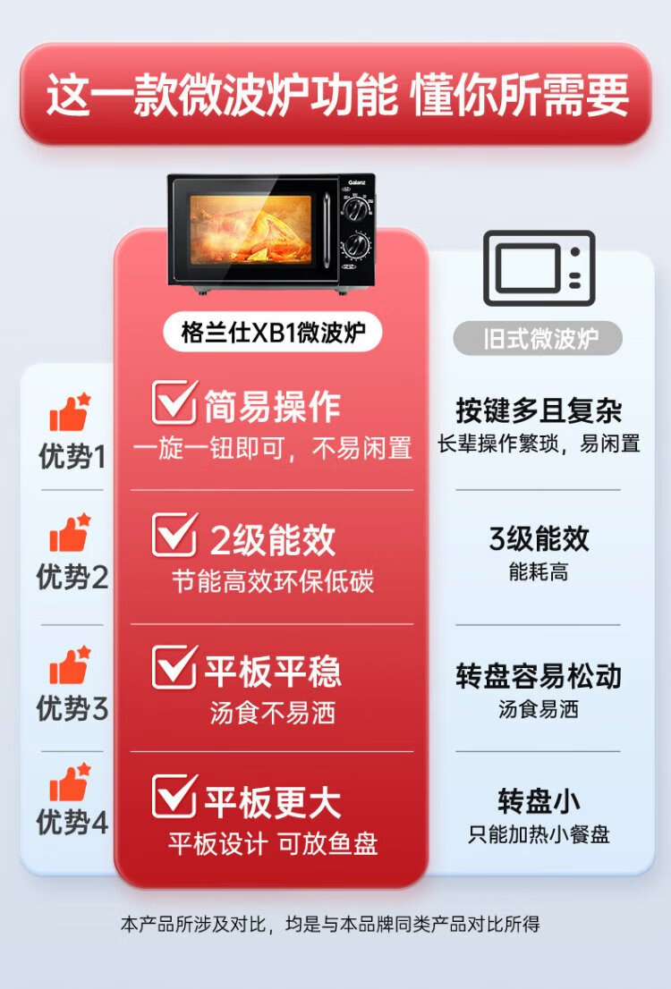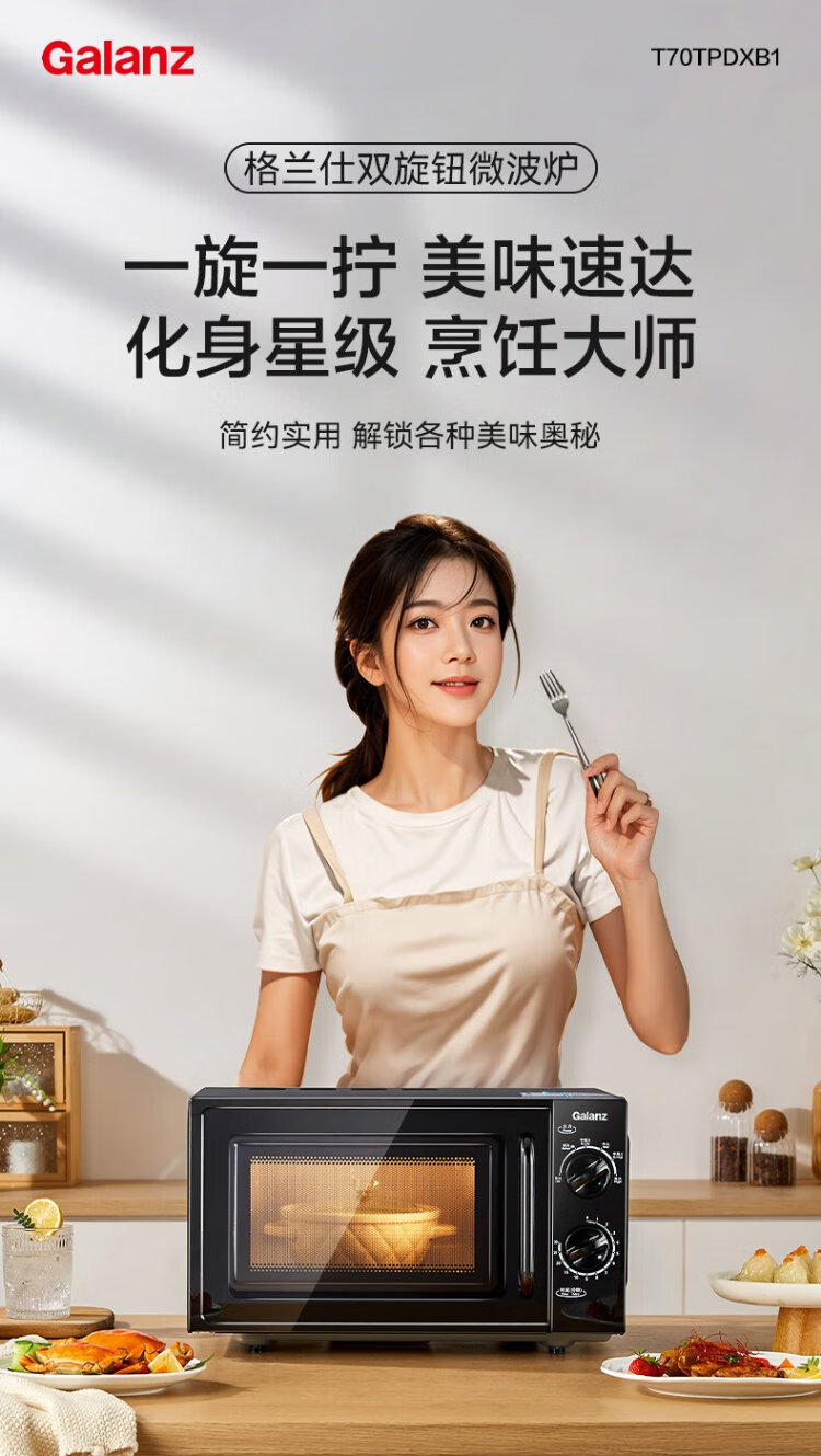 Galanz national subsidy microwave oven for home use 20L capacity flat plate uniform heating convenient operation small easy to clean microwave oven XB1 double knob operation flat plate heating microwave oven