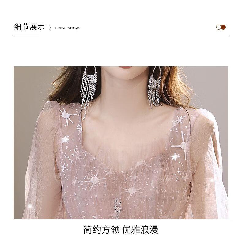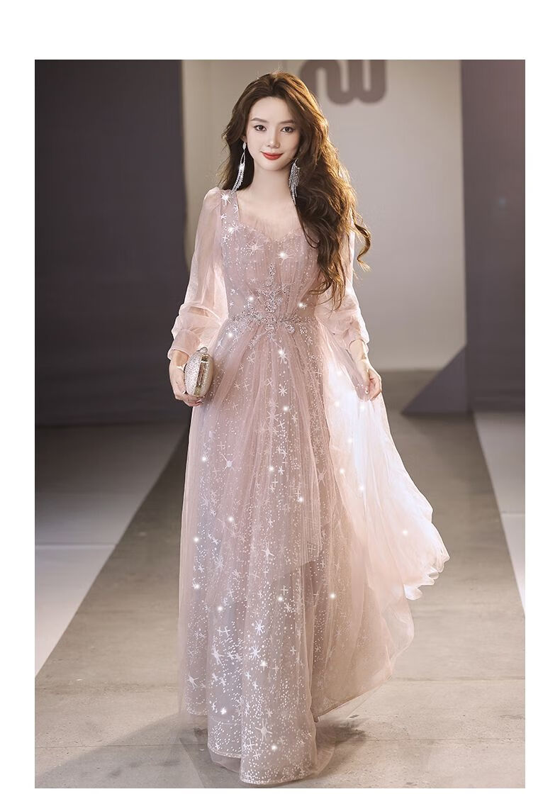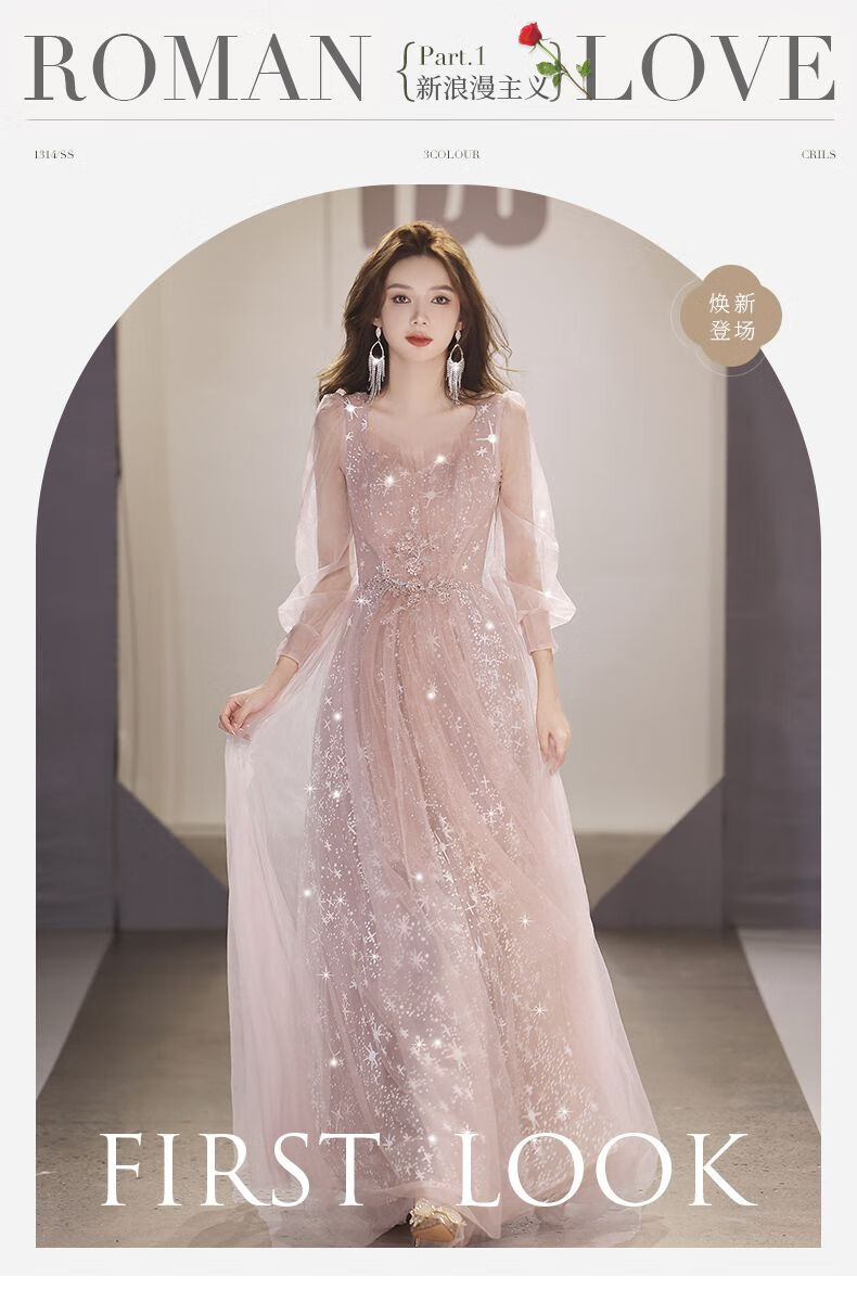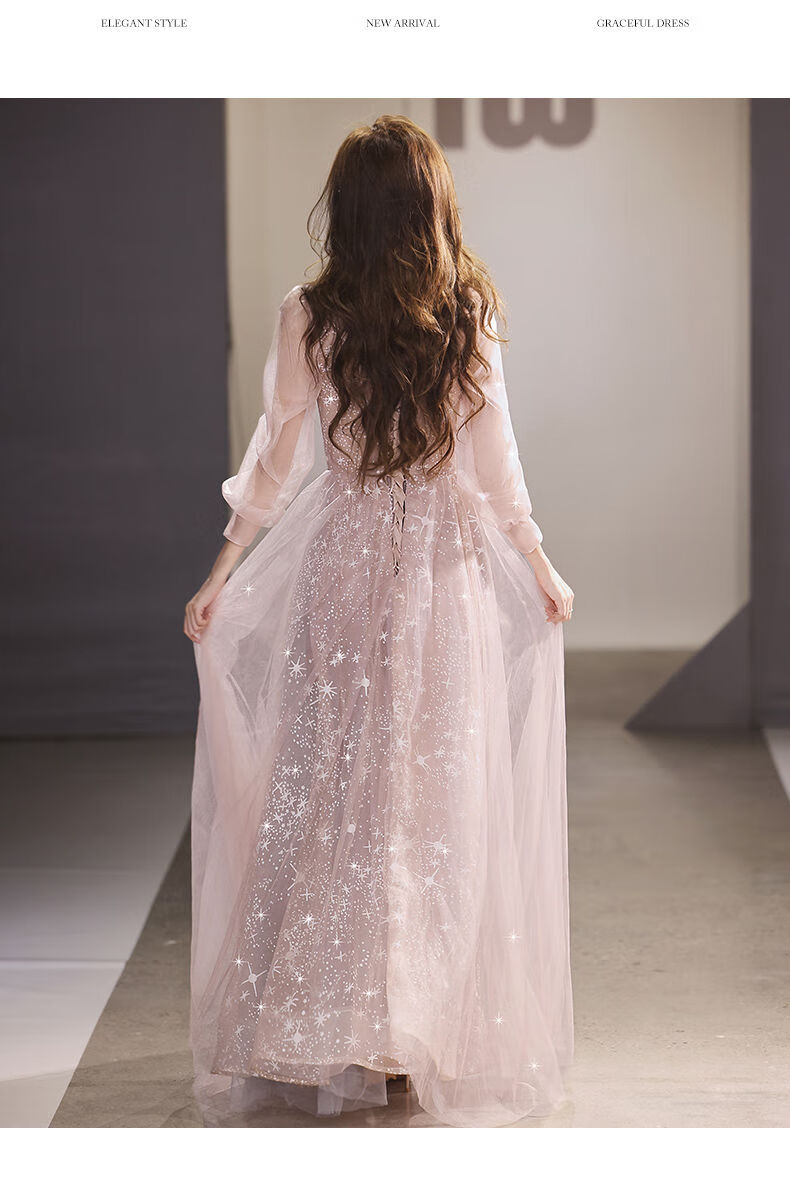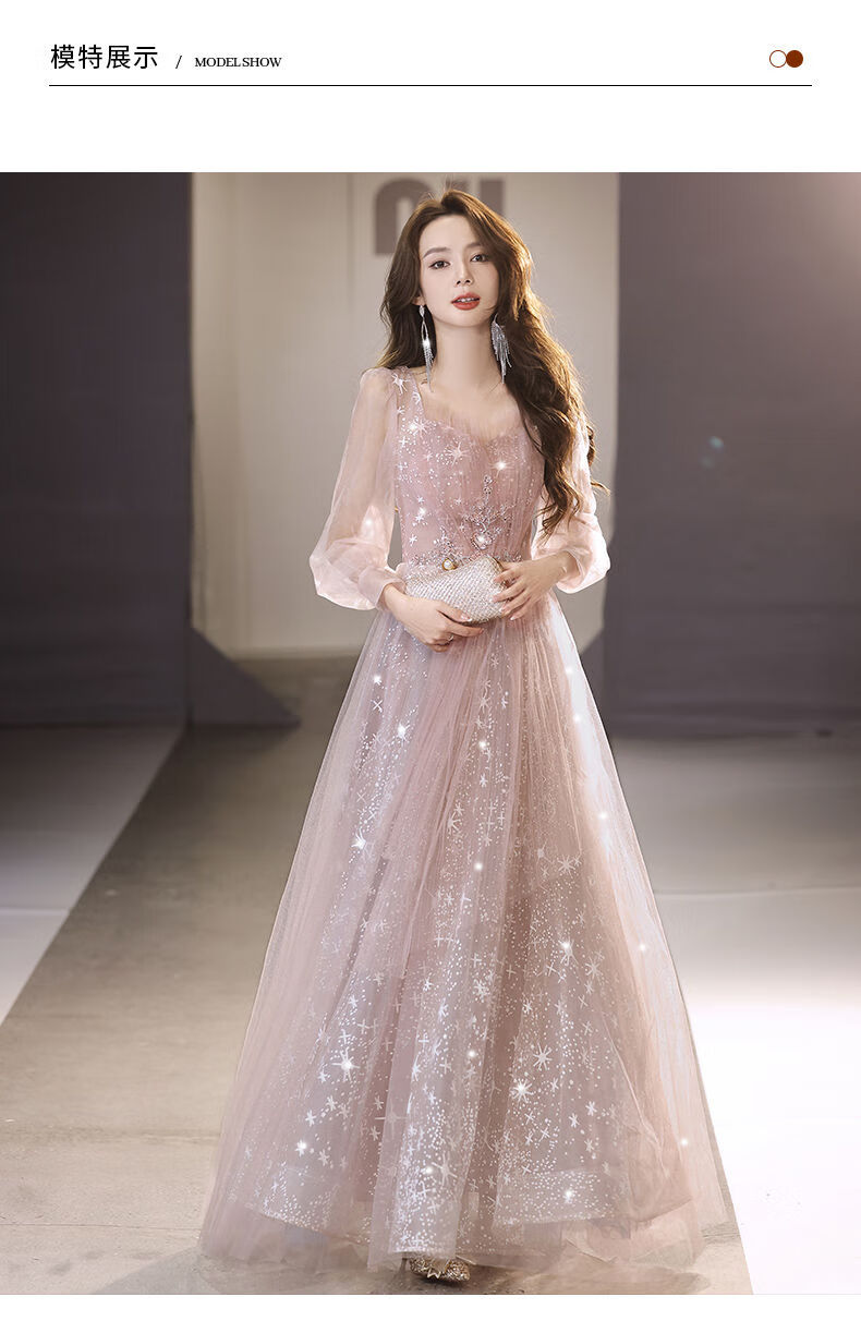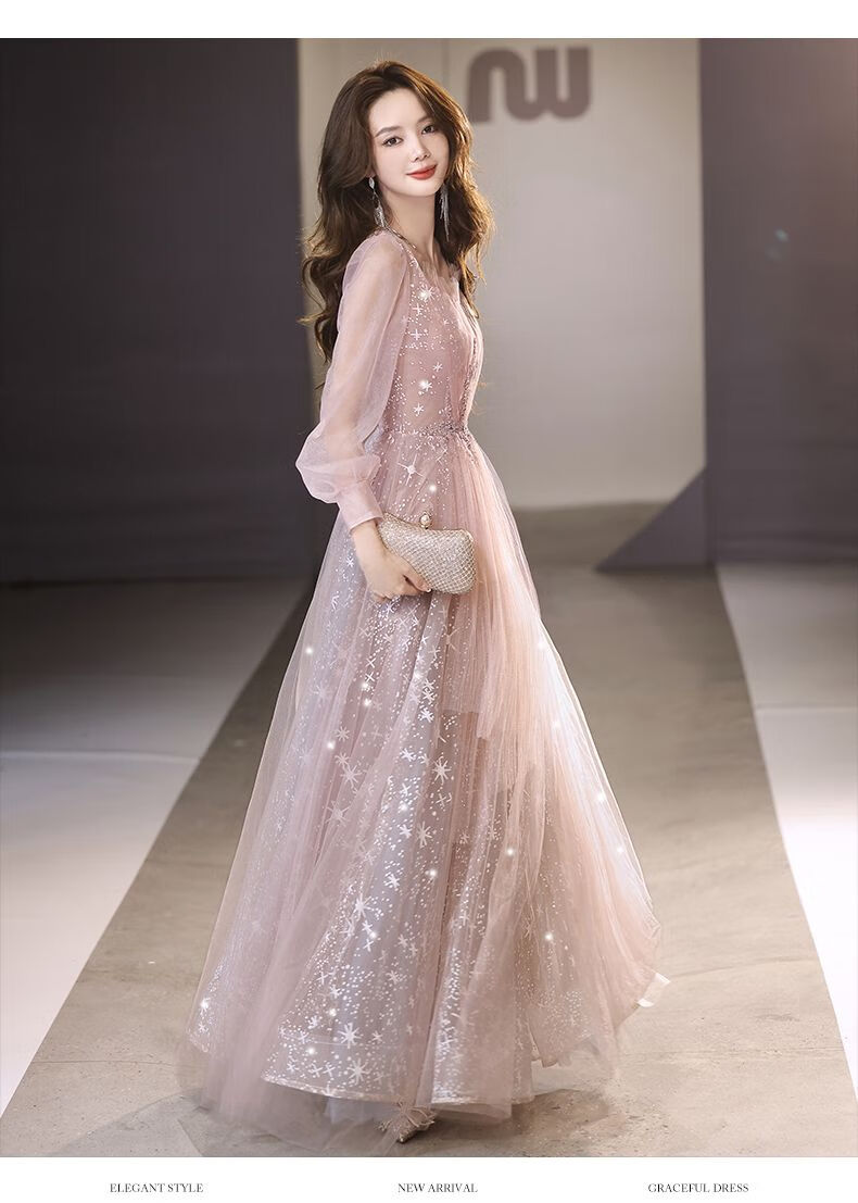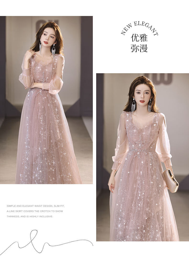 Lingka Qi Banquet Evening Dress Women's Evening Dress Women's Banquet Light Luxury Niche High-end High-end Pink Hosting Annual Meeting Vocal Art Pink Long XL